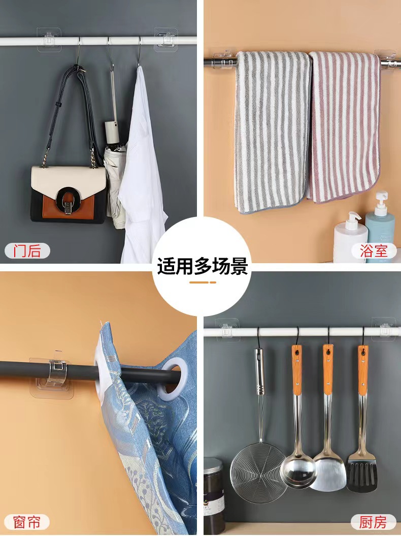 커튼 고정기 무타공 가정용 접착식 샤워커튼 도어커튼 후크 신축형 수건걸이 봉 스탠드 옷걸이