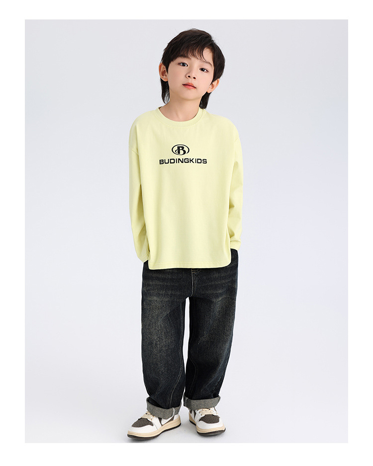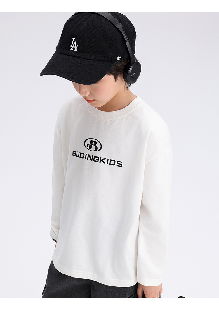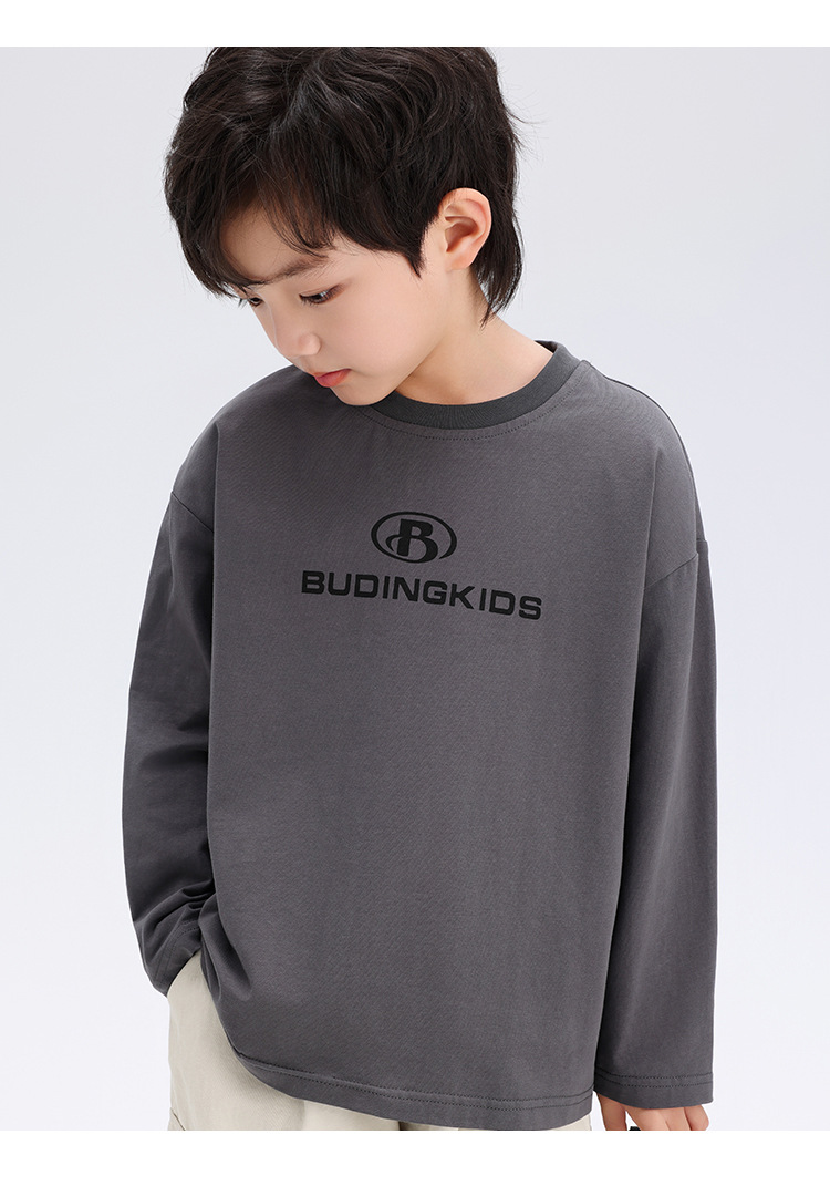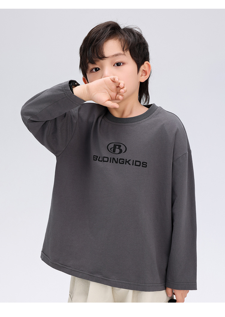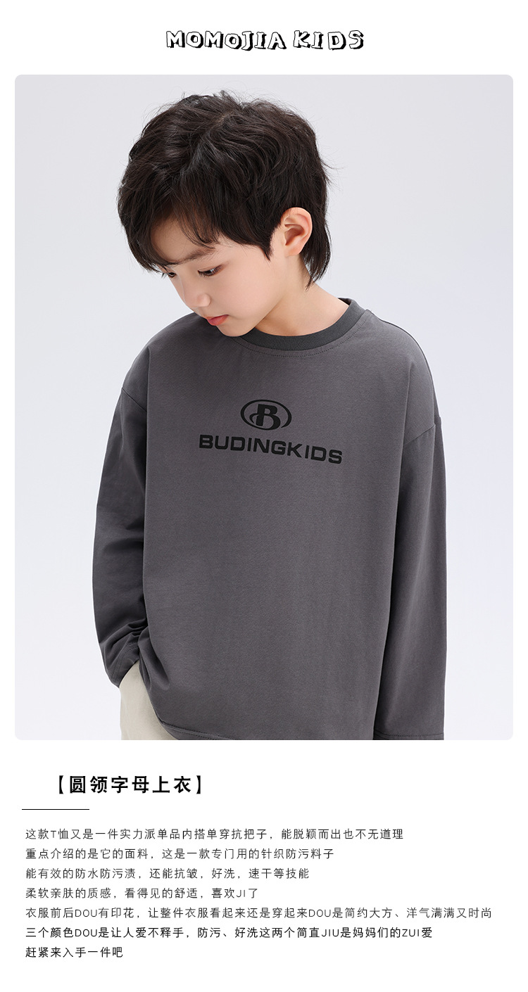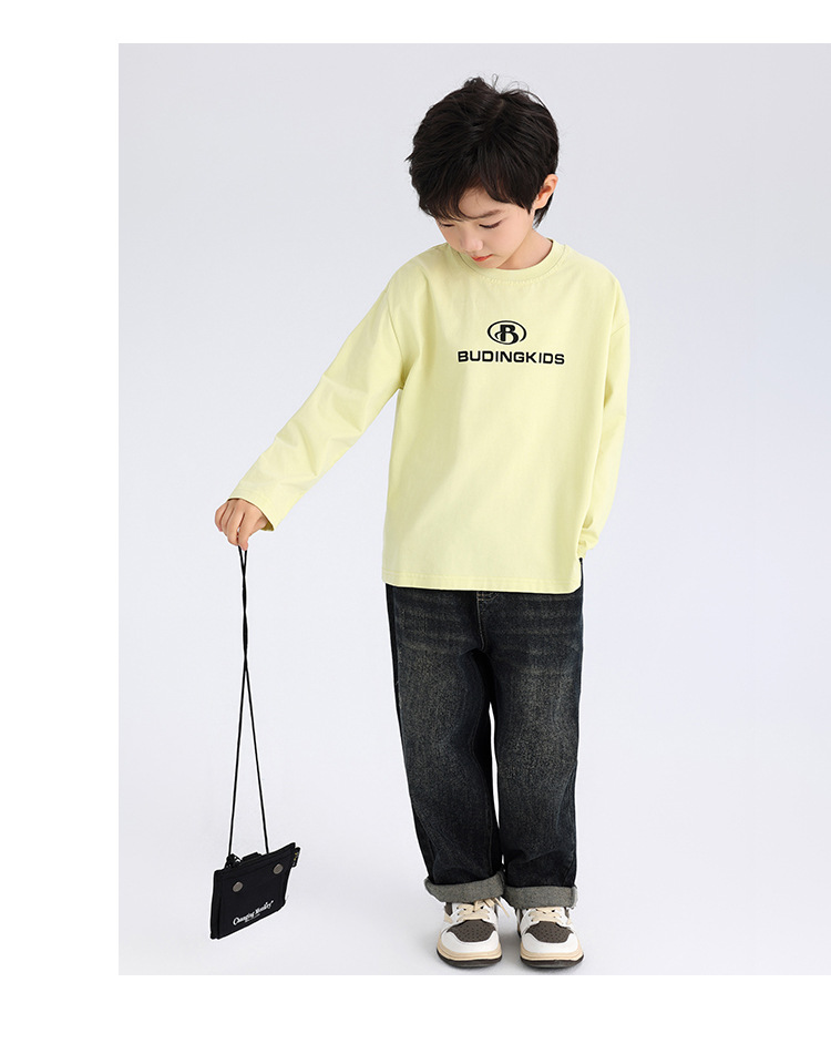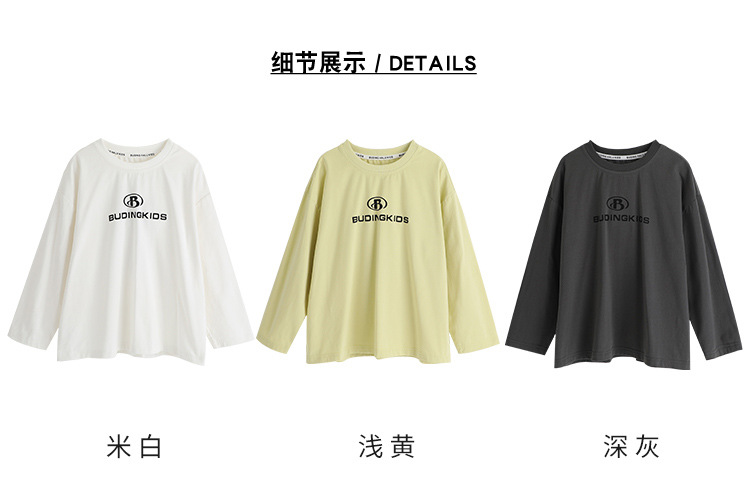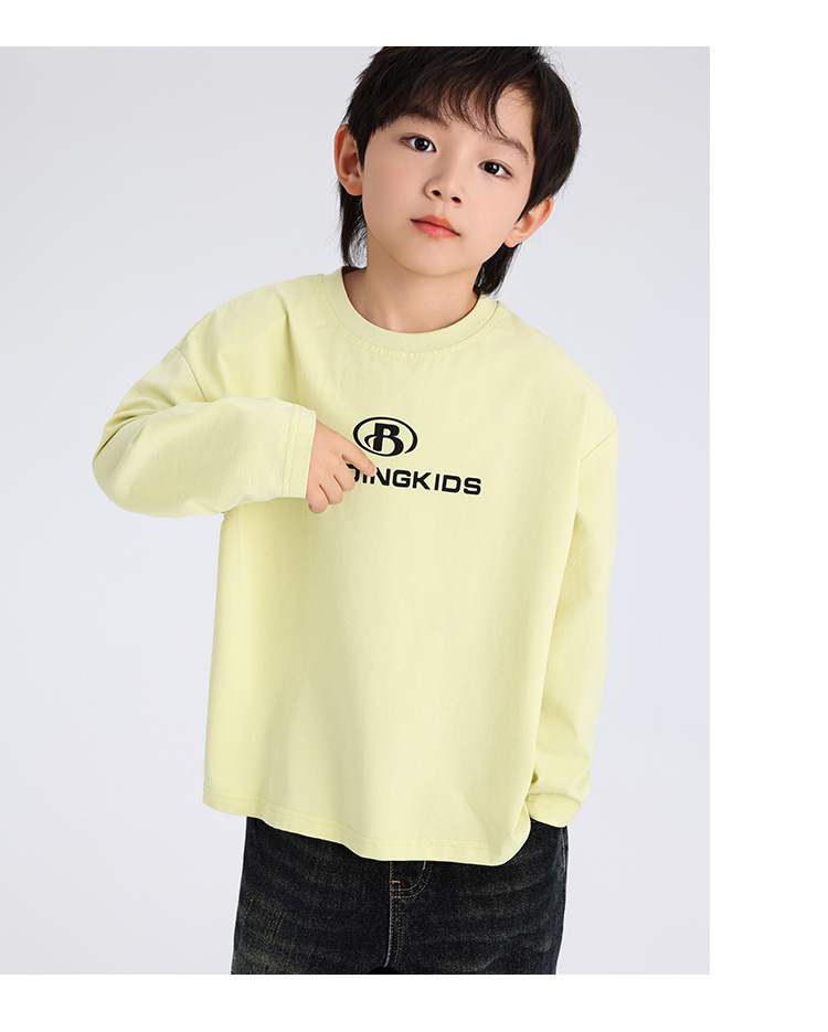 소년의 봄과 가을 긴팔 티셔츠 2024 봄과 가을 새로운 중대형 어린이 크루 넥 베이비 자켓 레터 프린트 티셔츠스토어 가기