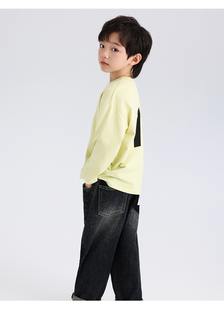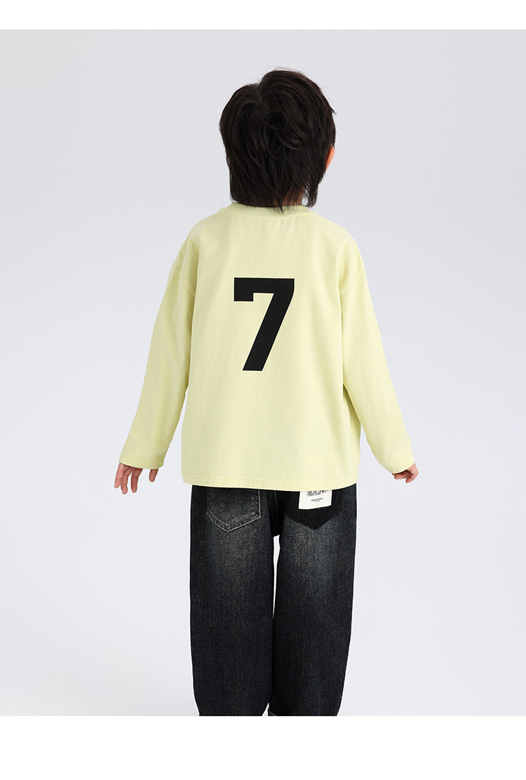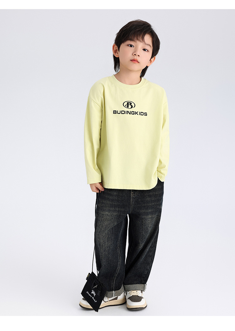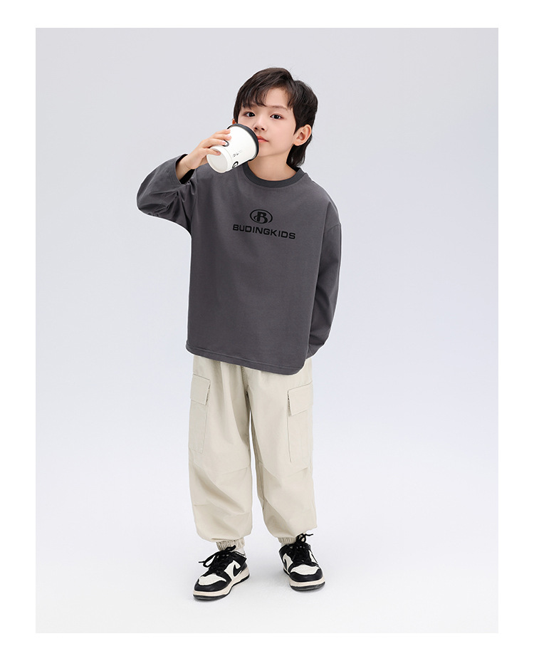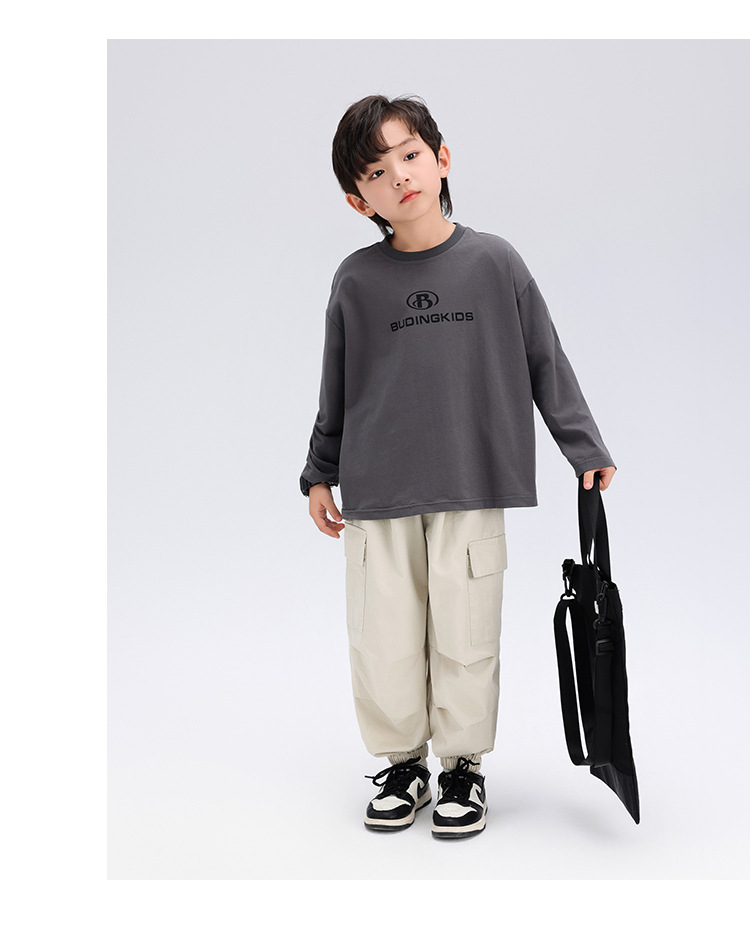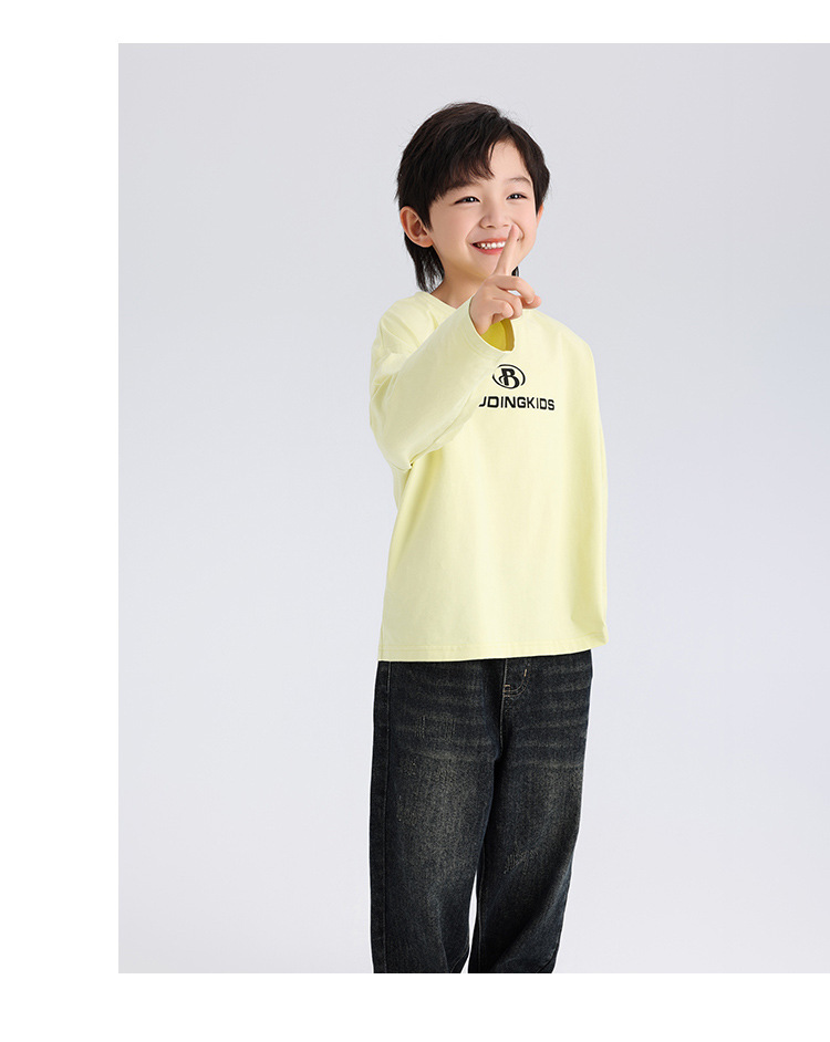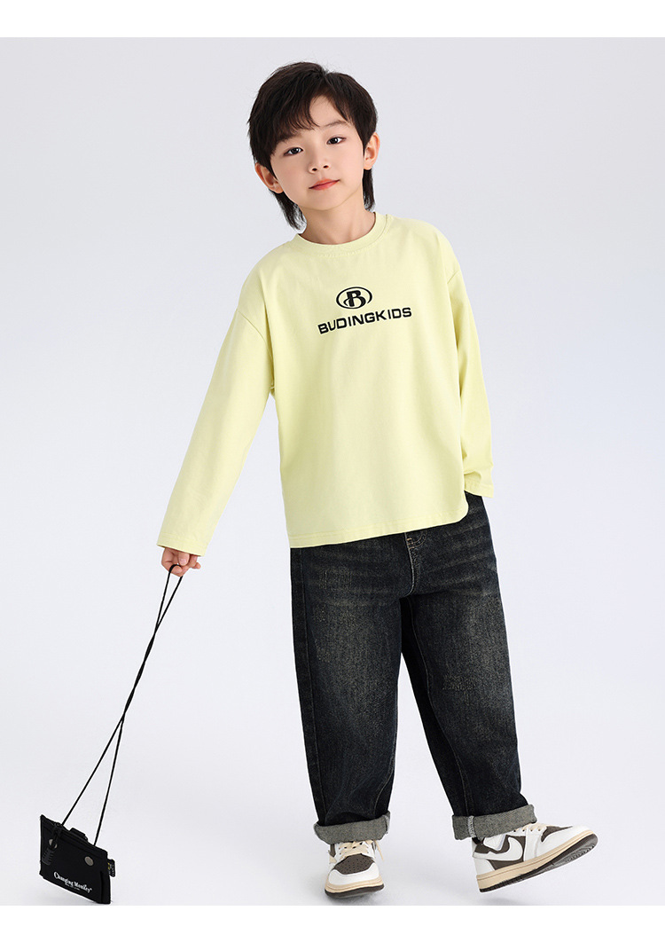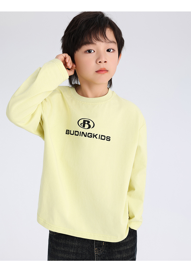 소년의 봄과 가을 긴팔 티셔츠 2024 봄과 가을 새로운 중대형 어린이 크루 넥 베이비 자켓 레터 프린트 티셔츠스토어 가기
