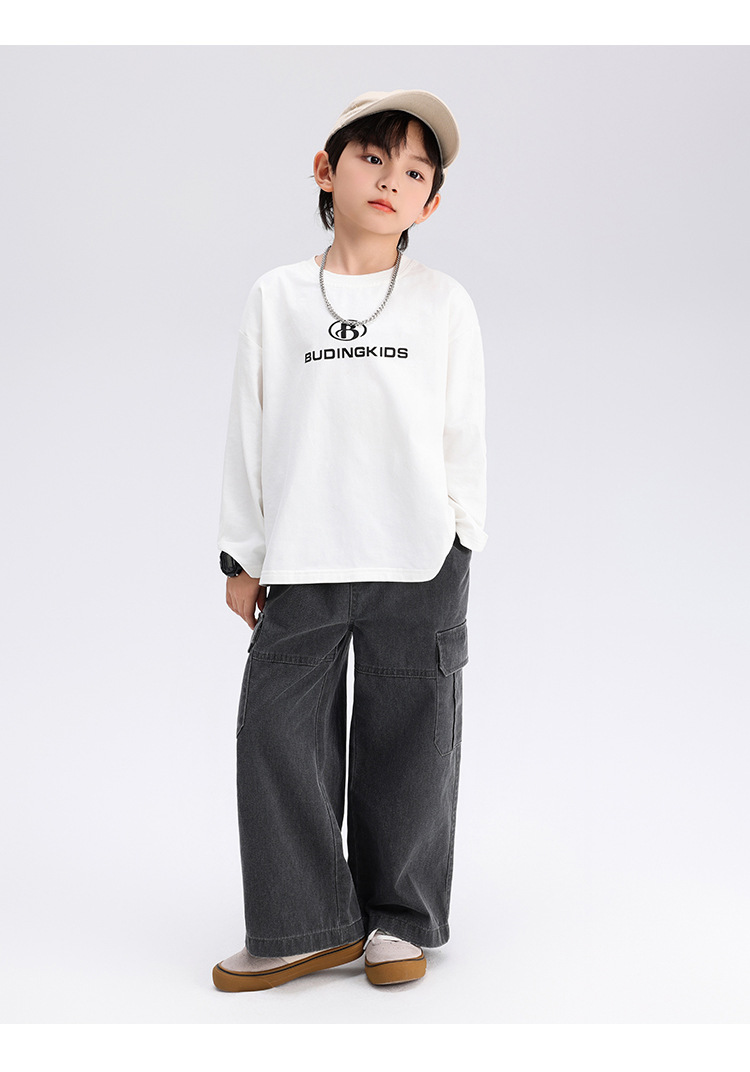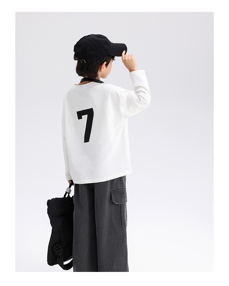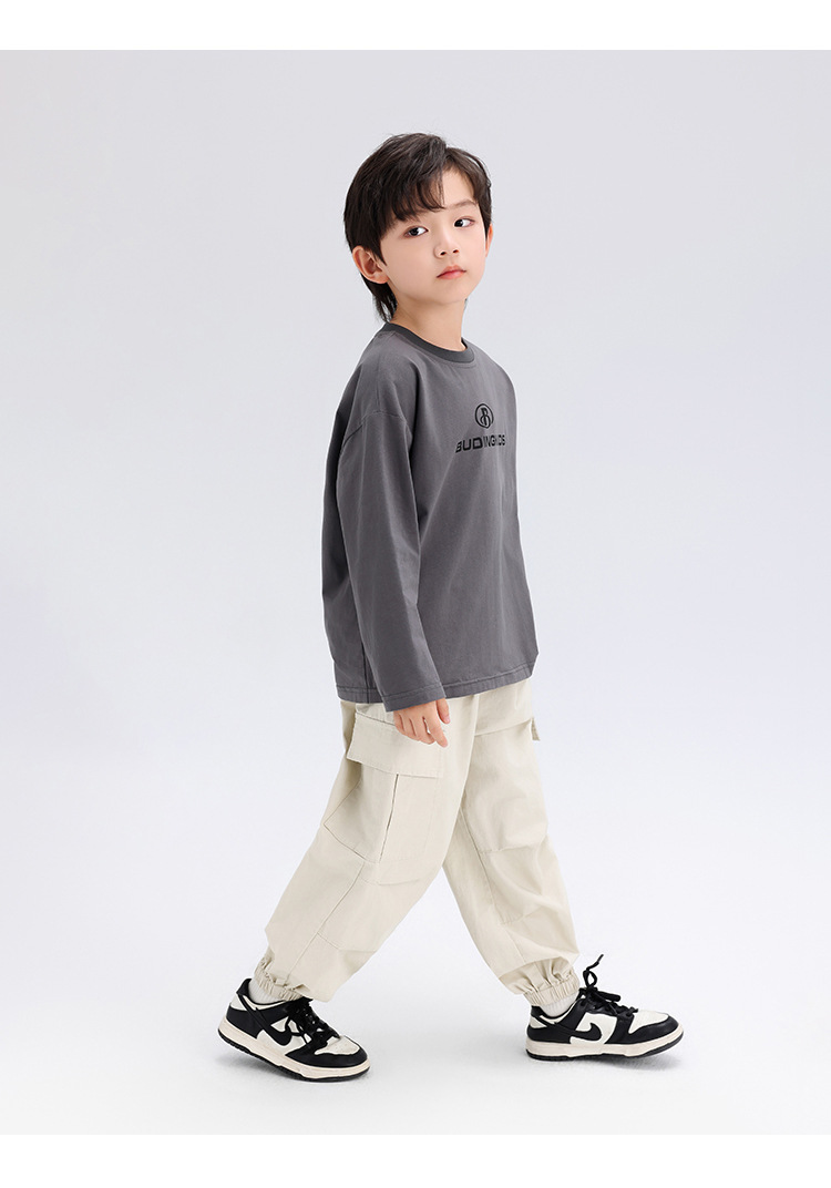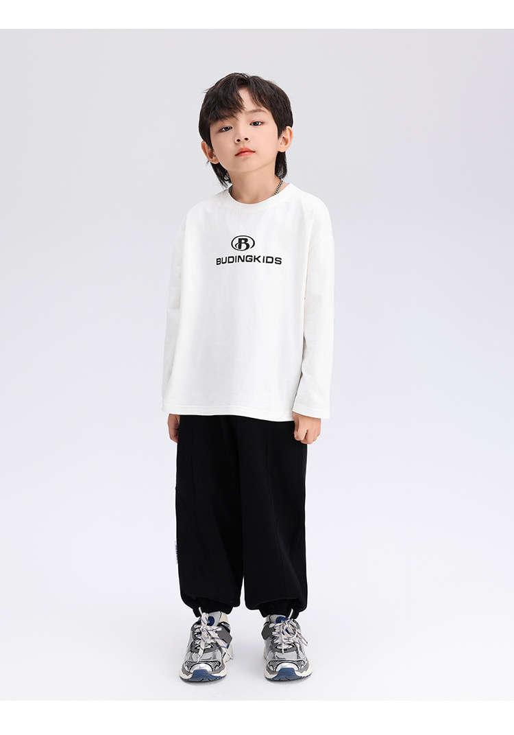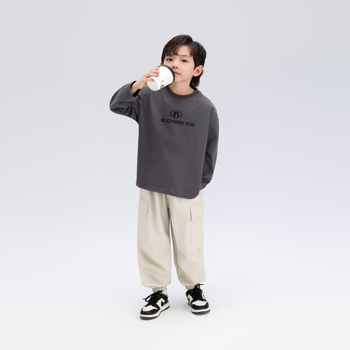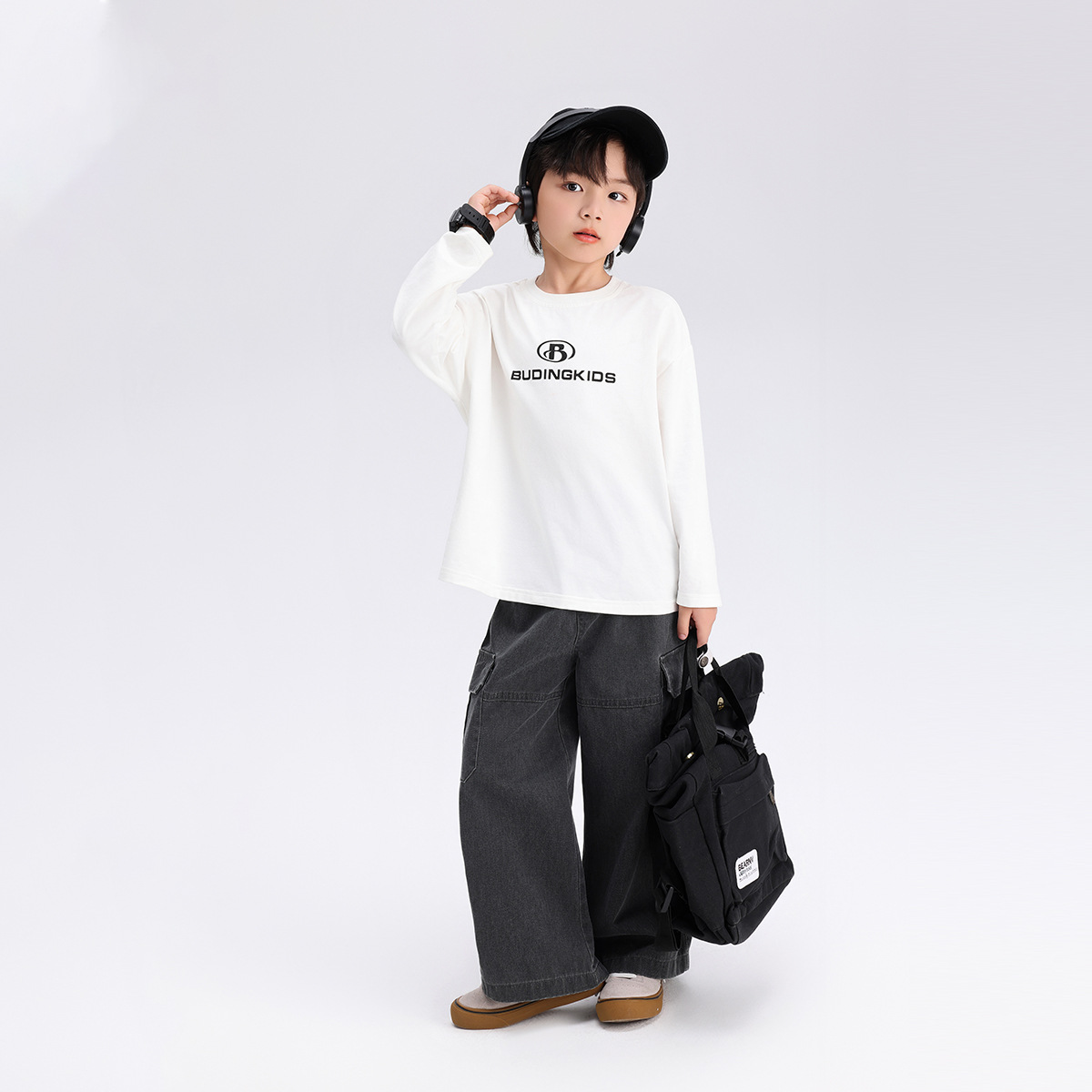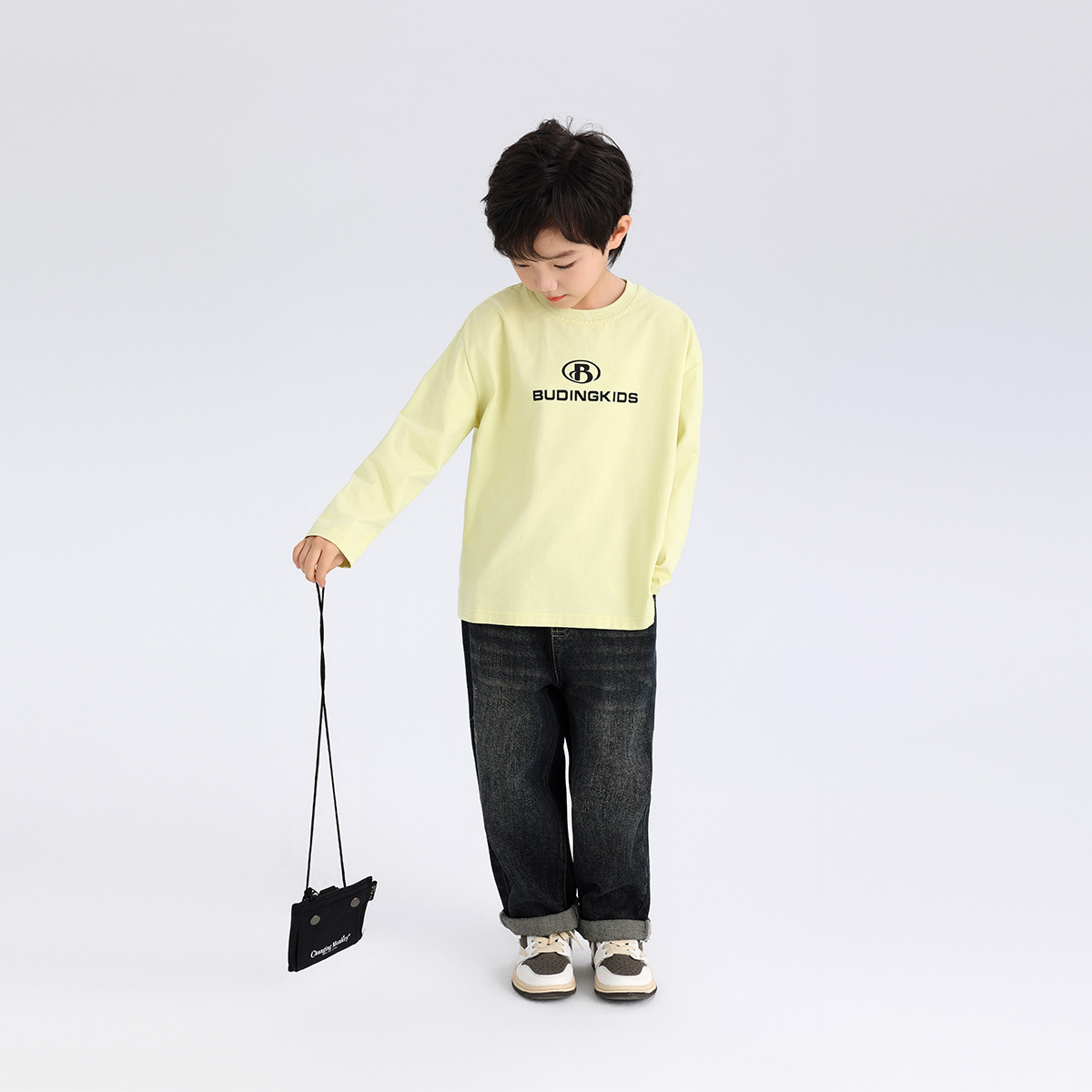 소년의 봄과 가을 긴팔 티셔츠 2024 봄과 가을 새로운 중대형 어린이 크루 넥 베이비 자켓 레터 프린트 티셔츠스토어 가기