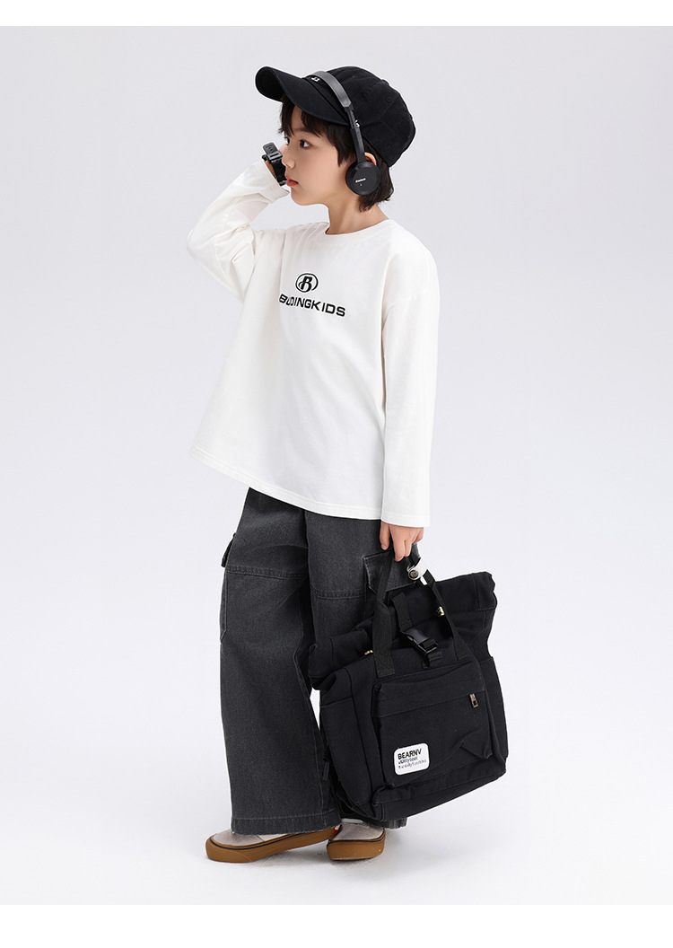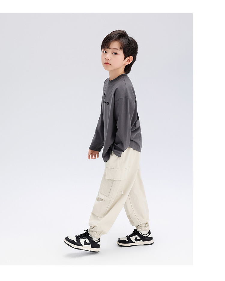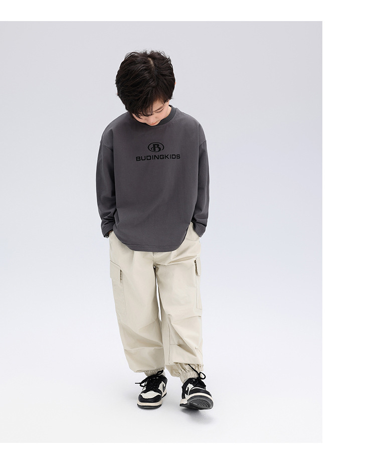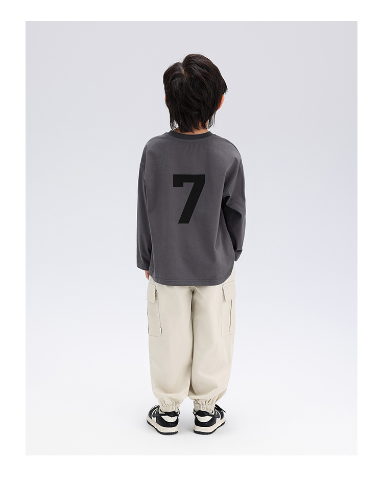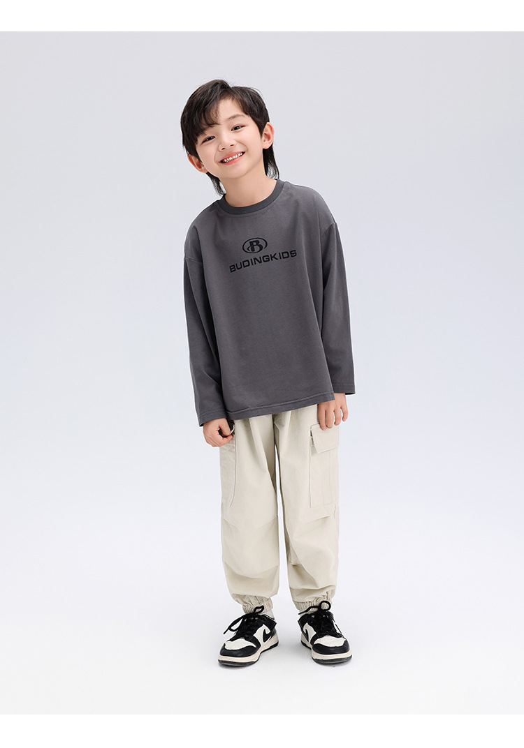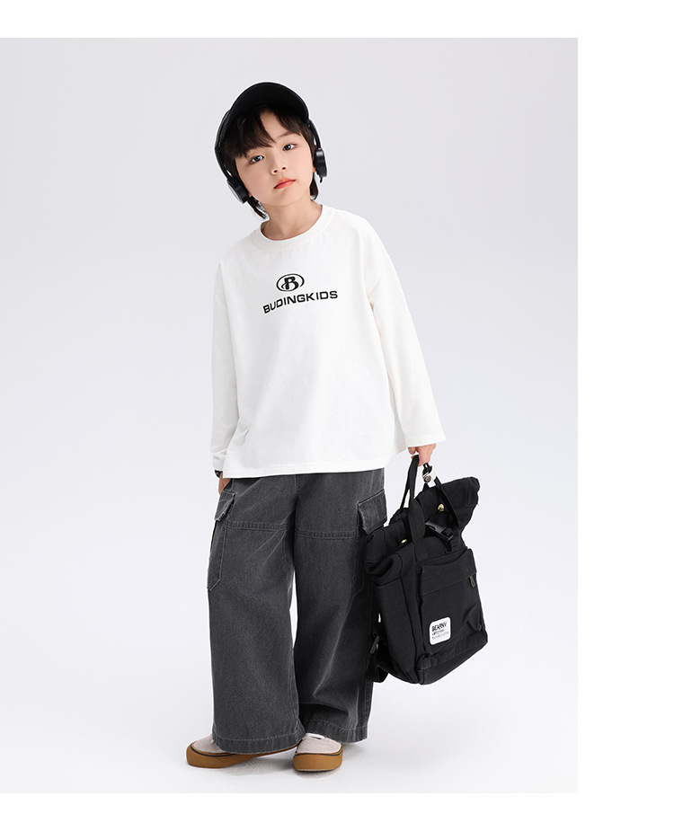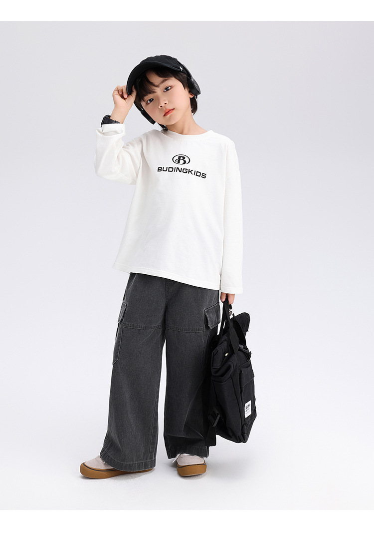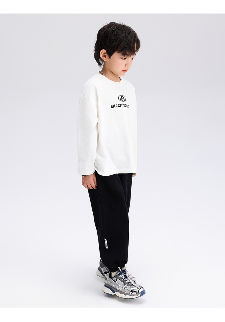 소년의 봄과 가을 긴팔 티셔츠 2024 봄과 가을 새로운 중대형 어린이 크루 넥 베이비 자켓 레터 프린트 티셔츠스토어 가기