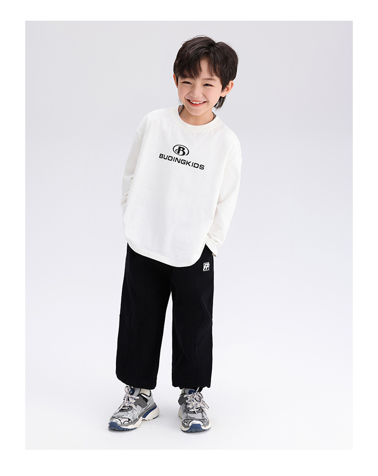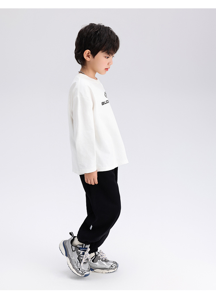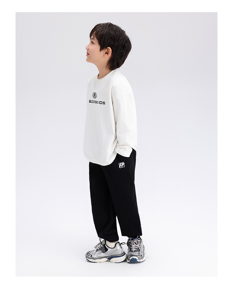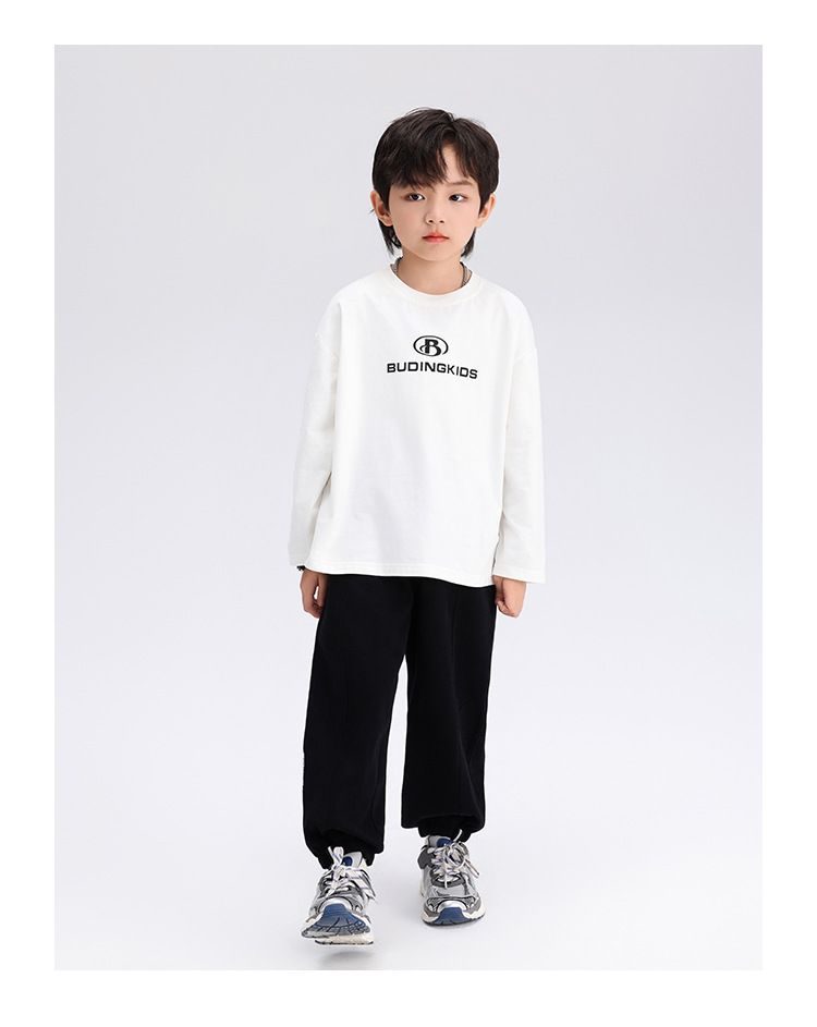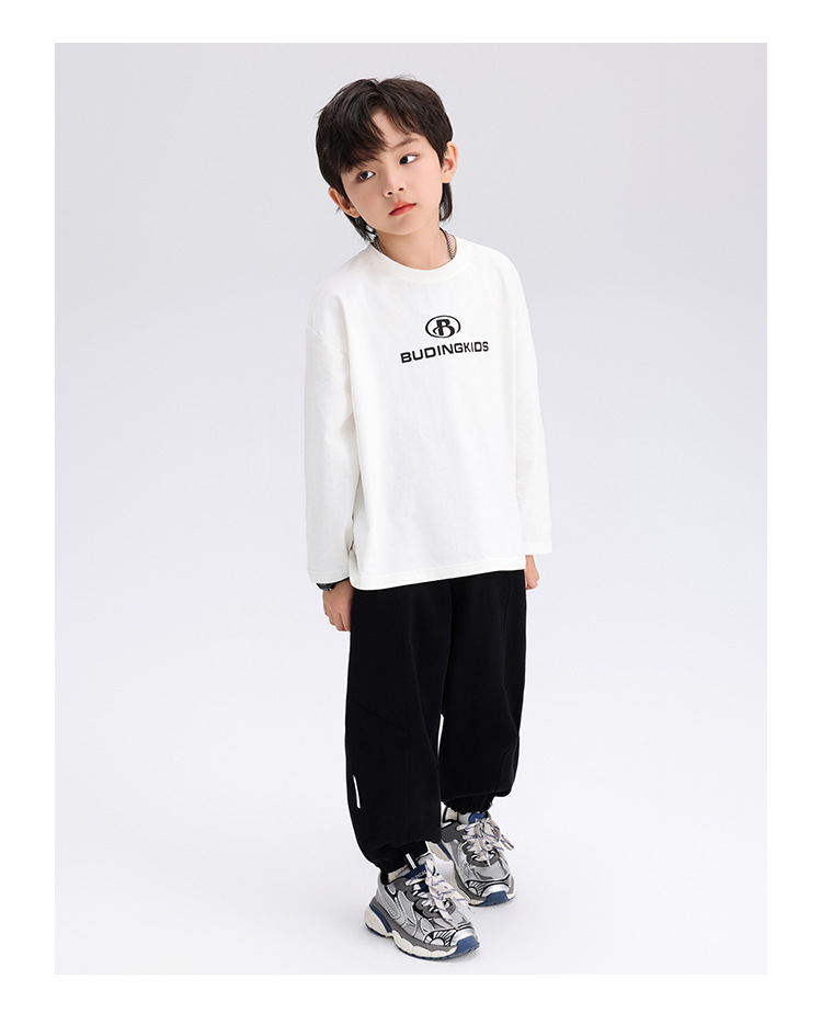 소년의 봄과 가을 긴팔 티셔츠 2024 봄과 가을 새로운 중대형 어린이 크루 넥 베이비 자켓 레터 프린트 티셔츠