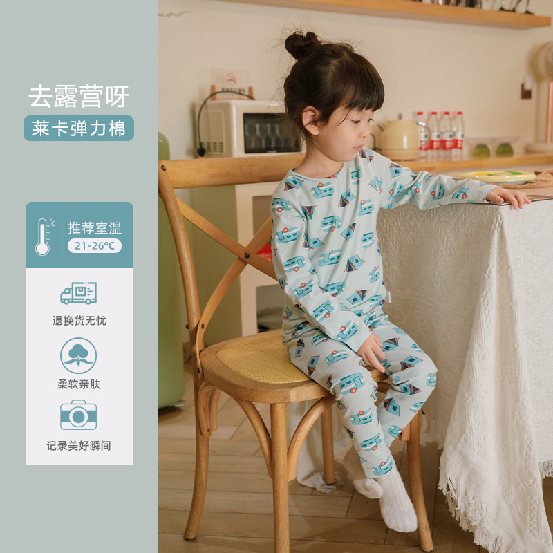 중대형 어린이 가정복 봄, 가을, 겨울 열 속옷 라이크라 세트 캠핑스토어 가기