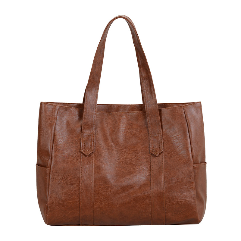 여성용 대형 가방 2025 새로운 유행 한국어 버전 다목적 단순 대용량 토트 백 숄더 핸드백 부드러운 가죽 여성용 가방스토어 가기