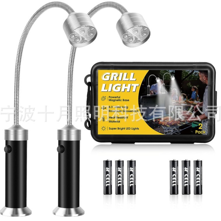【产品特点】:产品有9个LED发光源,它提供了一个明亮,无眩光,宽光束照明你的夜晚,满足日常照明烧烤时使用。产品底部有强磁可任意吸附在车上,铁质的烧烤架上,带加长软管可以随意360°弯曲,产品外壳采用铝合金材料,它能抵抗极热的天气条件。可以多个地方或场景下使用,例如:维修,烧烤,露营,阅读,机械工匠夜晚修理等。(贴纸默认是常规中性的,量大可以定制)