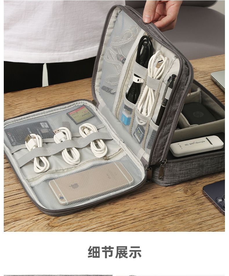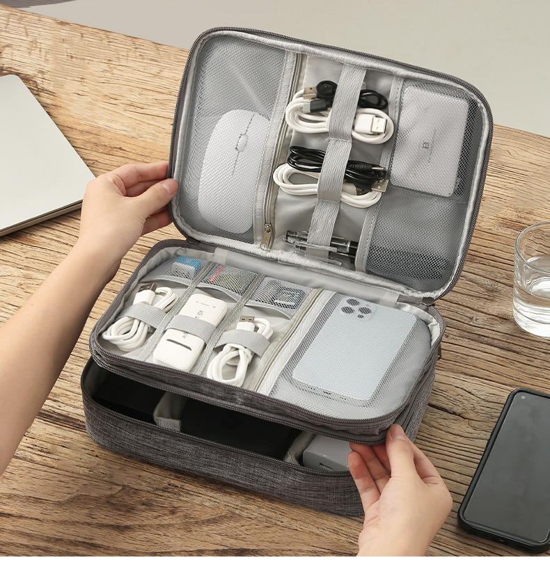 디지털 수납 가방, 로고 인쇄 가능, 3단 대용량 다기능 충전기, 보조 배터리, 이어폰 정리 가방스토어 가기