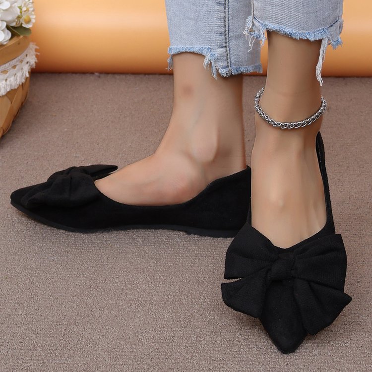 뾰족한 활 신발 여성의 봄 2024 새로운 한국식 대형 평면 간단한 편안한 의복 신발스토어 가기