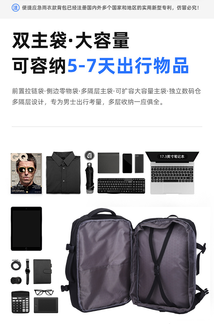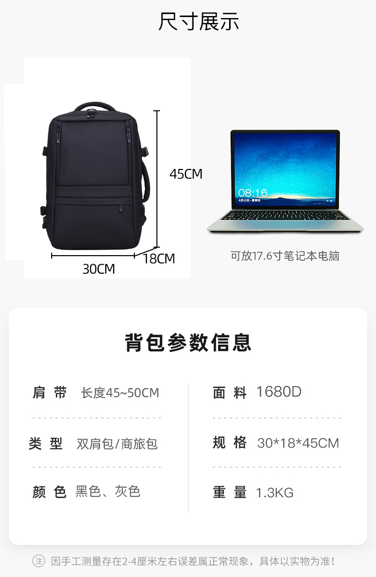 확장 가능한 비즈니스 컴퓨터 가방 대용량 간단한 유행 학생 배낭 남성 단거리 여행 배낭스토어 가기