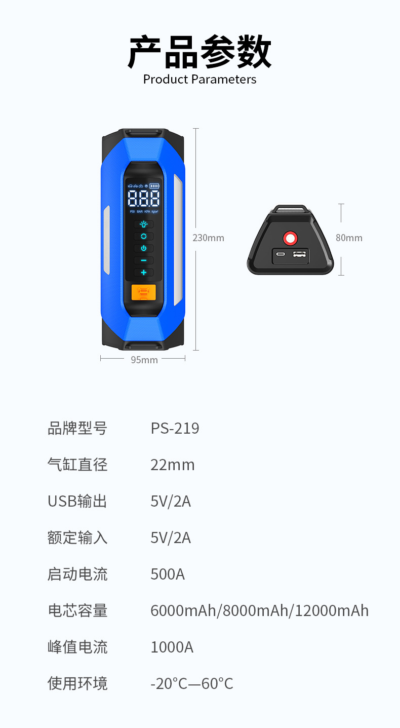 • PS-219 시동 충전 일체형 최고급 버전 12V/6000A/16000mAh (스마트 배터리 클램프 + EVA 케이스 포함)