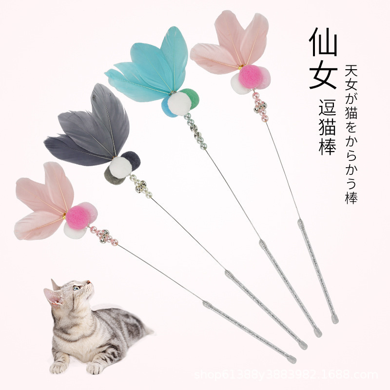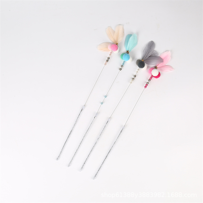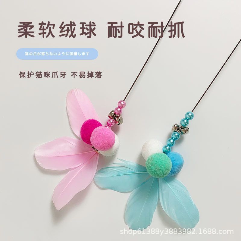 공장 재고 직접 판매 요정 잠자리 모피 공 깃털 재미있는 고양이 스틱 자기-안녕하세요 대화 형 재미있는 고양이 장난감 벨 깃털 재미