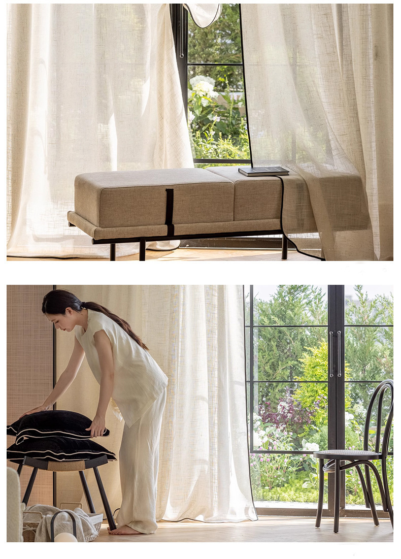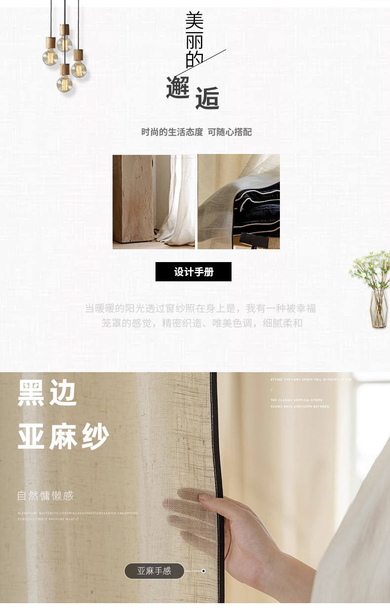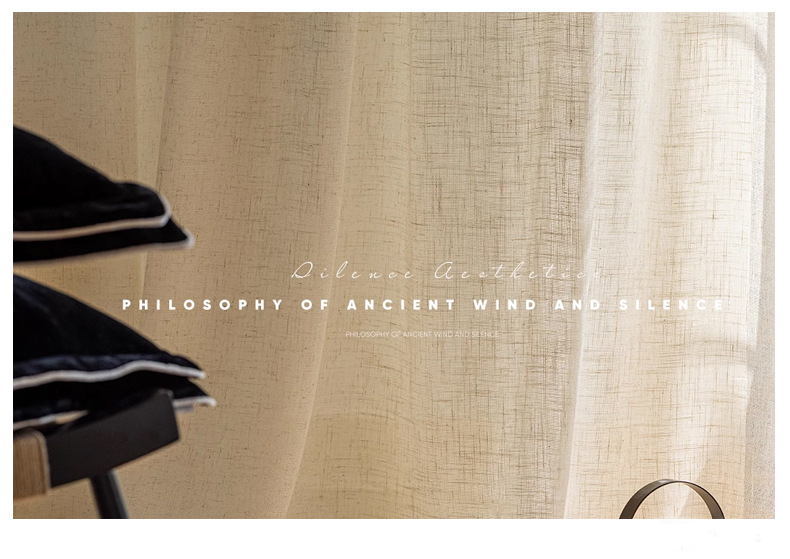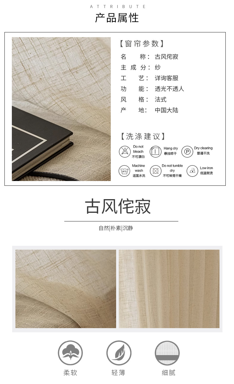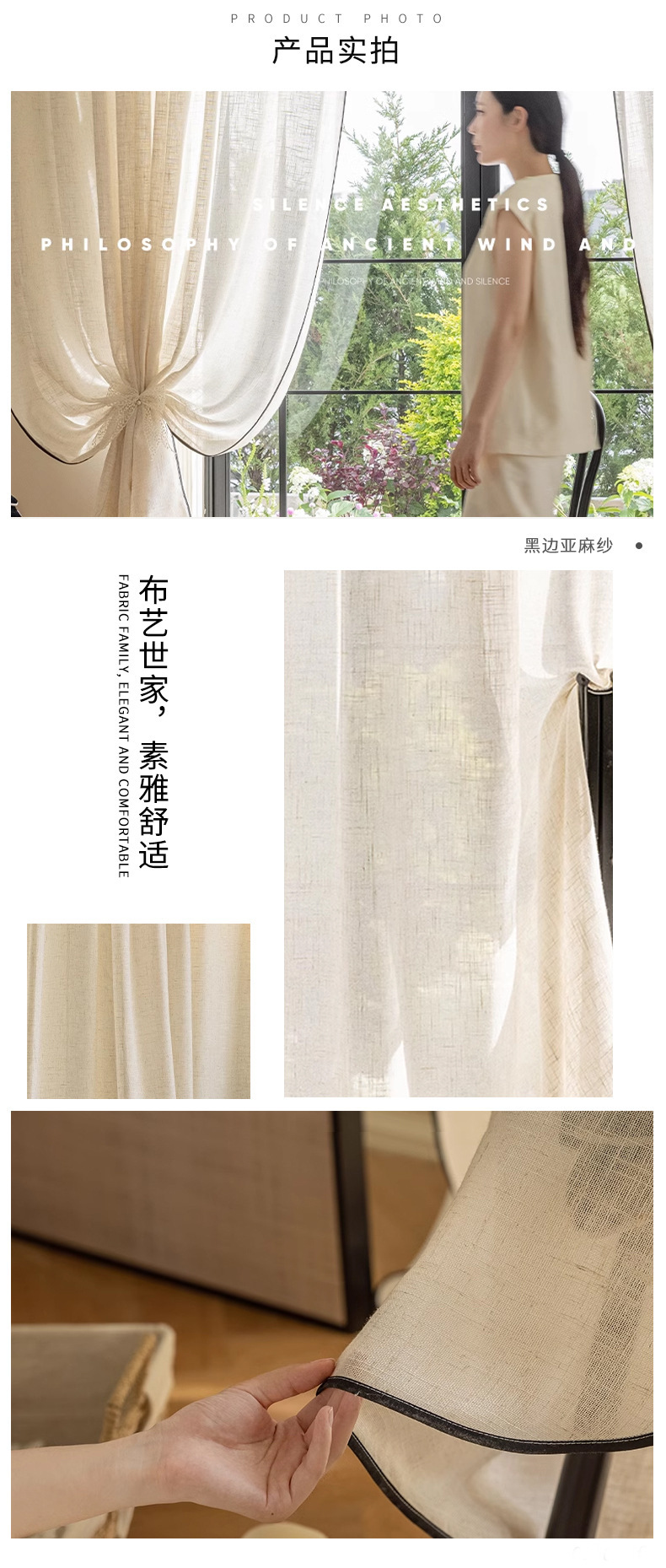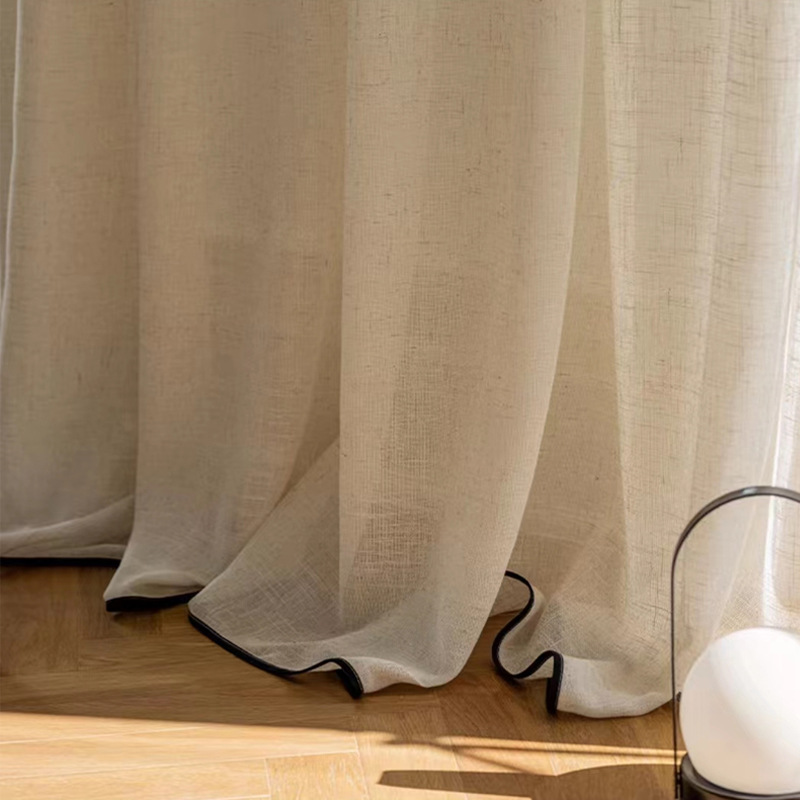 프랑스 복고풍 고급 검은 색 리넨 거즈 커튼 투명 창 화면 베이 창 크림 색 조용한 바람
