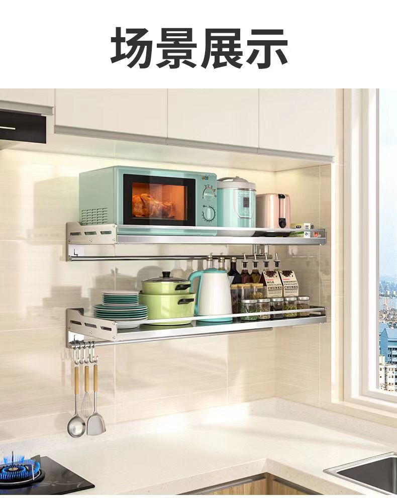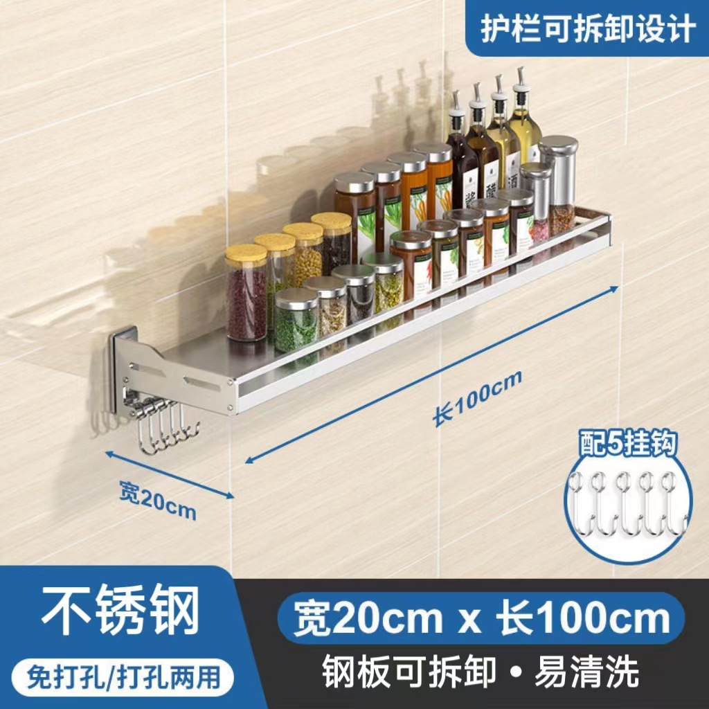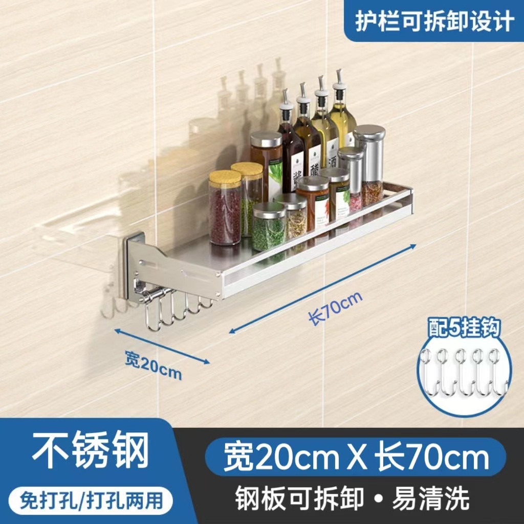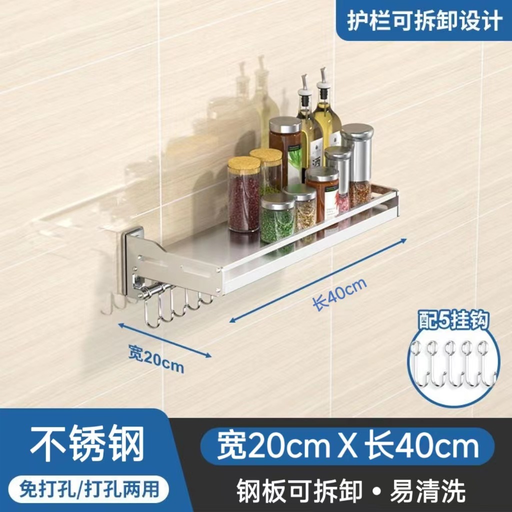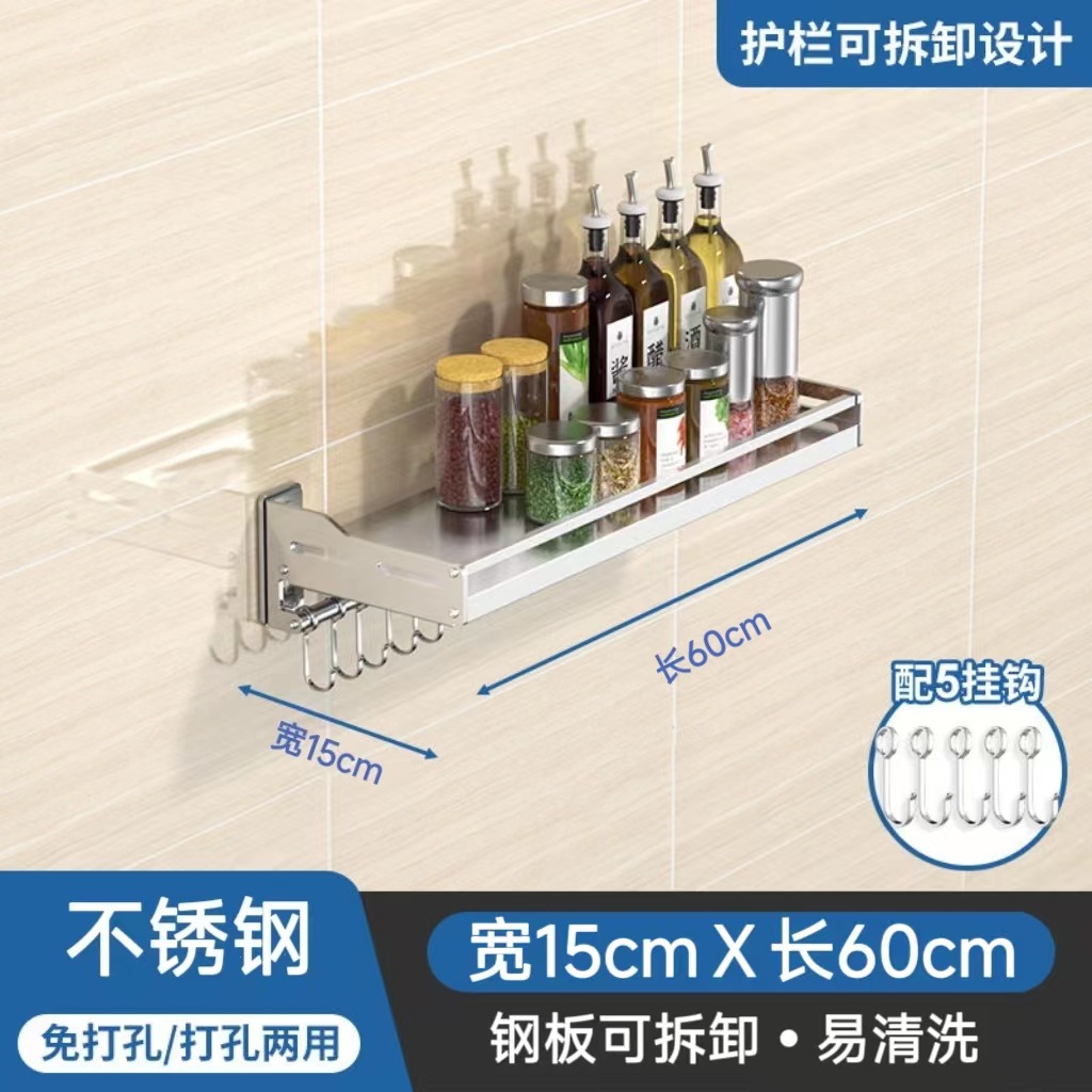 스테인레스 스틸 주방 보관 랙 새로운 펀치 못없는 이중 목적 벽걸이 다기능 조미료 소형 가전 저장 랙