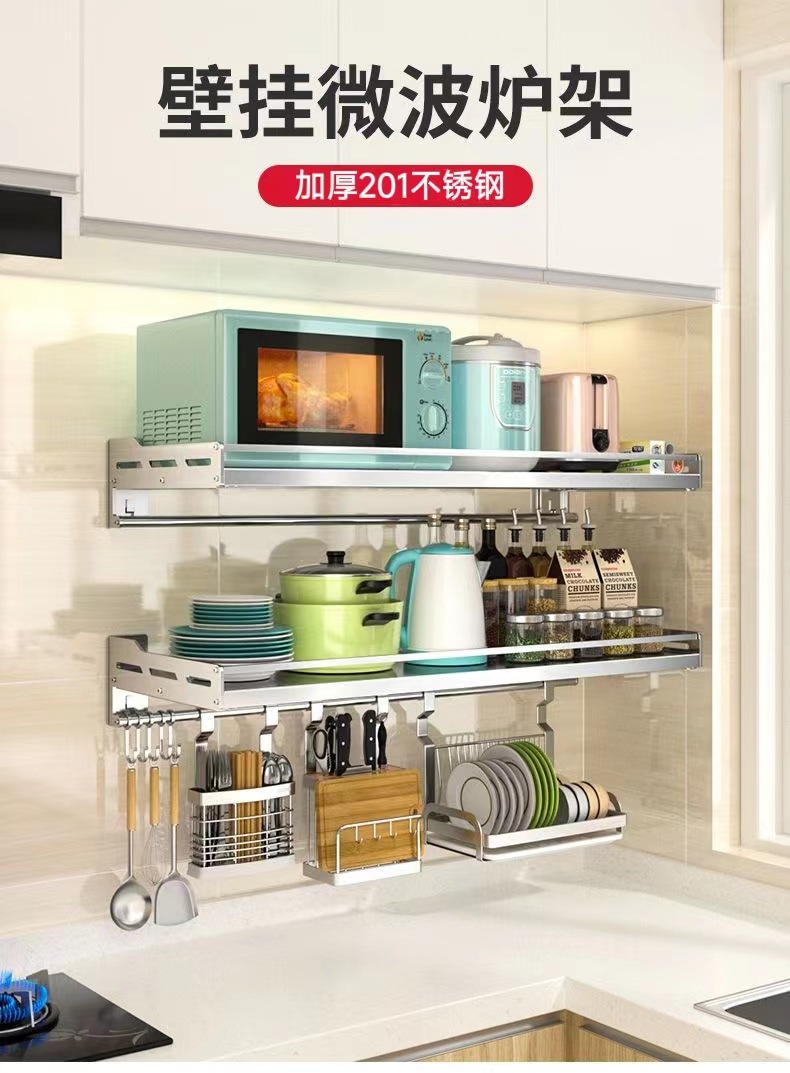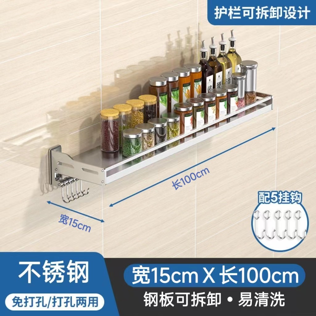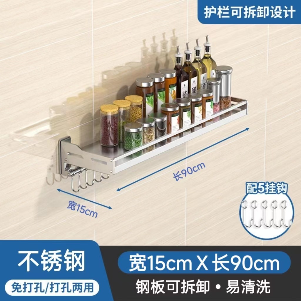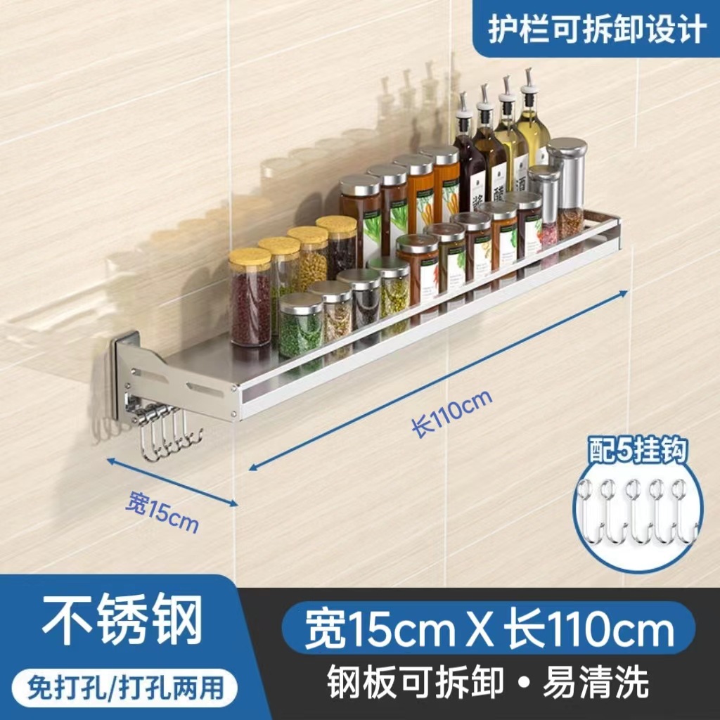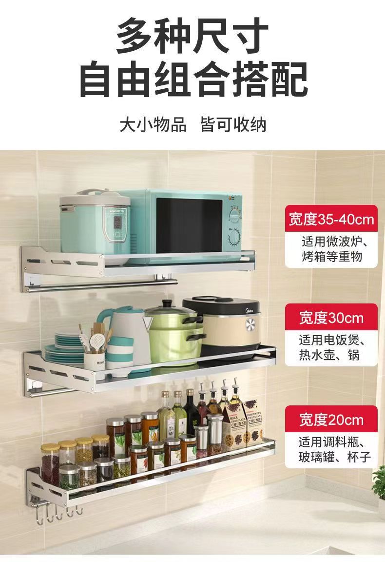 스테인레스 스틸 주방 보관 랙 새로운 펀치 못없는 이중 목적 벽걸이 다기능 조미료 소형 가전 저장 랙