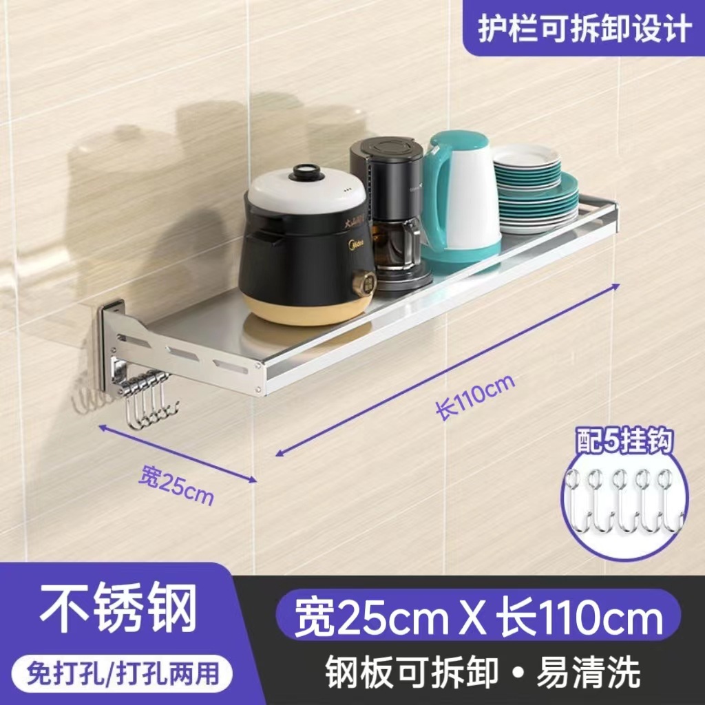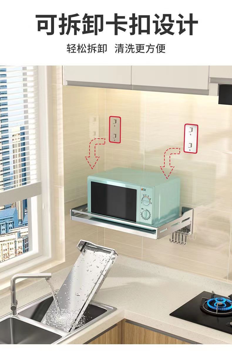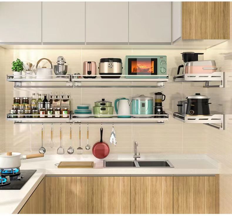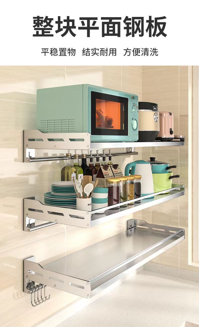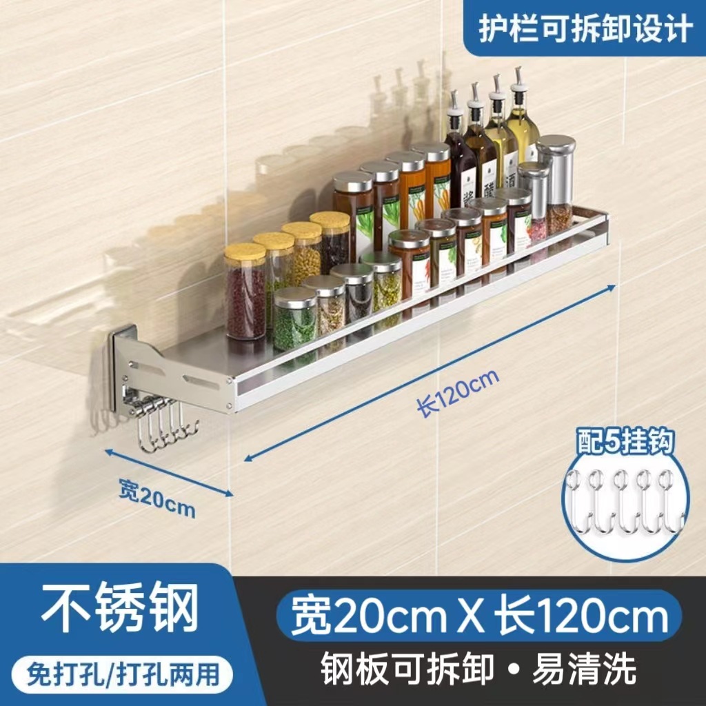 스테인레스 스틸 주방 보관 랙 새로운 펀치 못없는 이중 목적 벽걸이 다기능 조미료 소형 가전 저장 랙