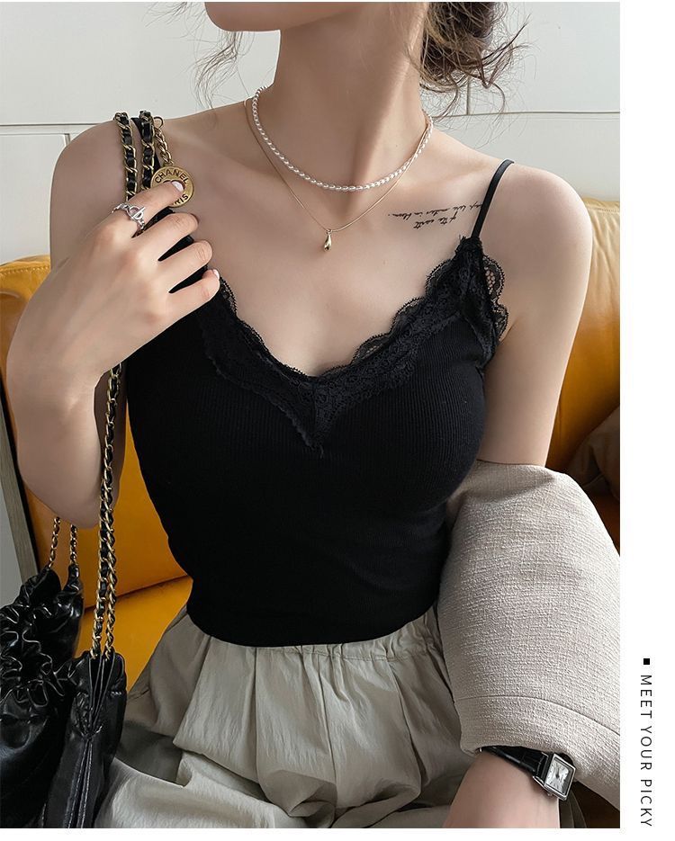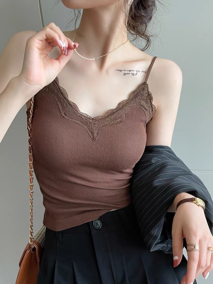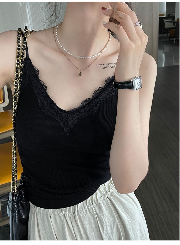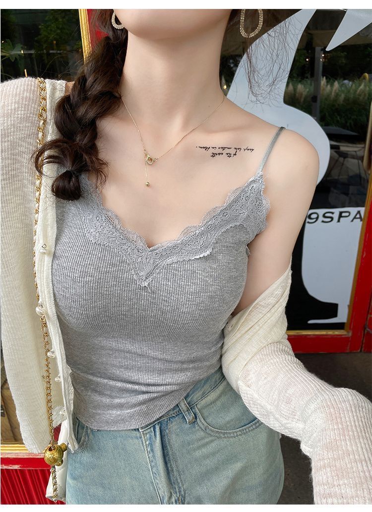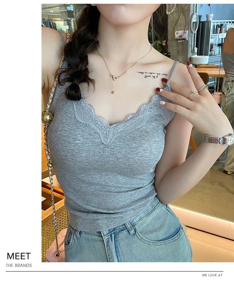 레이스 카미 솔 작은 조끼 가슴 패드 프렌치 V 넥 아름다운 백 랩 가슴 착용 여성을위한 조정 가능한 슬림베이스 탑