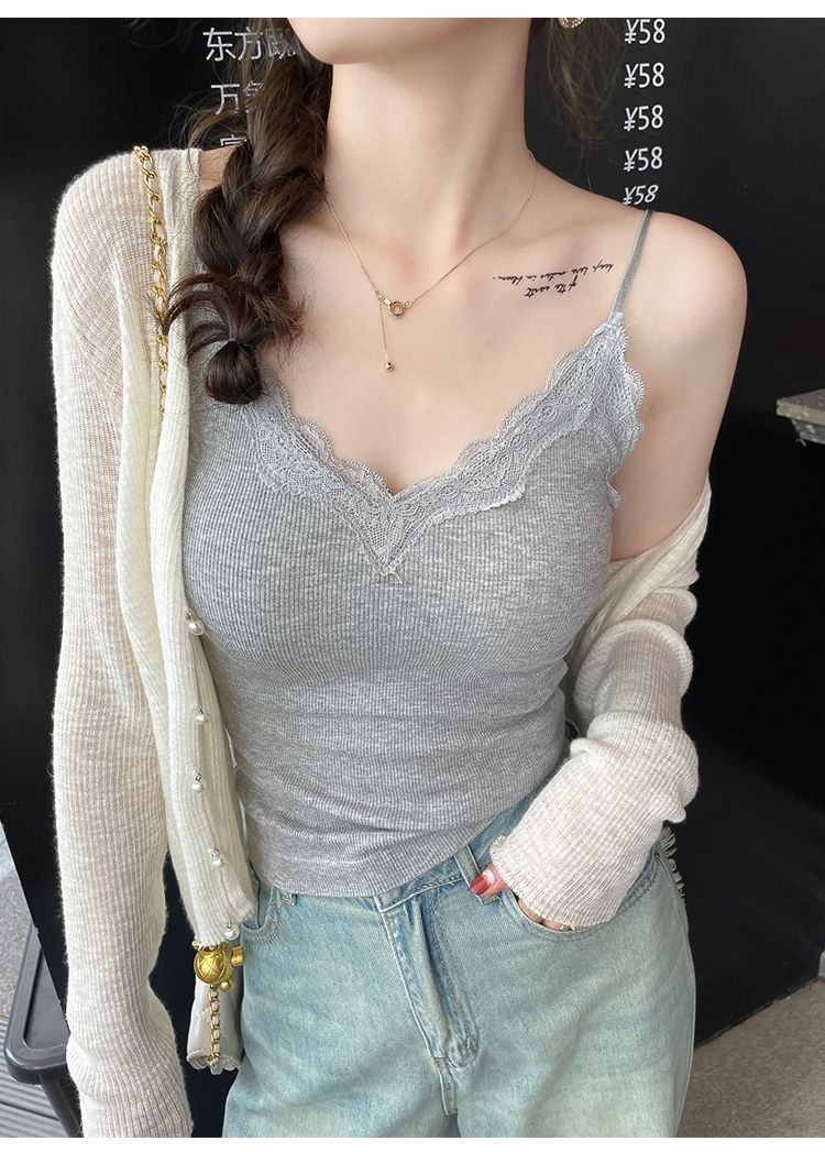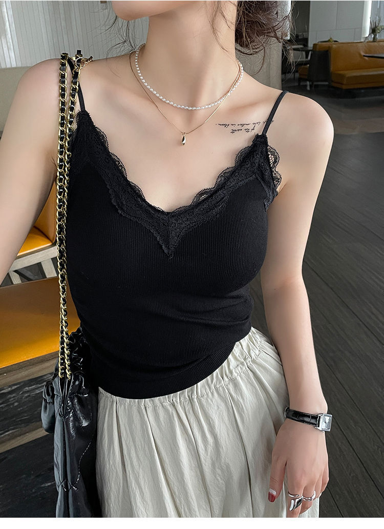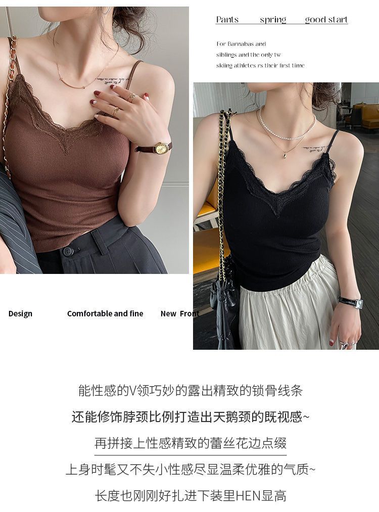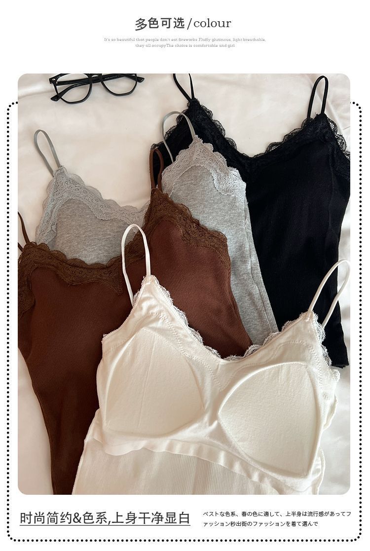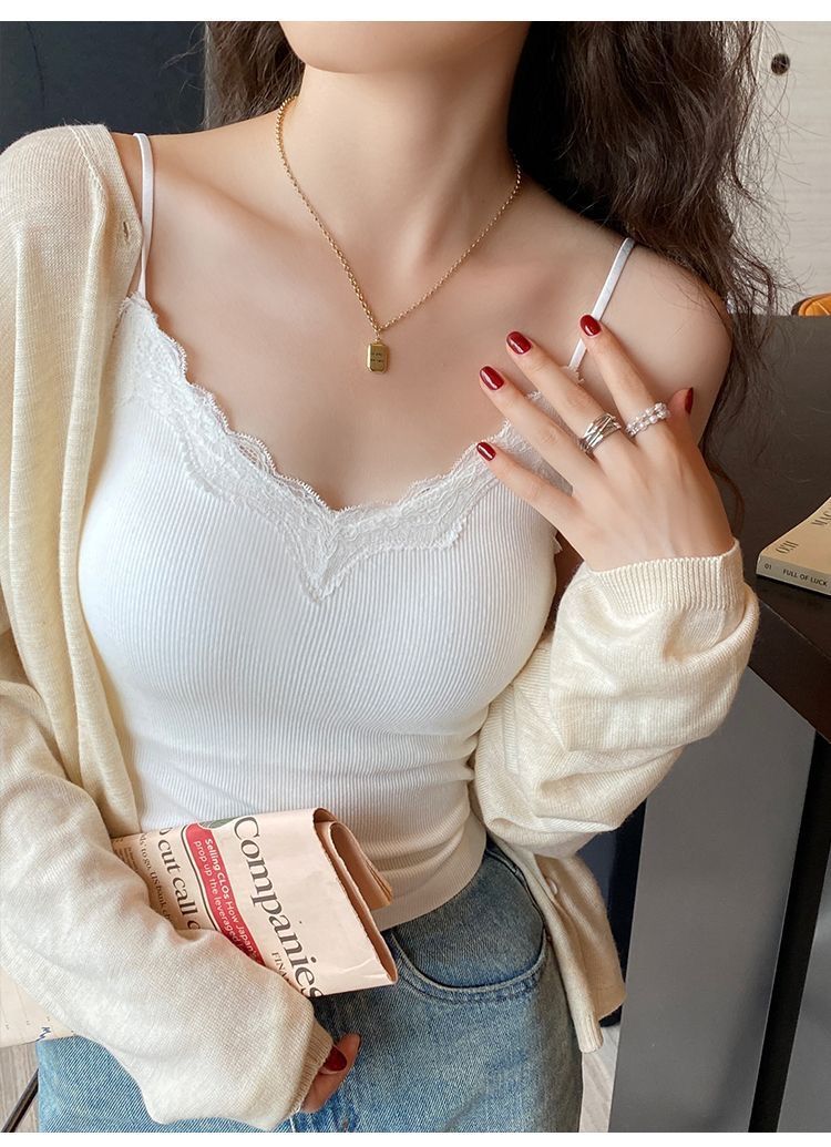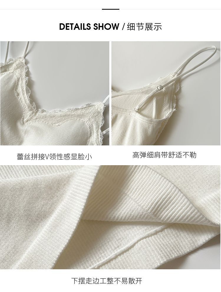 레이스 카미 솔 작은 조끼 가슴 패드 프렌치 V 넥 아름다운 백 랩 가슴 착용 여성을위한 조정 가능한 슬림베이스 탑