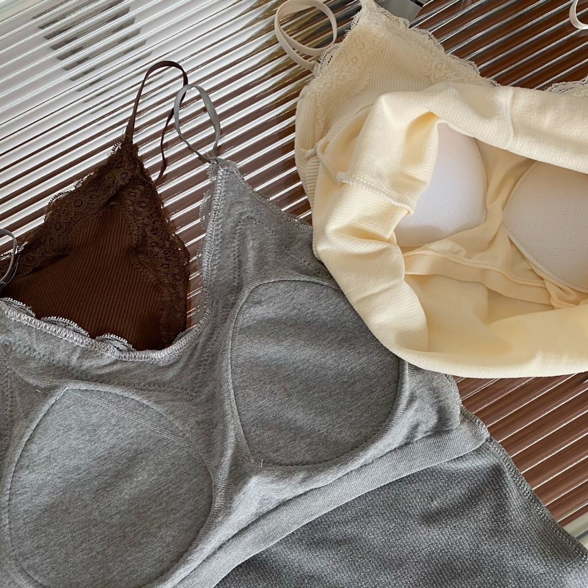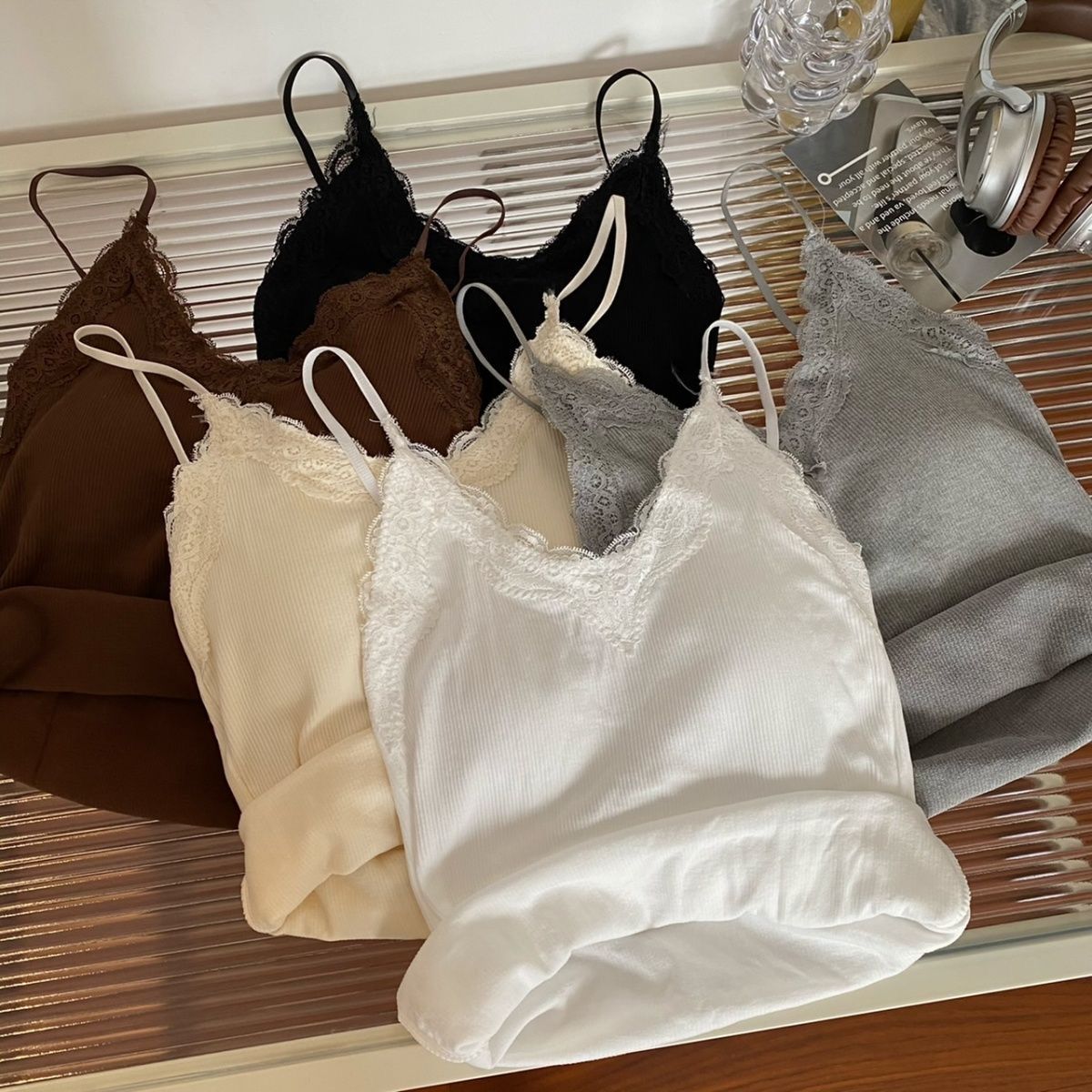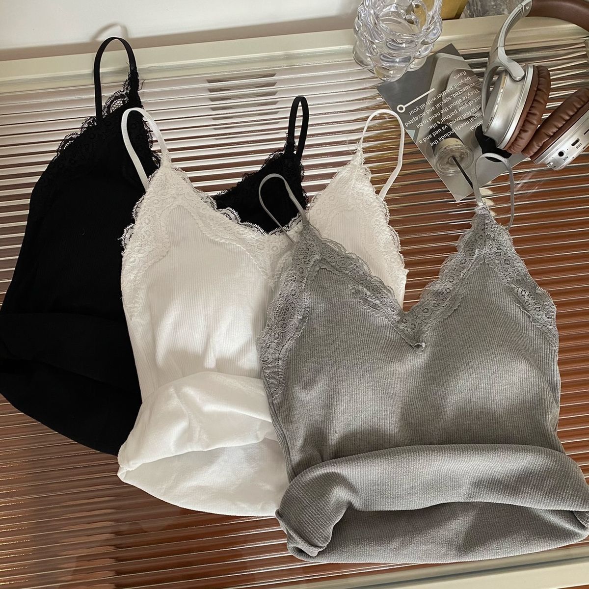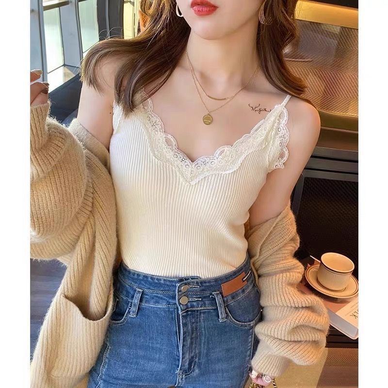 레이스 카미 솔 작은 조끼 가슴 패드 프렌치 V 넥 아름다운 백 랩 가슴 착용 여성을위한 조정 가능한 슬림베이스 탑