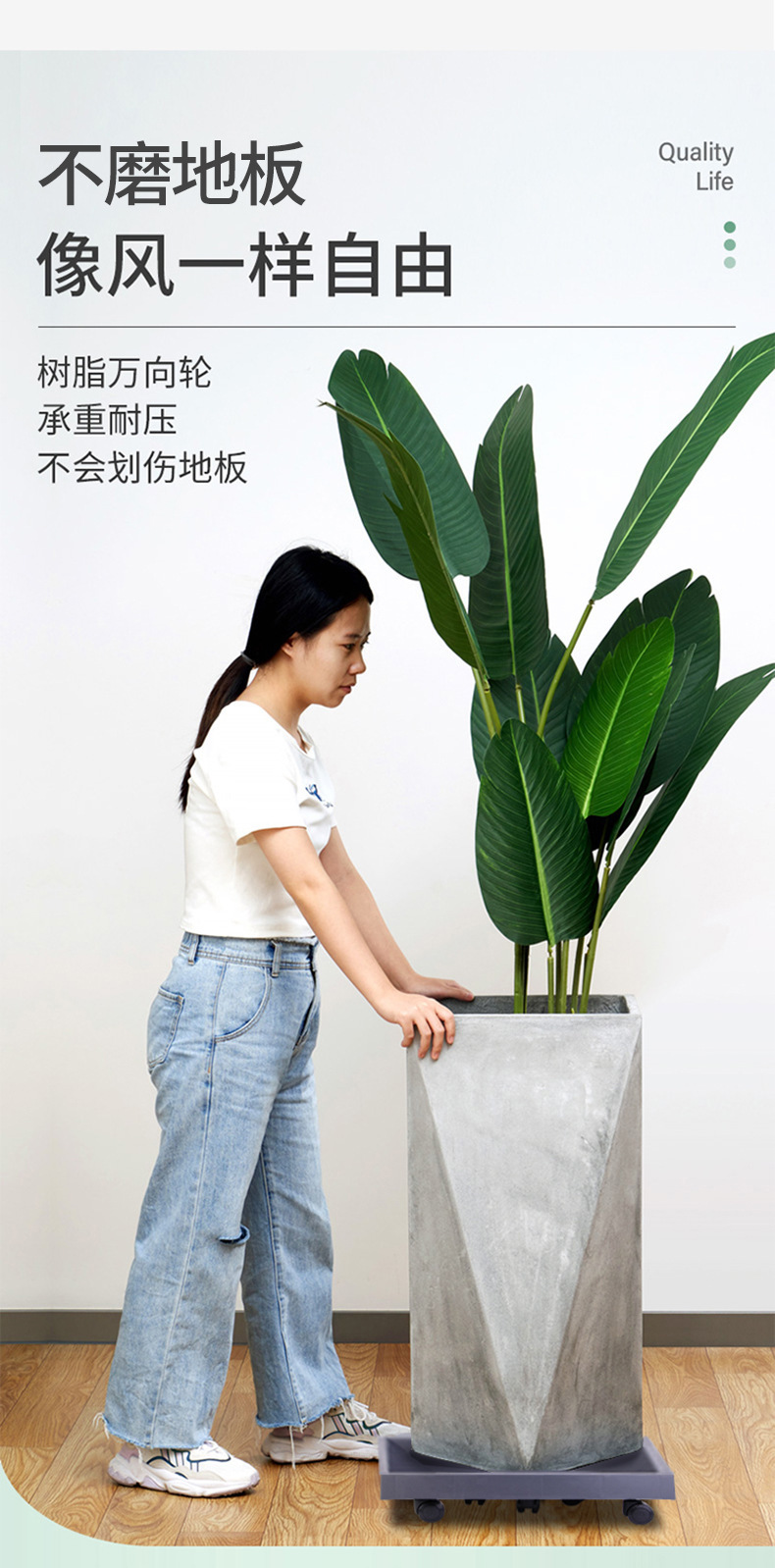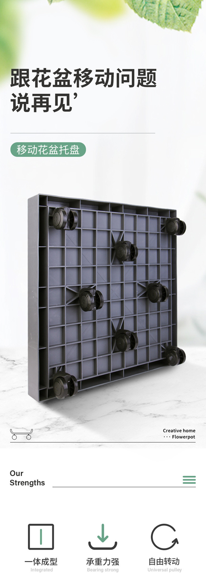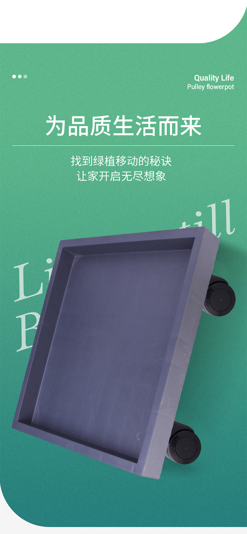 두꺼운 사각형 물받이 트레이, 이동식 바퀴가 달린 물받이 트레이, 바닥에 공기 배출 및 물 배출 기능이 있는 사각형 화분 받침대스토어 가기