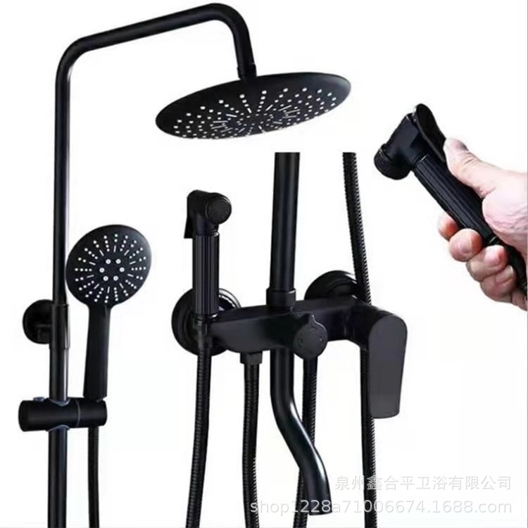구리 블랙 샤워 헤드 세트 욕실 벽걸이 형 홈 샤워 샤워 샤워 샤워 욕실 과급 노즐 욕조 은폐스토어 가기