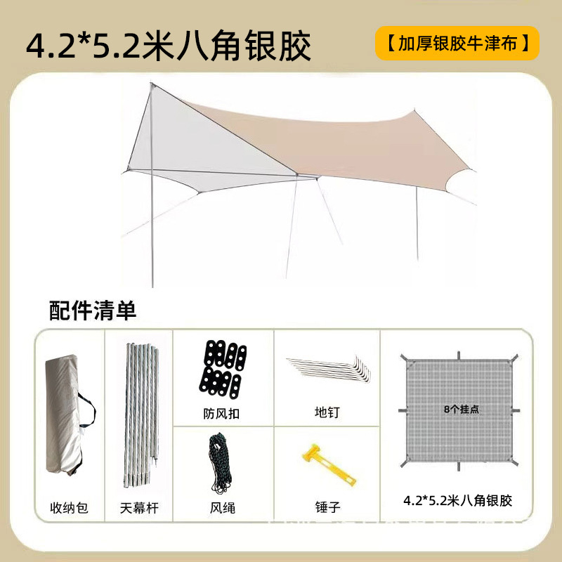 • 4.2* 5.2m 금도금 팔각형 [두꺼운 은색 접착제 옥스포드 천] 2.0 두께 막대