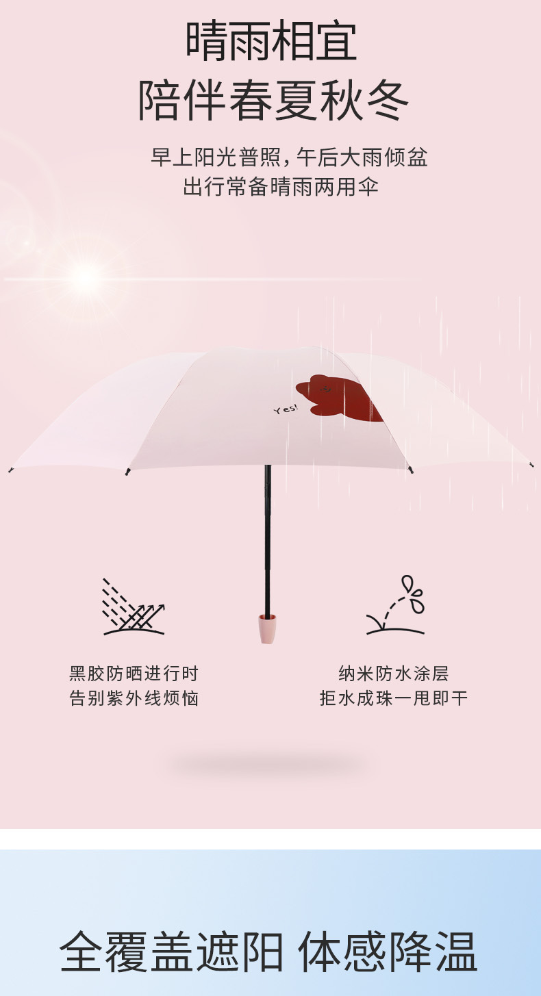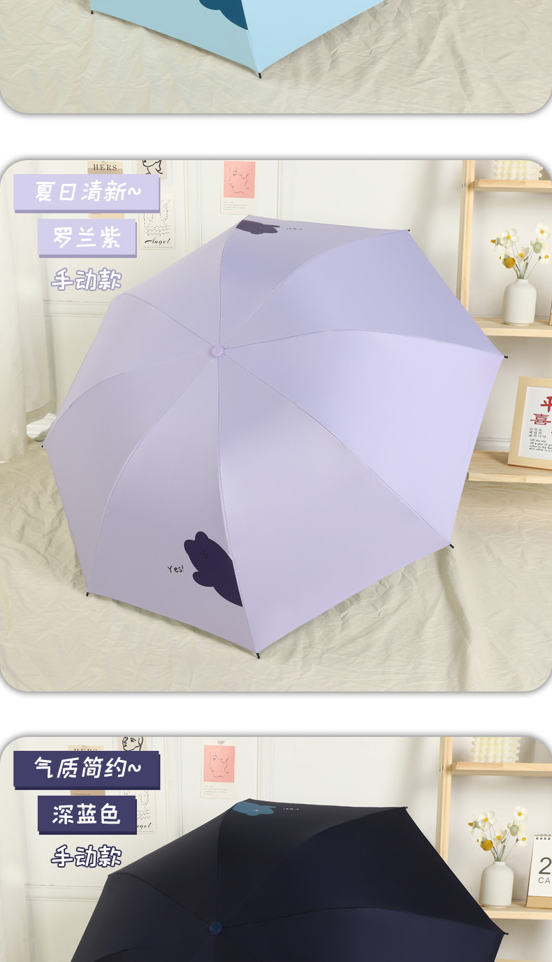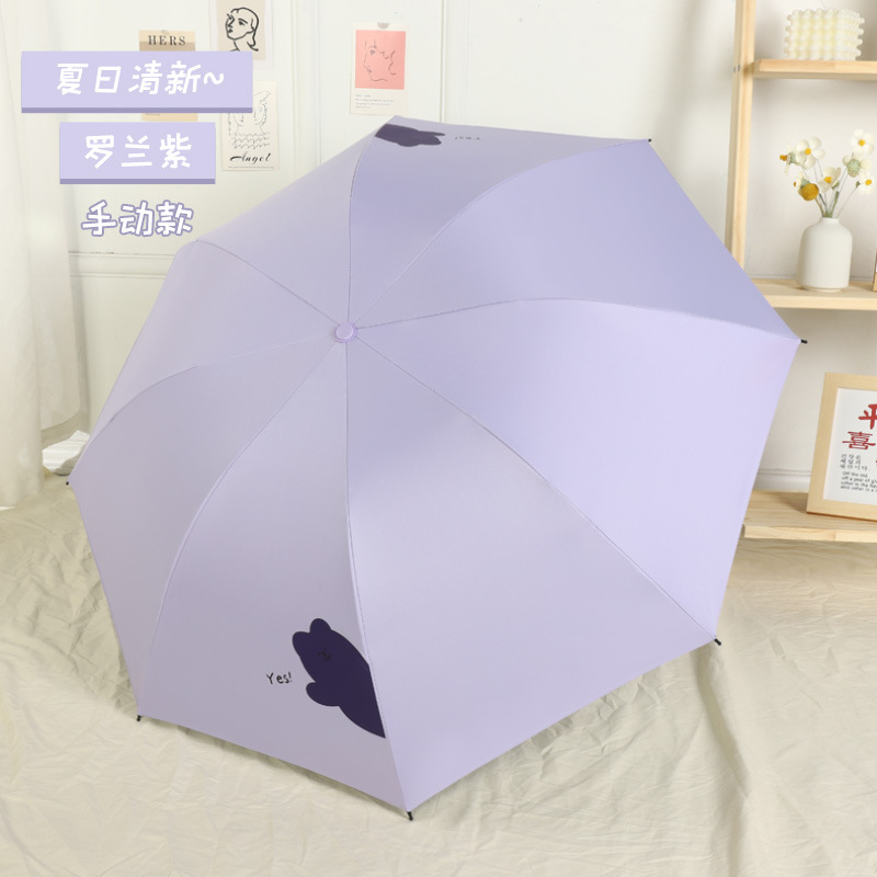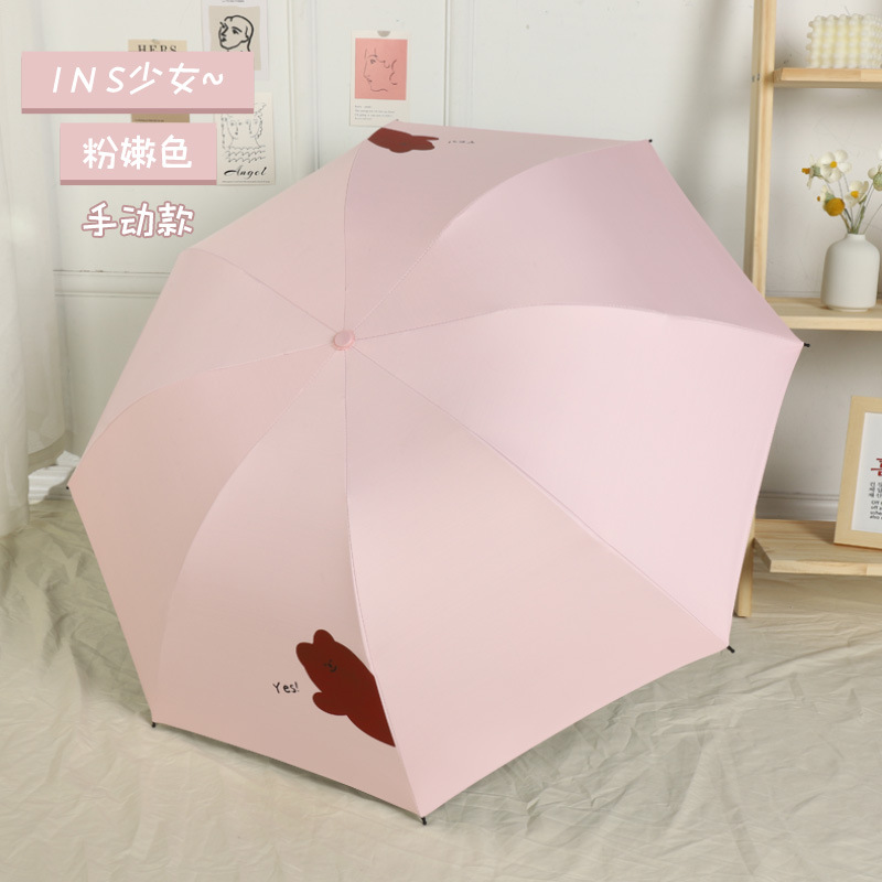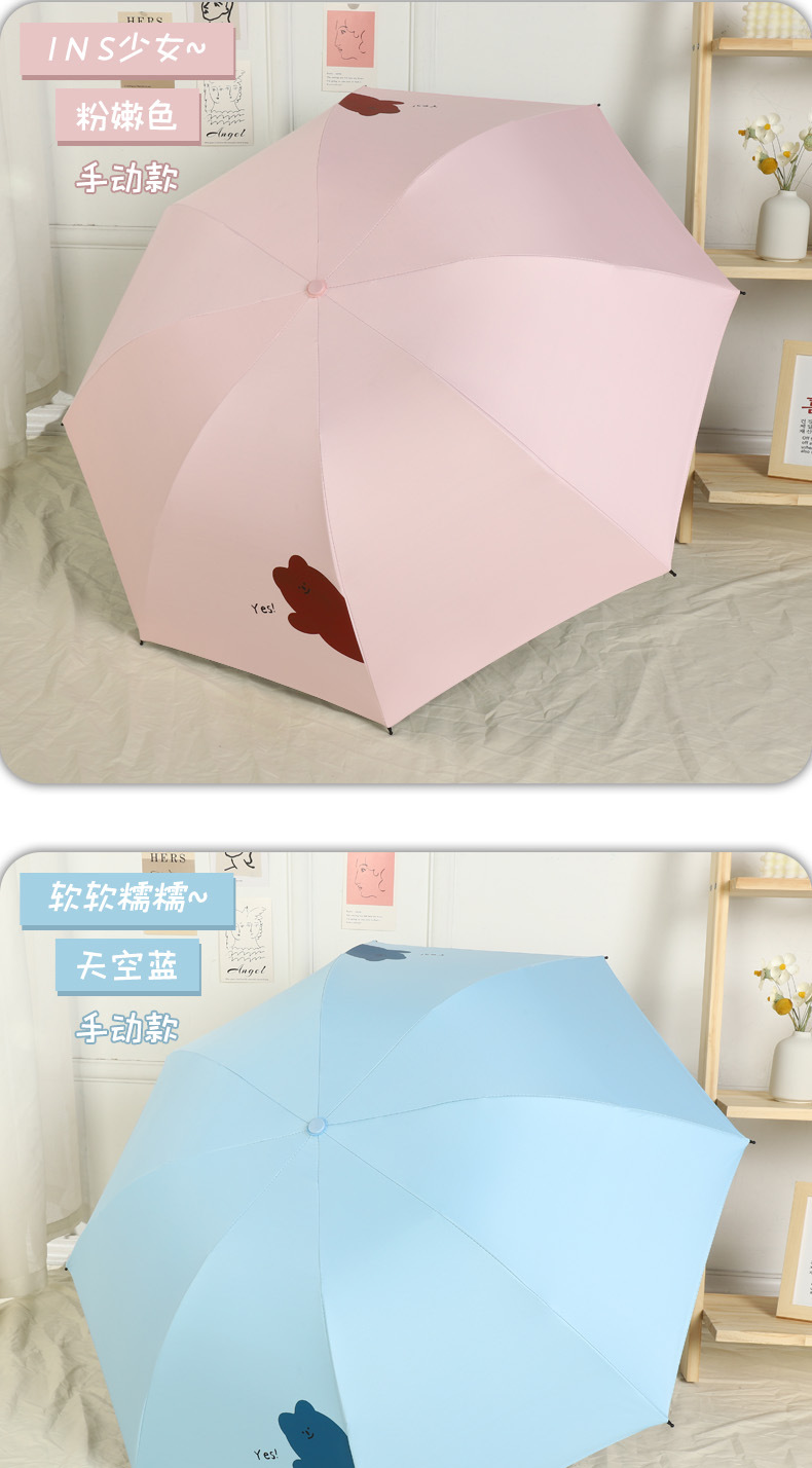 우산 도매 접이식 3 접이식 우산 비 이중 사용 검은 접착제 우산 간단한 태양 보호 차양 우산 귀여운 애완 동물 곰 휴대용 우산