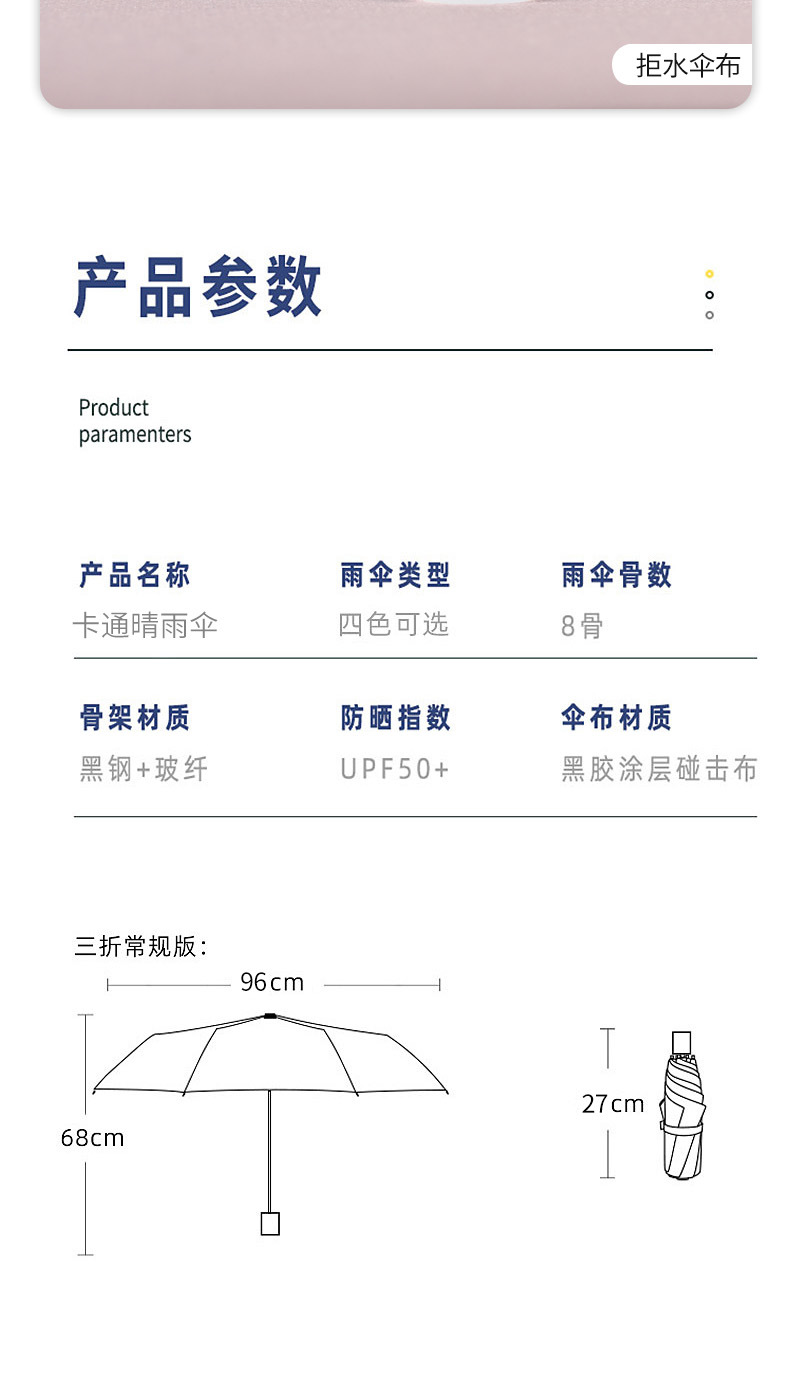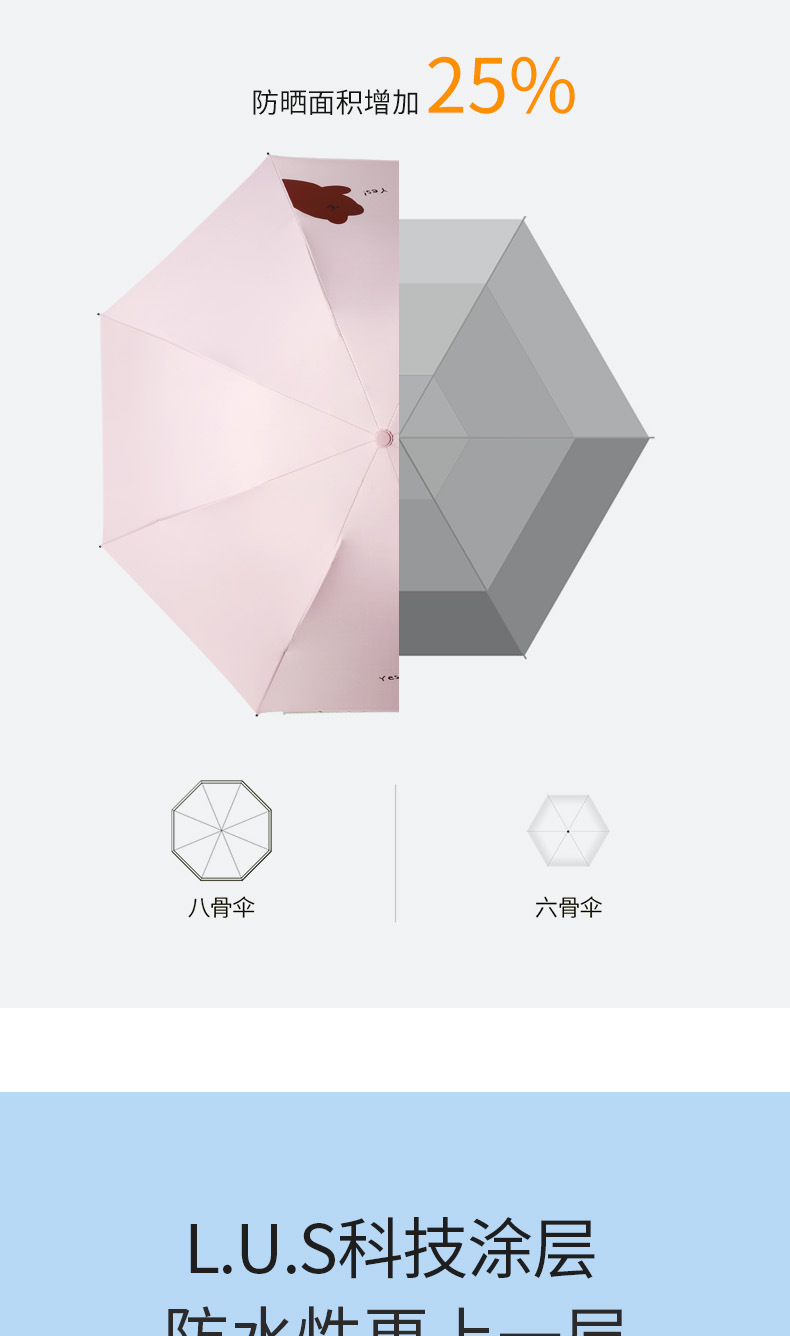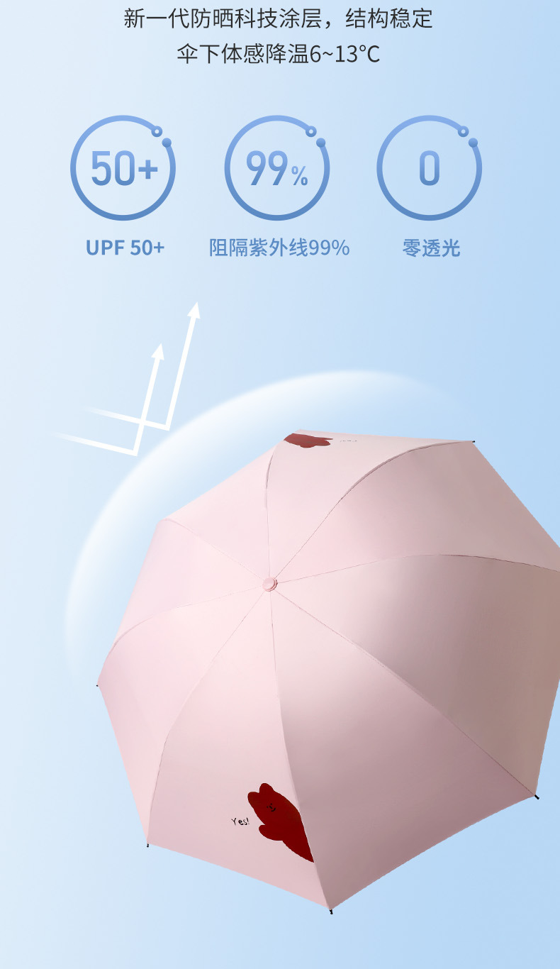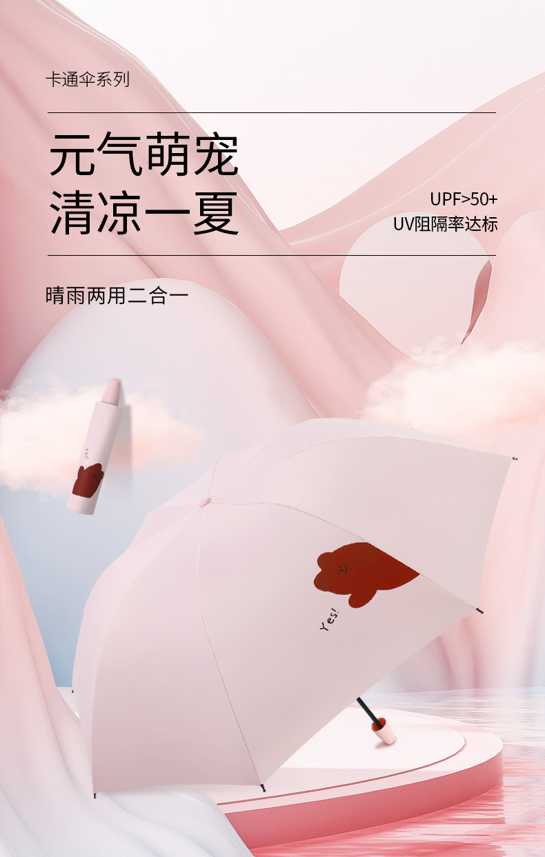 우산 도매 접이식 3 접이식 우산 비 이중 사용 검은 접착제 우산 간단한 태양 보호 차양 우산 귀여운 애완 동물 곰 휴대용 우산