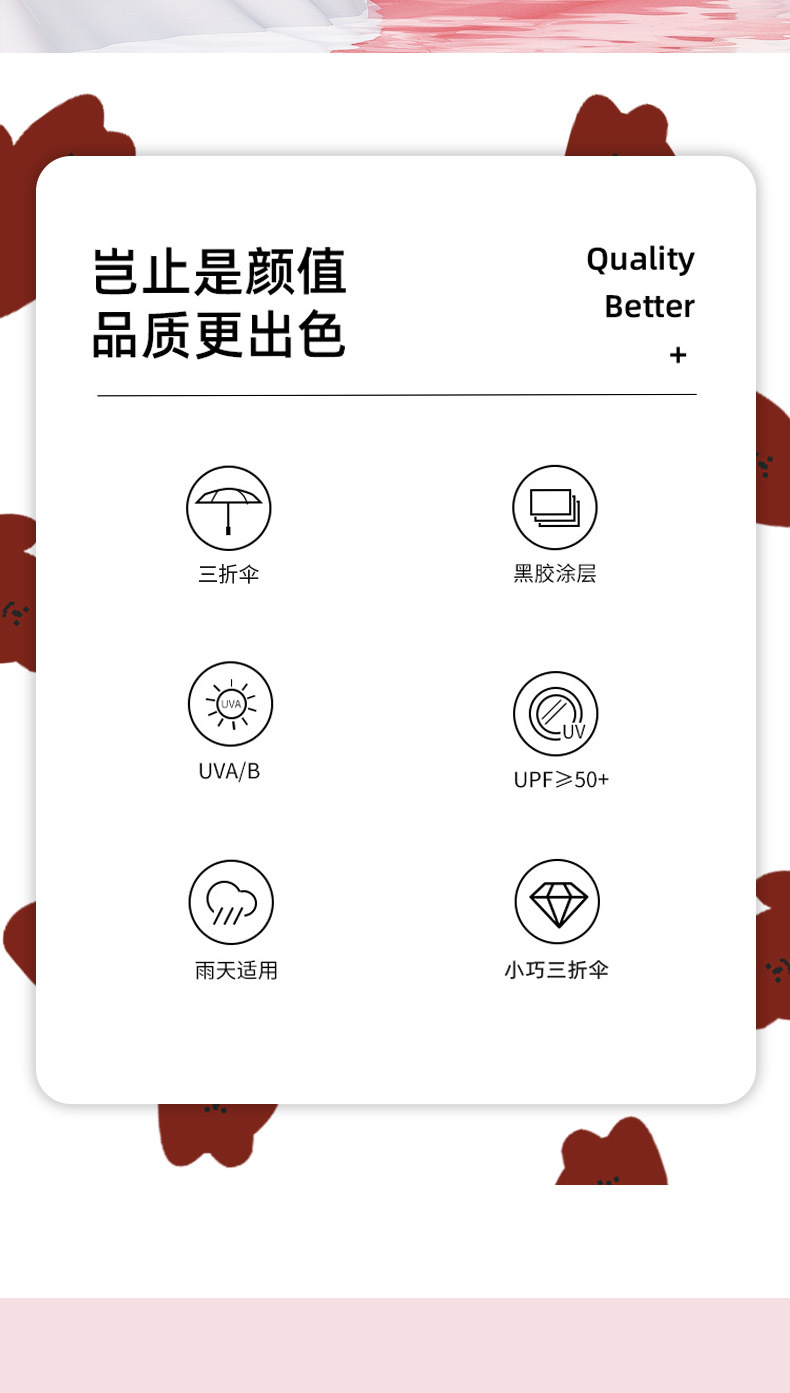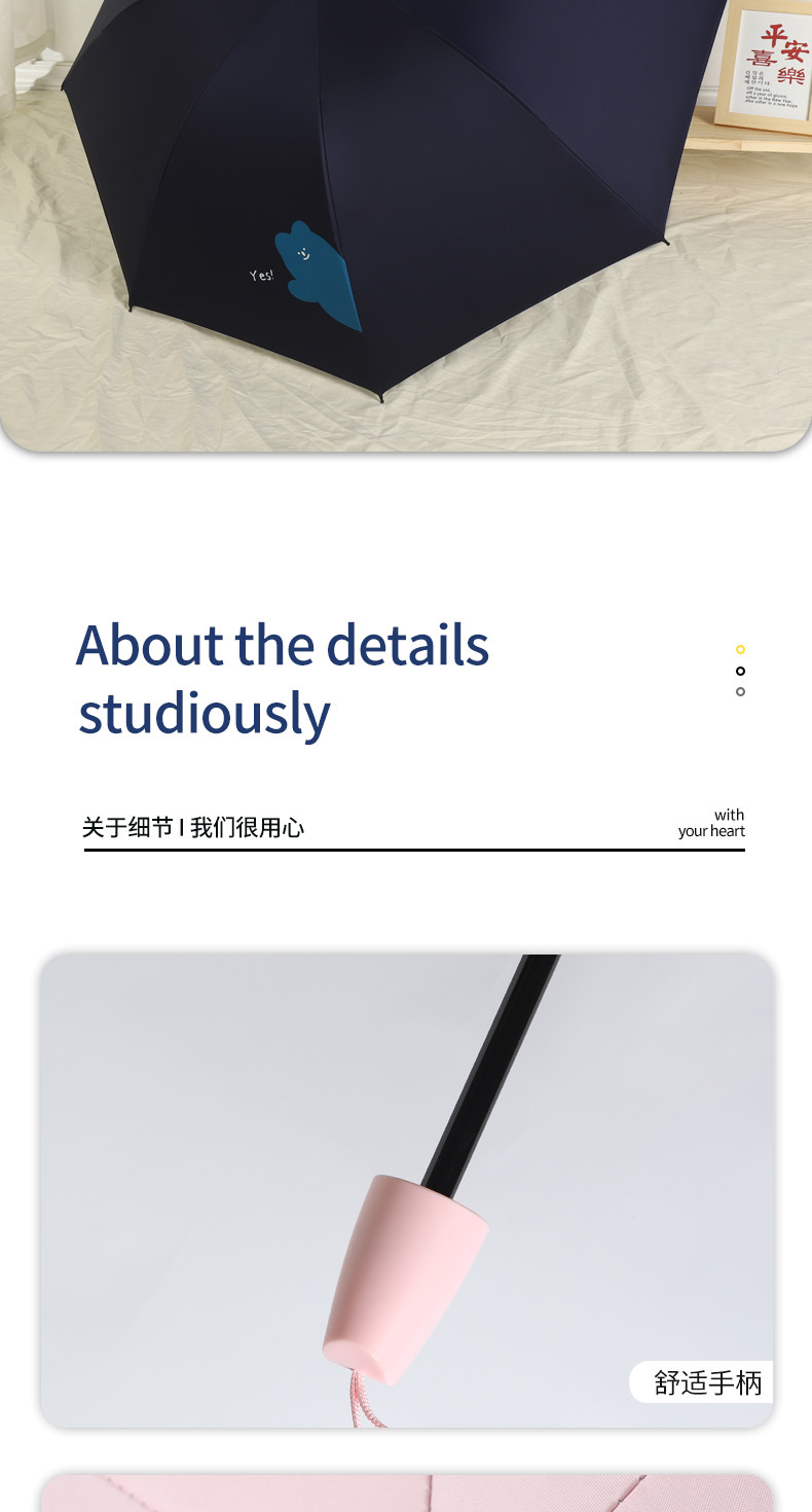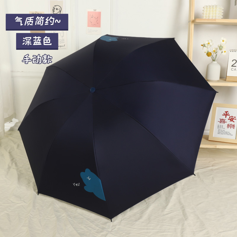 우산 도매 접이식 3 접이식 우산 비 이중 사용 검은 접착제 우산 간단한 태양 보호 차양 우산 귀여운 애완 동물 곰 휴대용 우산스토어 가기