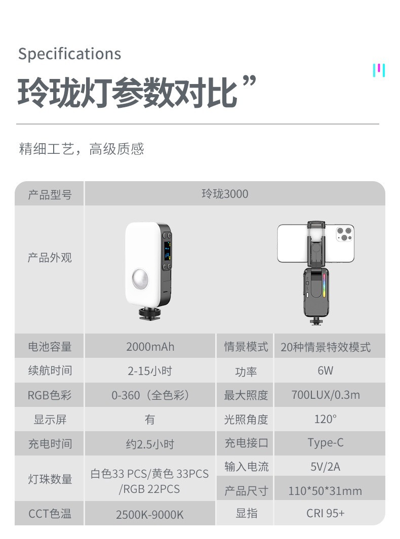 • Linglong 3000 (표준 삼각대 + TikTok 원격 제어)