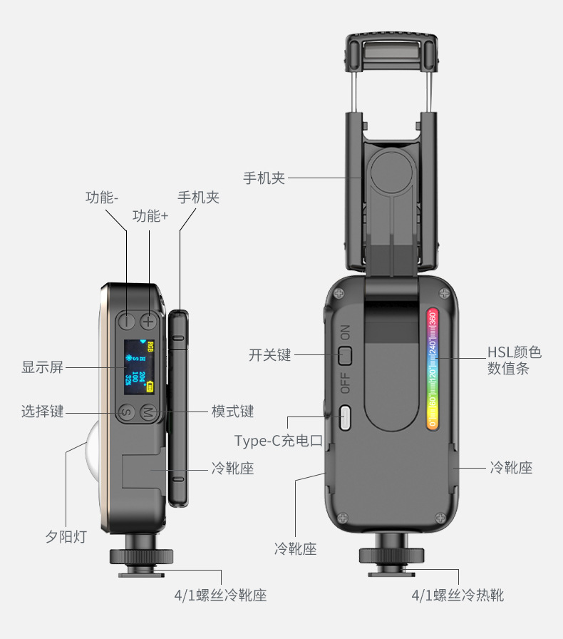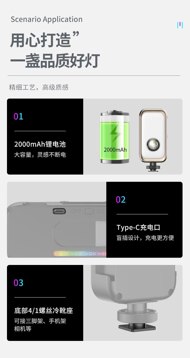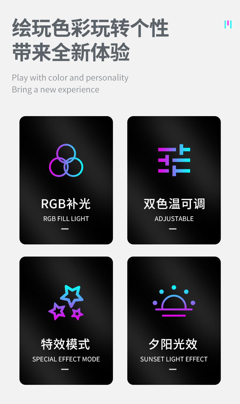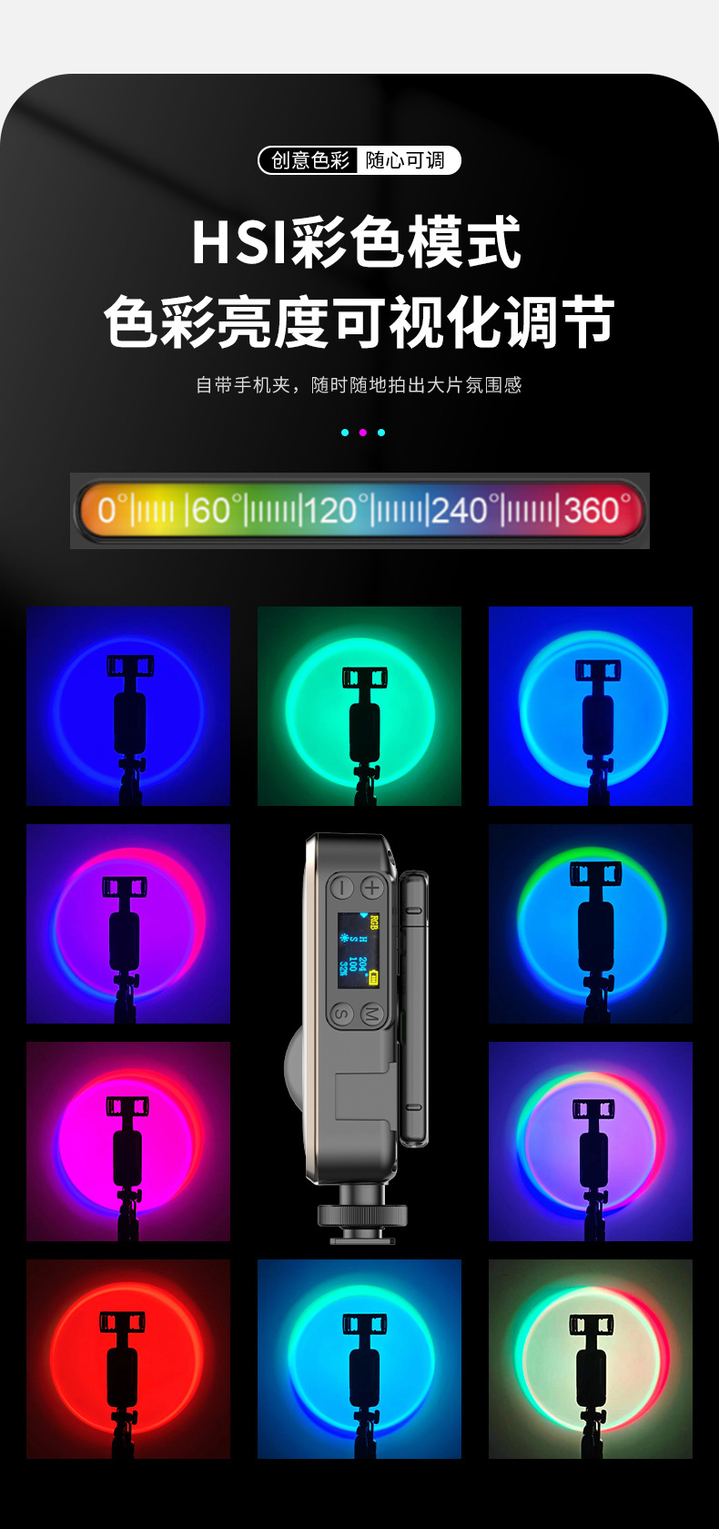 새로운 RGB 채우기 빛 LED 휴대용 포켓 라이트 휴대용 미니 사진 빛 라이브 사진 야외 일몰 조명