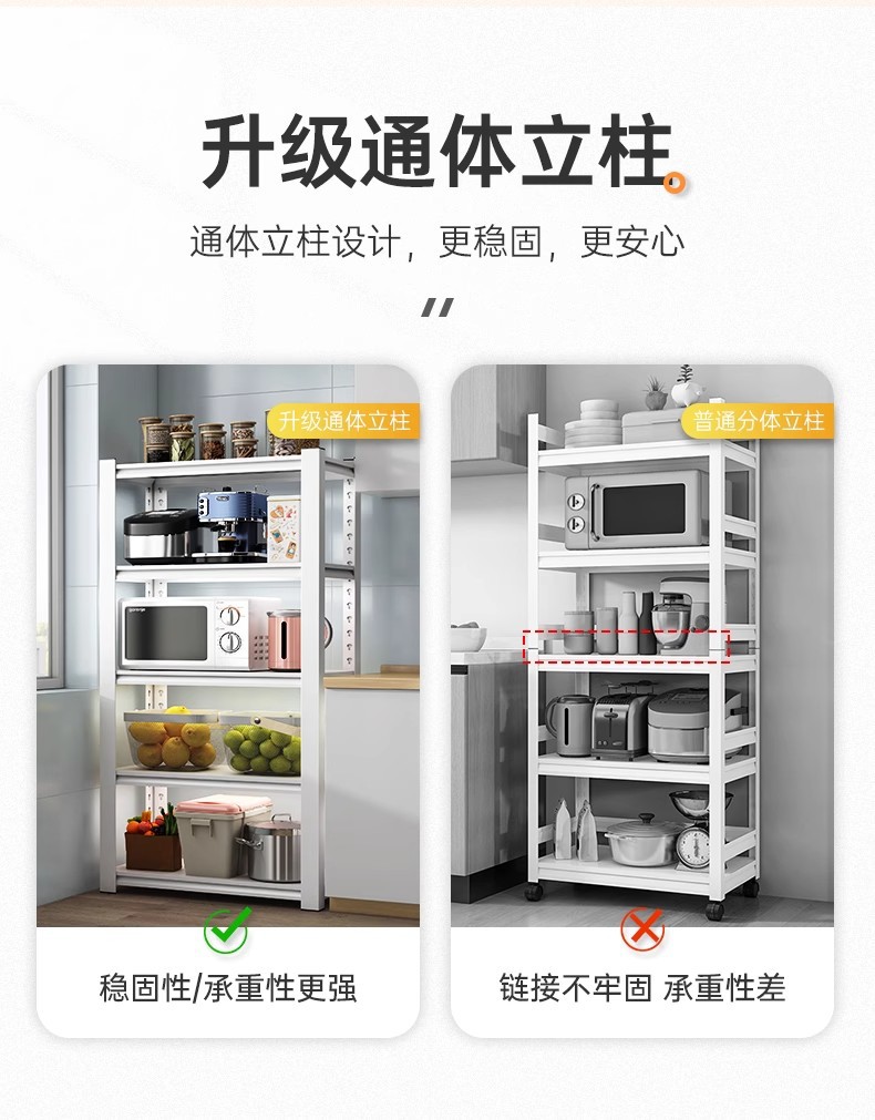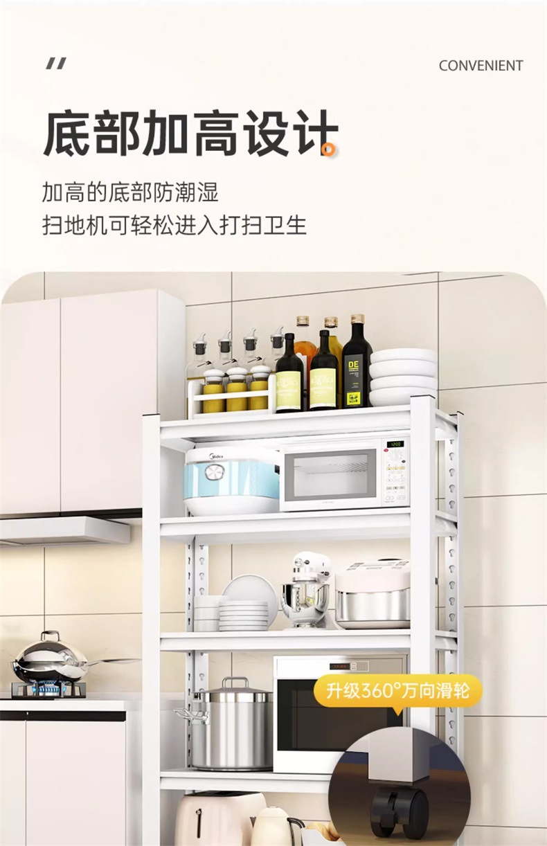 주방 보관 랙 흰색 바닥 가정용 전자 레인지 보관 랙 발코니 거실 보관 선반
