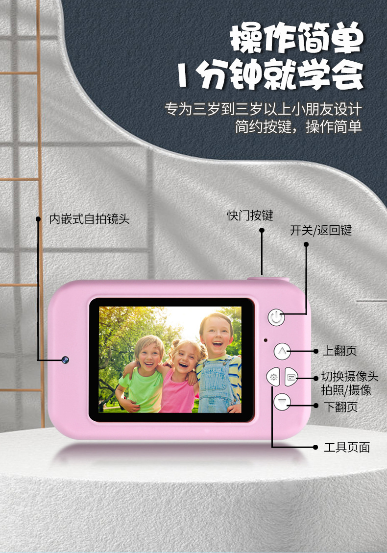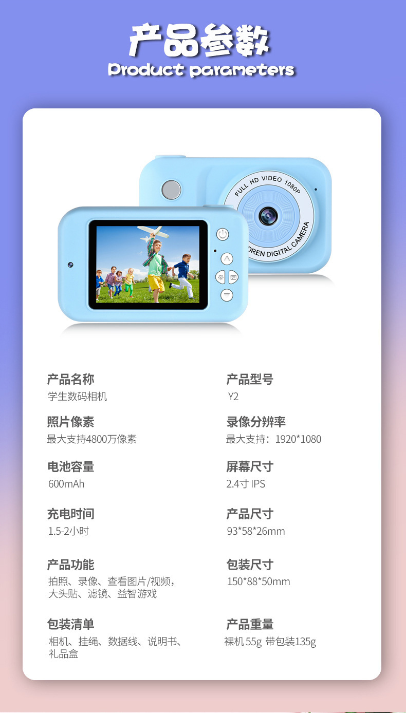 Y2儿童数码相机 2000W像素儿童迷你照相机玩具卡通IPS屏礼品