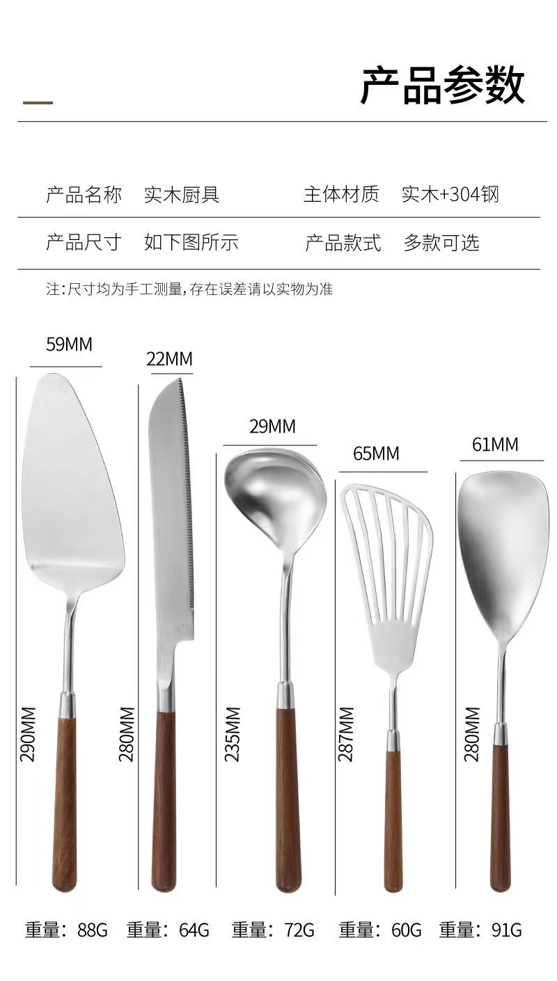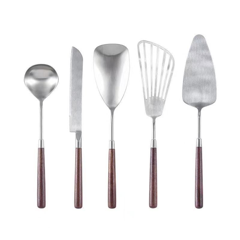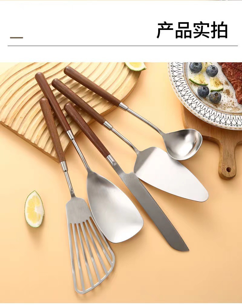 호두 304 스테인레스 스틸 솔리드 우드 핸들 요리 스푼 삽 주방 가제트 호텔 레스토랑 케이크 칼 삽 수프 스푼