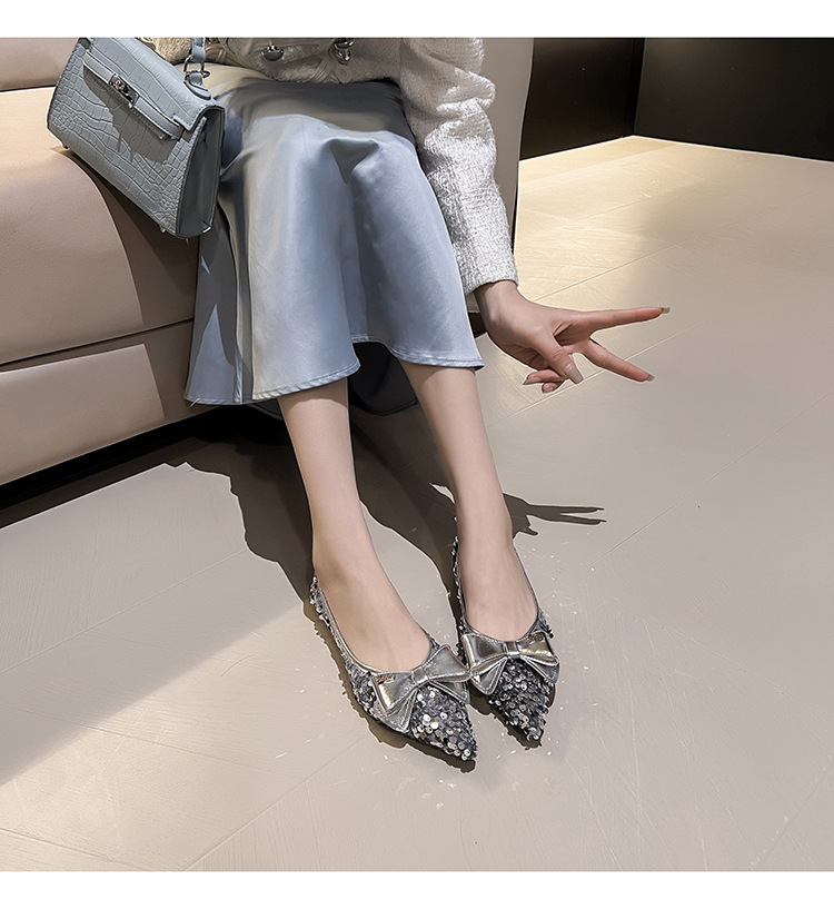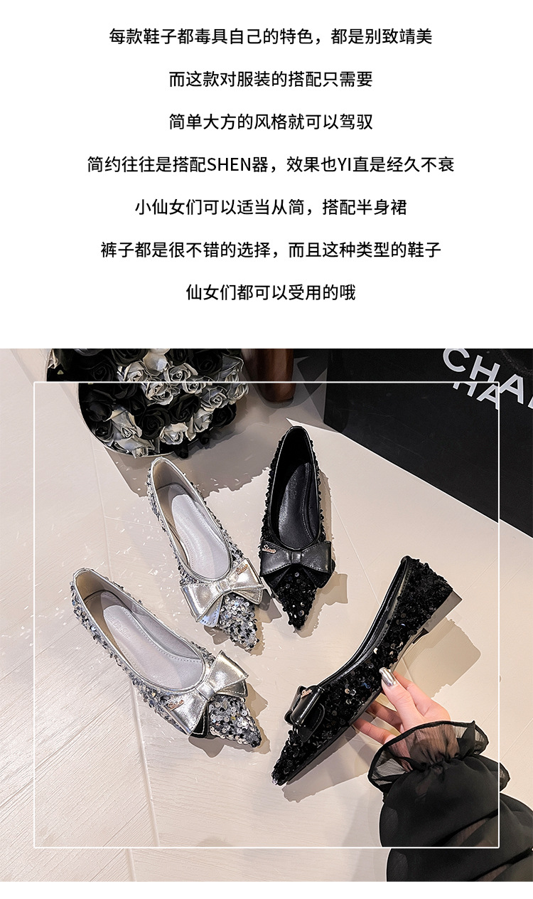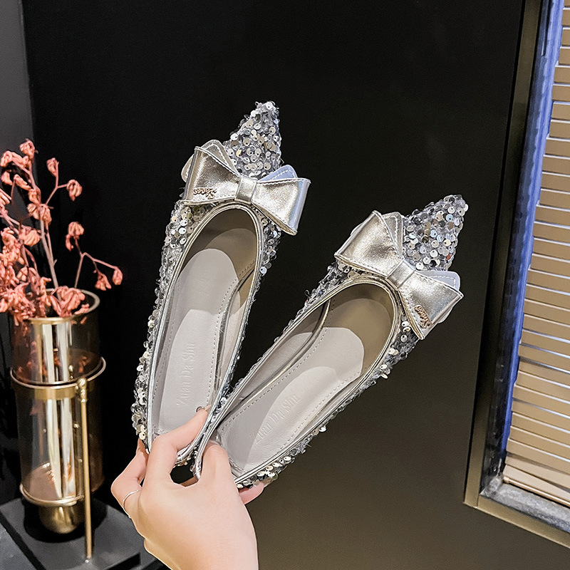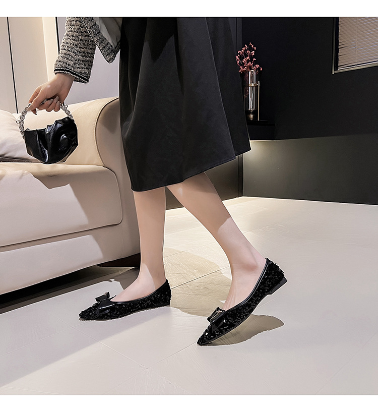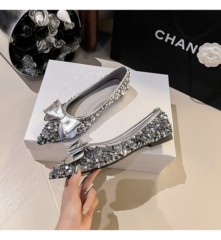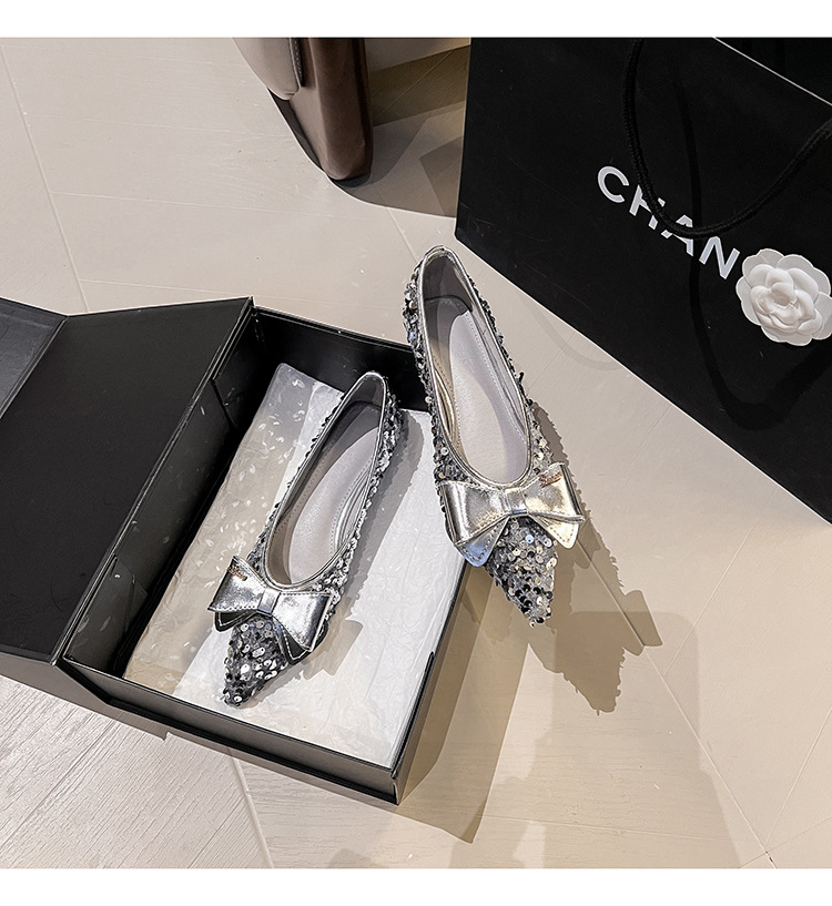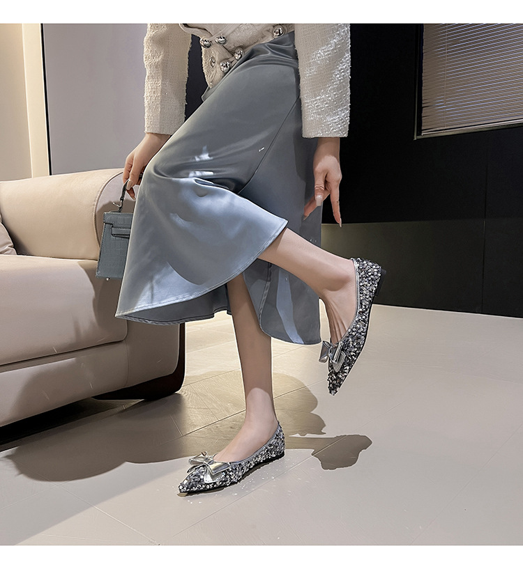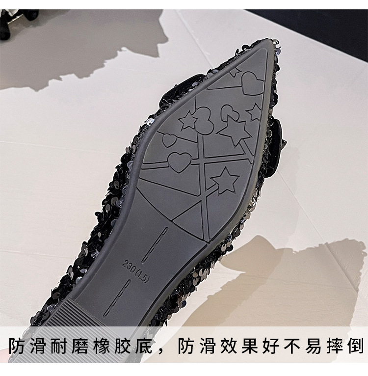 세련된 뾰족코 여성용 플랫 슈즈, 2025년 신상 반짝이 슈즈, 플랫 슈즈, 큰 사이즈 여성화 41~43스토어 가기