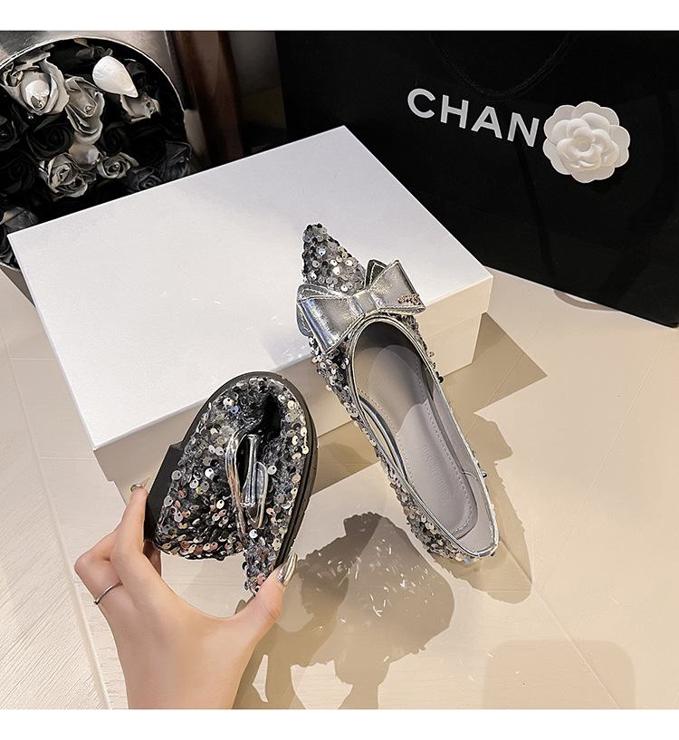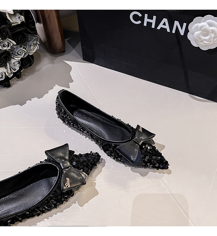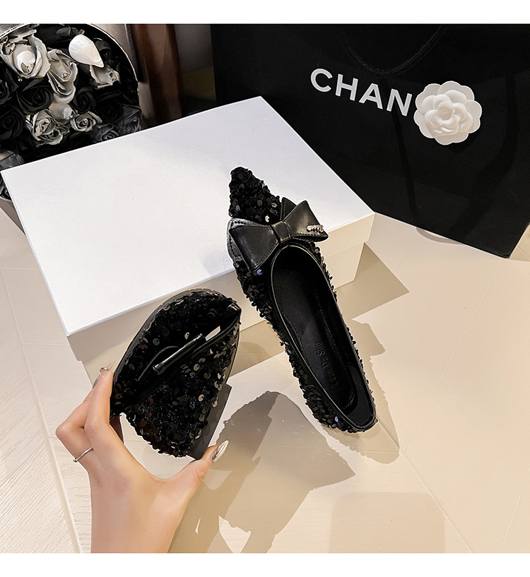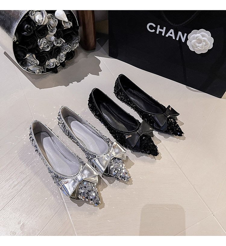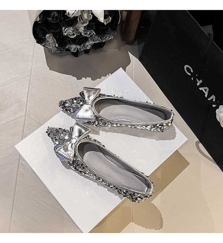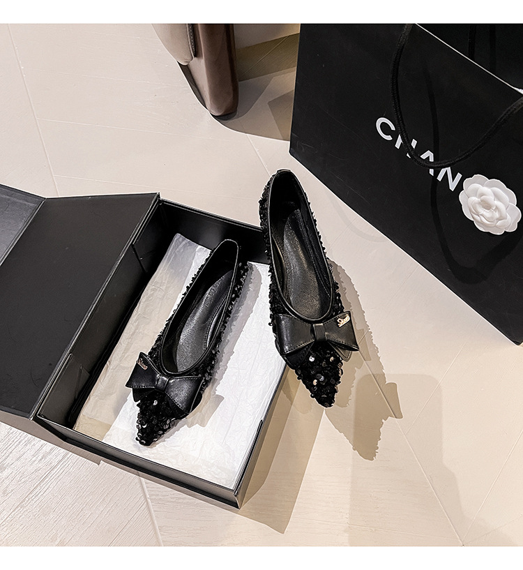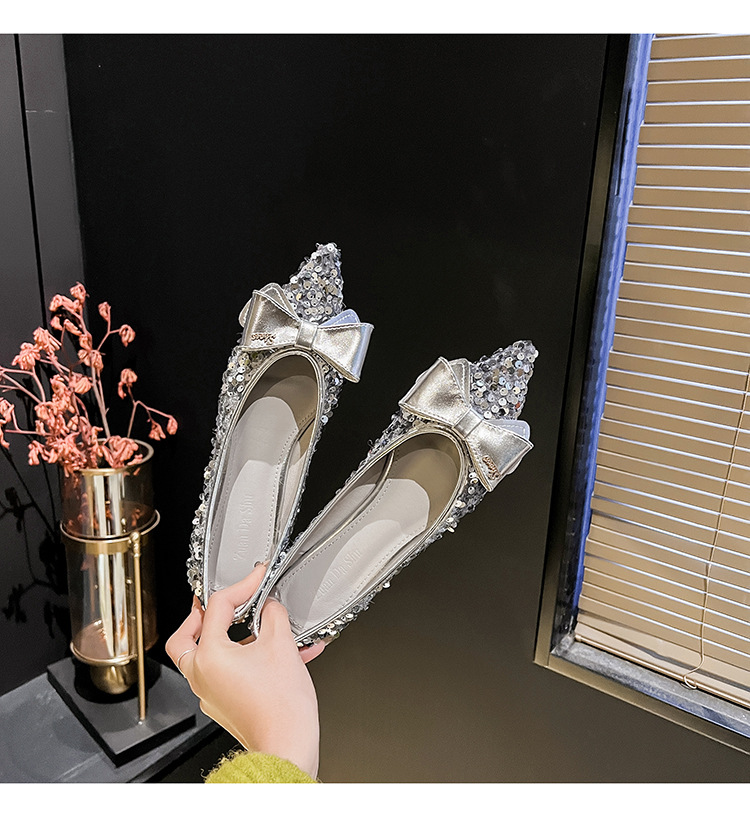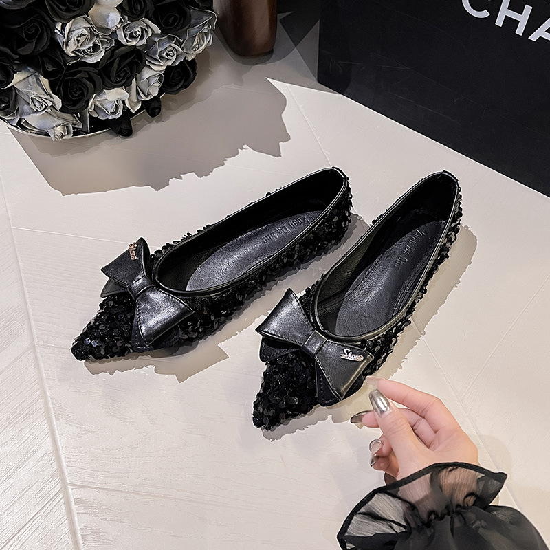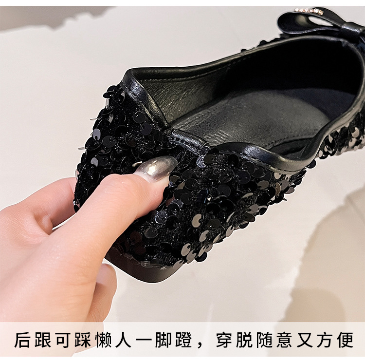 세련된 뾰족코 여성용 플랫 슈즈, 2025년 신상 반짝이 슈즈, 플랫 슈즈, 큰 사이즈 여성화 41~43스토어 가기