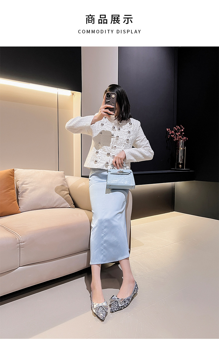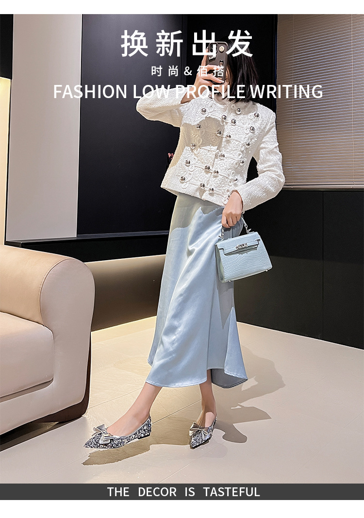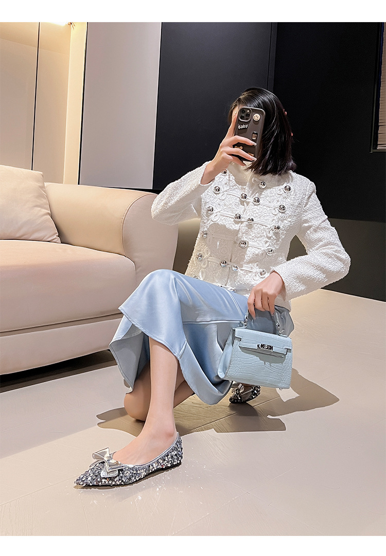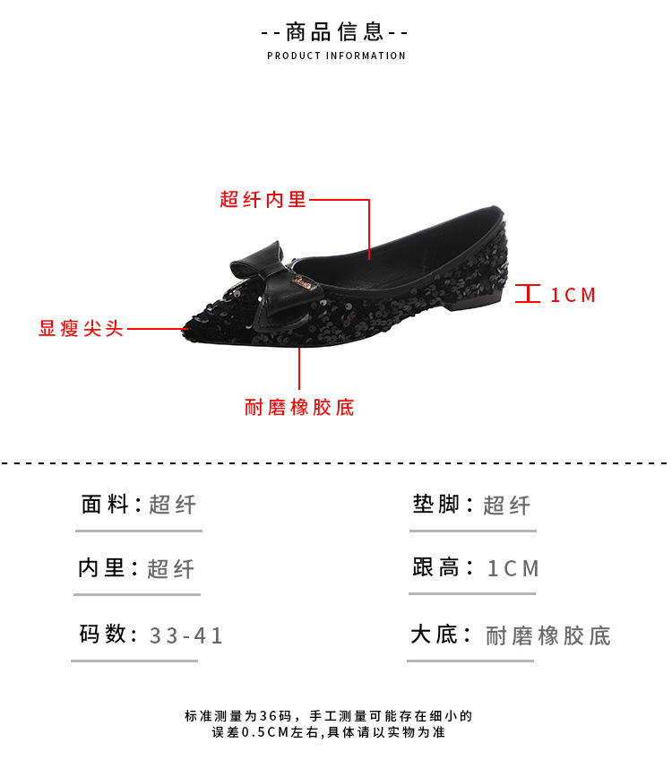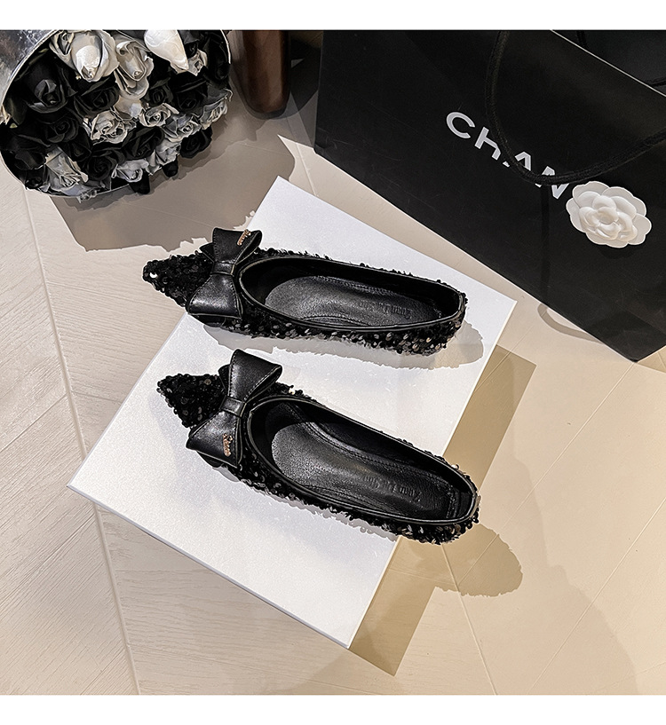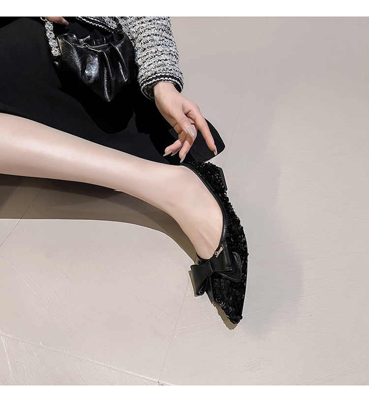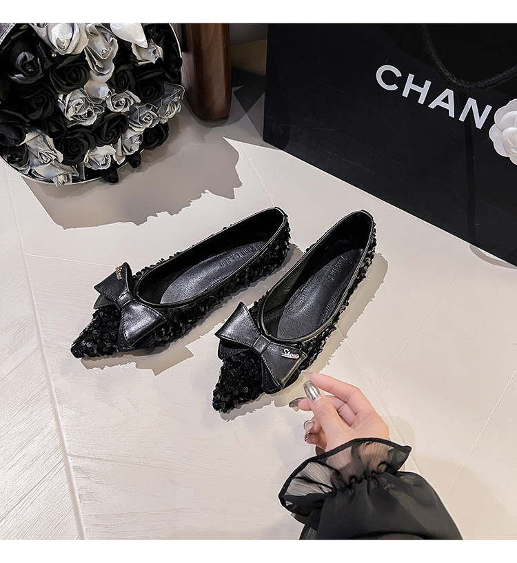 세련된 뾰족코 여성용 플랫 슈즈, 2025년 신상 반짝이 슈즈, 플랫 슈즈, 큰 사이즈 여성화 41~43스토어 가기
