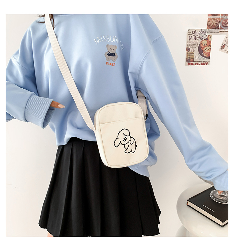 여성 가방 귀여운 크로스 바디 작은 가방 여성 2024 새로운 트렌디 한 신선한 여성 학생 소녀 올 매치 휴대 전화 캔버스 가방스토어 가기