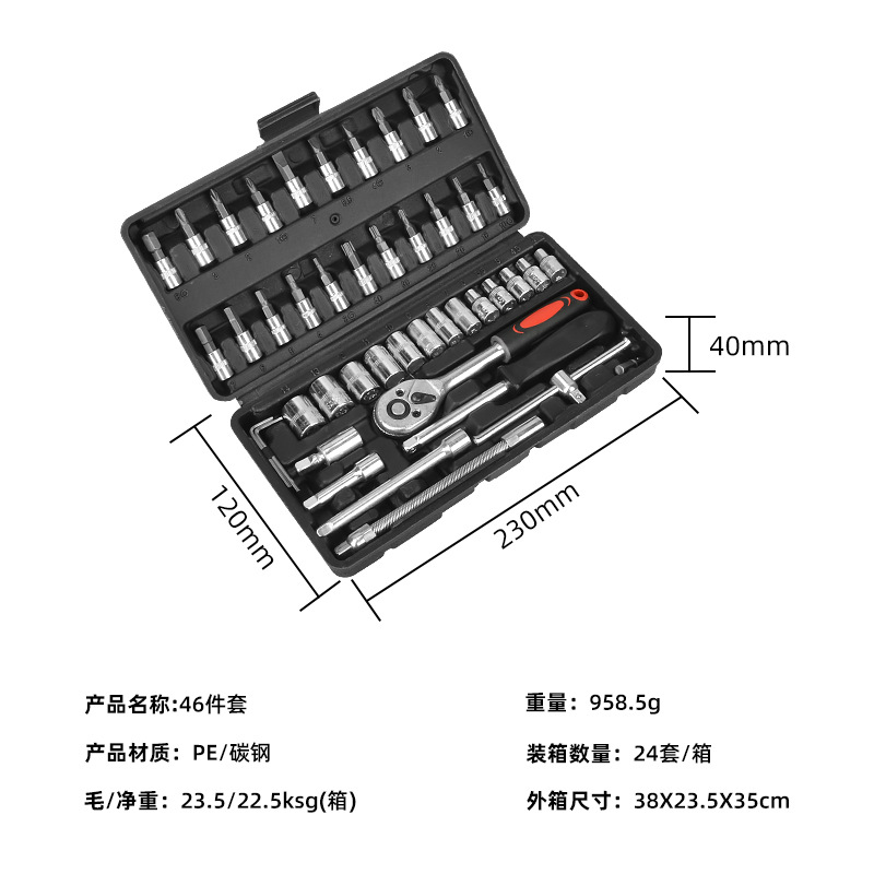 • 46피스 자동차 수리 세트, 블랙