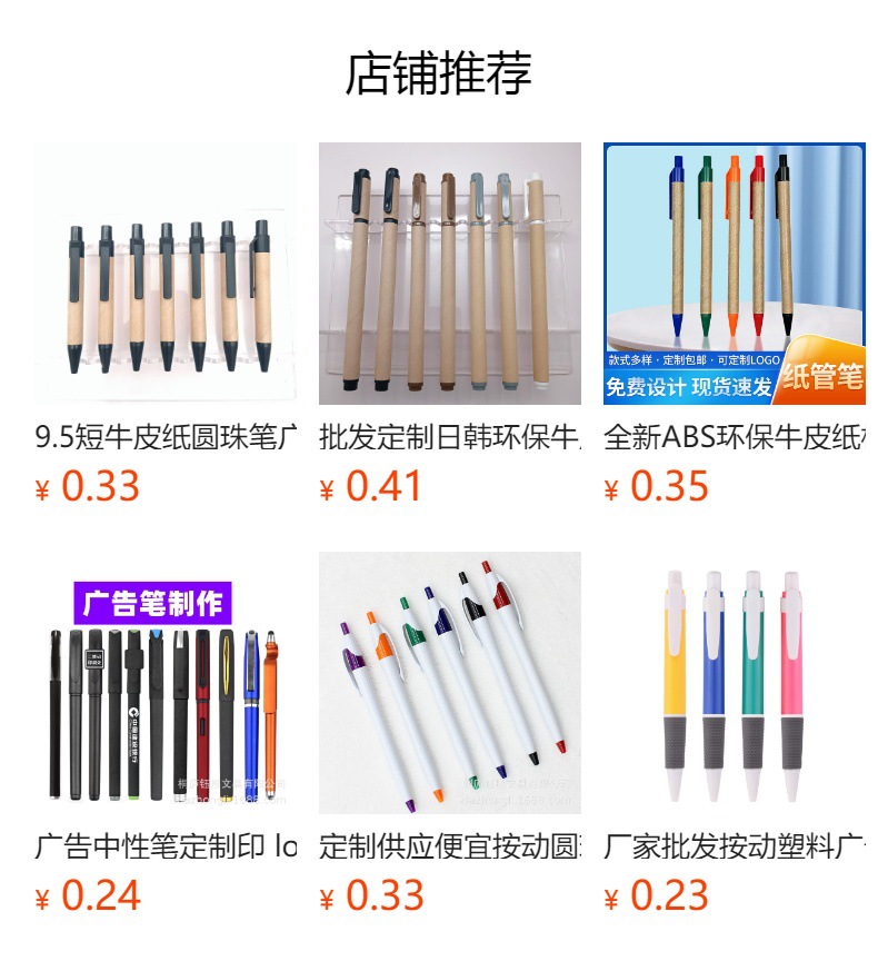 8.5 짧은 크라프트지 볼펜 로고 인쇄 친환경 종이 튜브 사인펜 선물용 도매 샤오미 지우니엔 쓰기력 강한 볼펜스토어 가기
