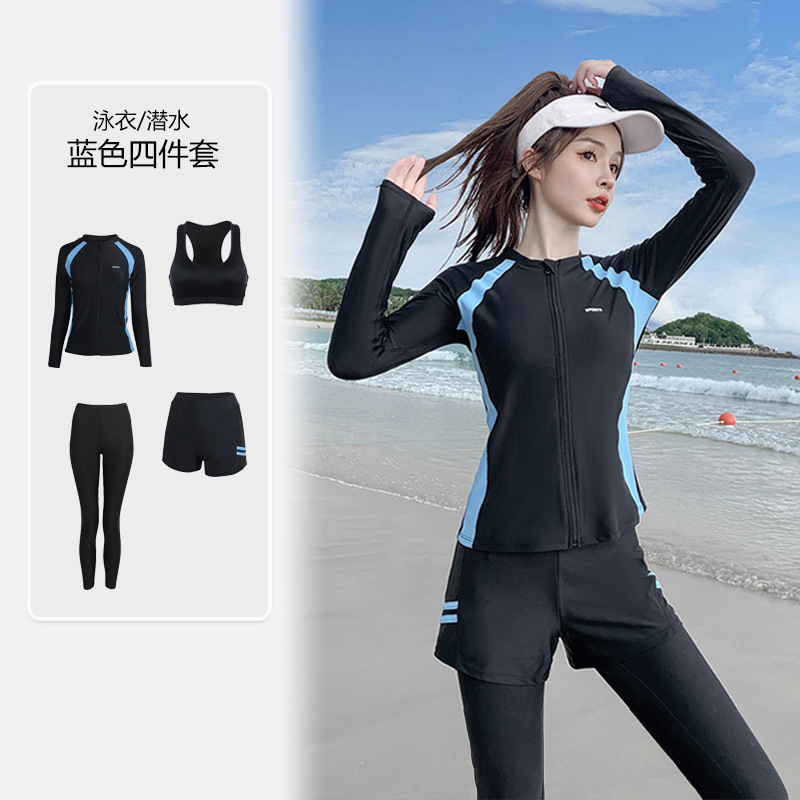 2023 다이빙 세트 여자 스플릿 긴팔 수영복 보수 스포츠 태양 보호 빠른 건조 서핑 세트 해파리 세트스토어 가기