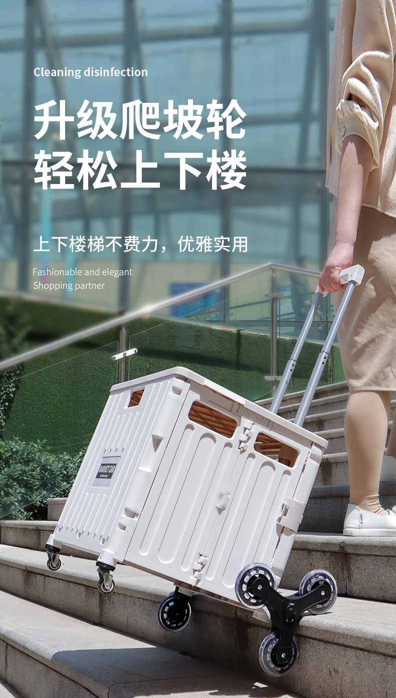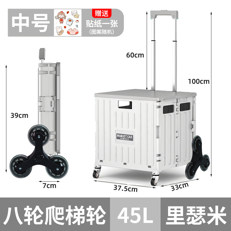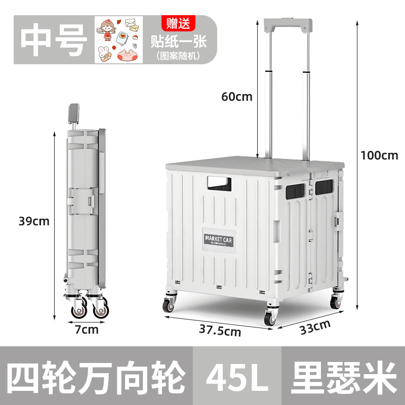 • 실버 흰색 중간 4 륜 접이식 트롤리 (45L)