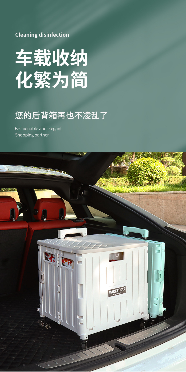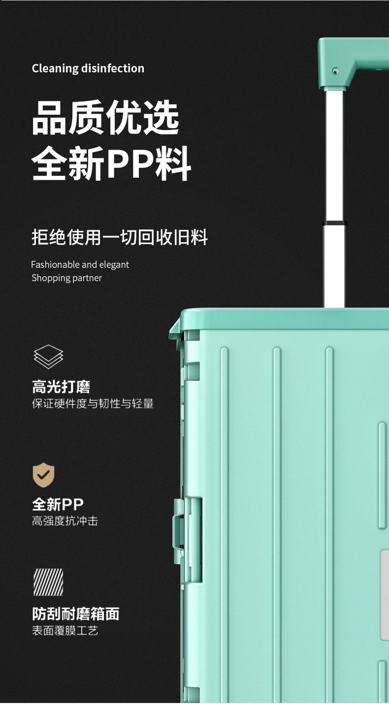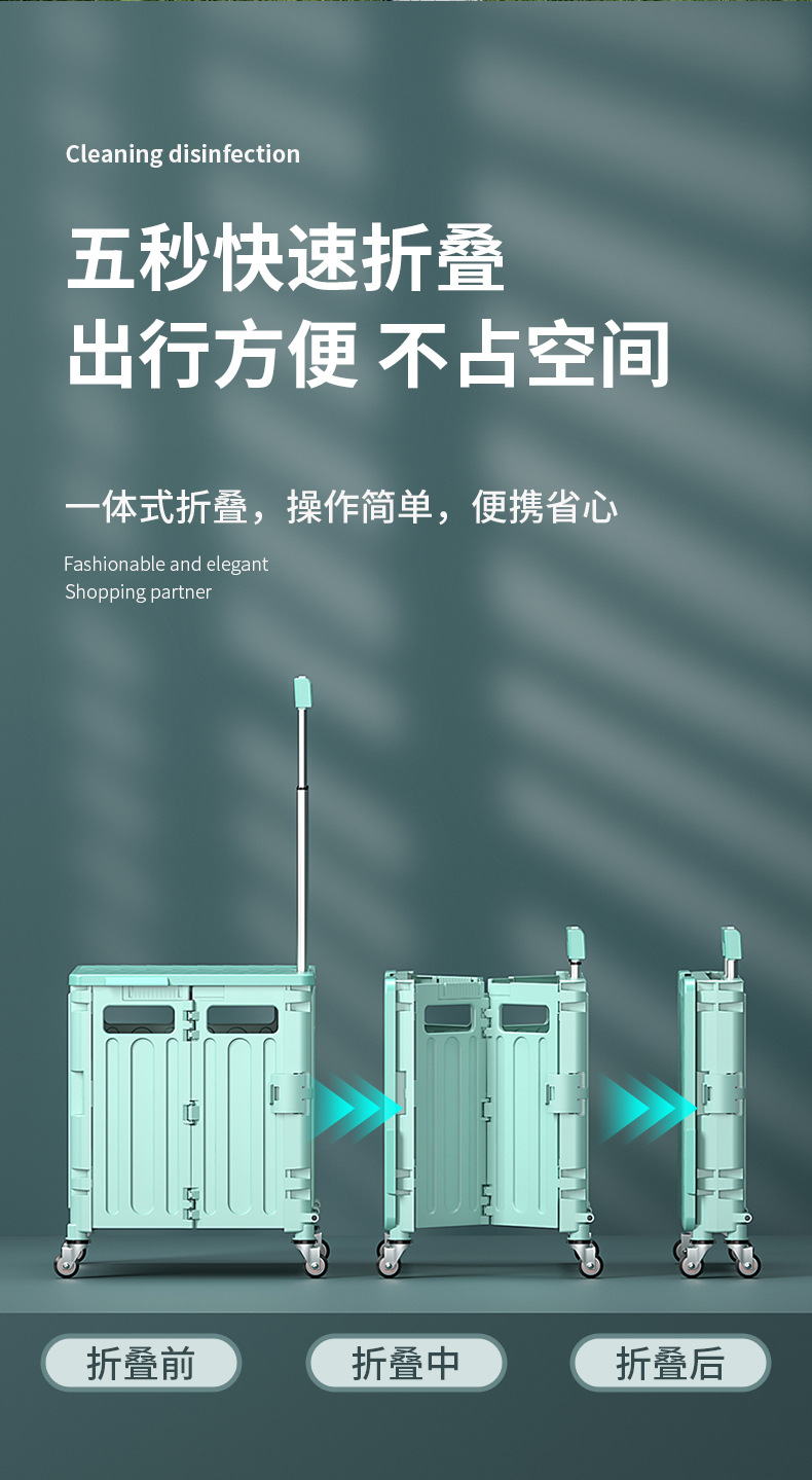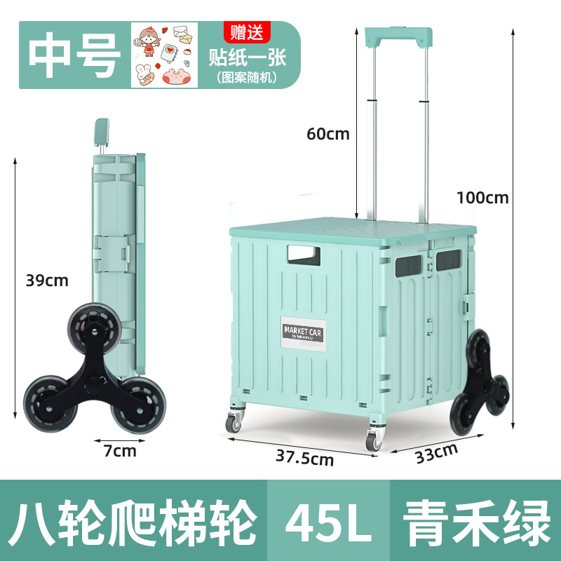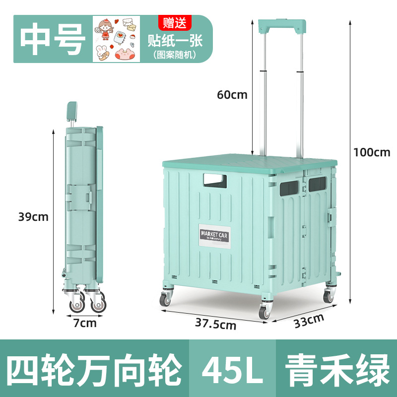 • 민트 그린 중형 4 륜 접이식 트롤리 (45L)