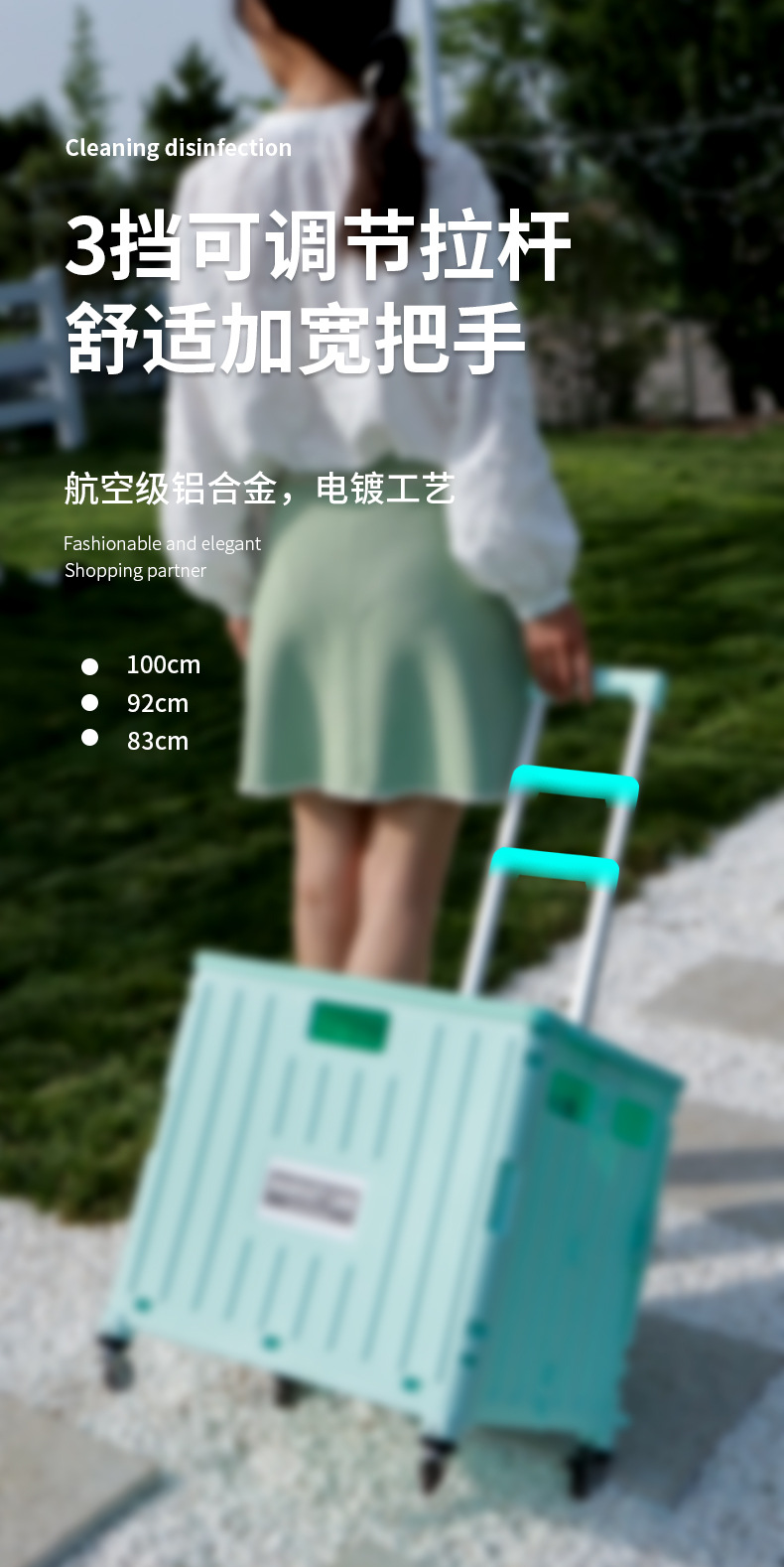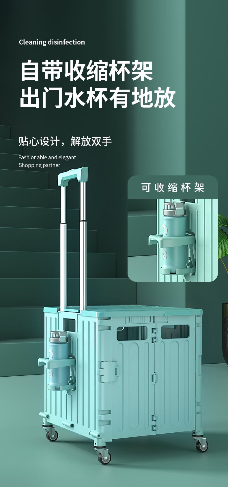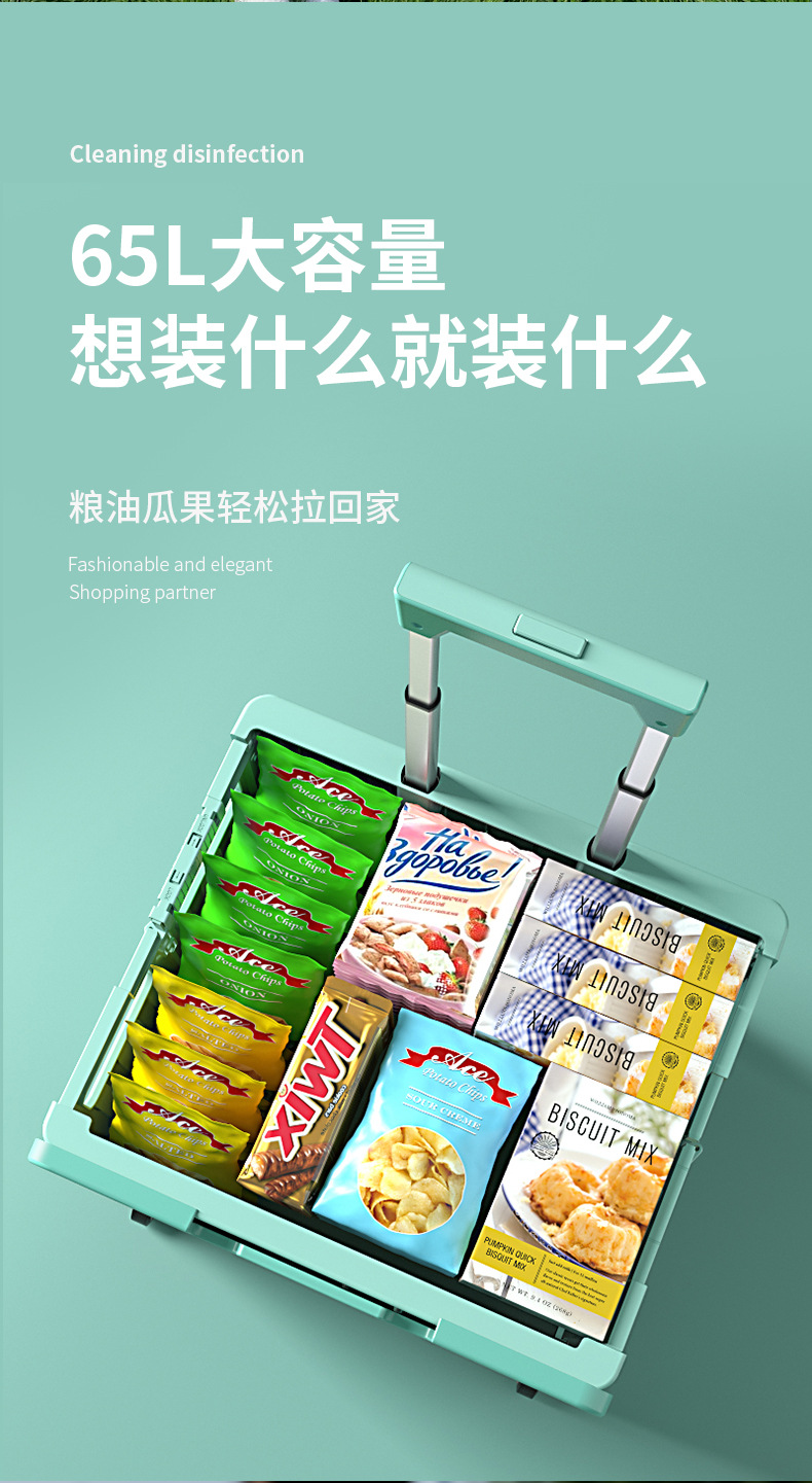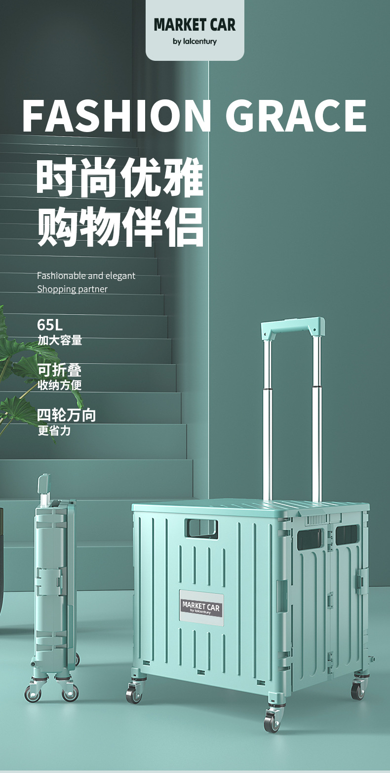 • 민트 그린 대형 4 륜 접이식 트롤리 (65L)