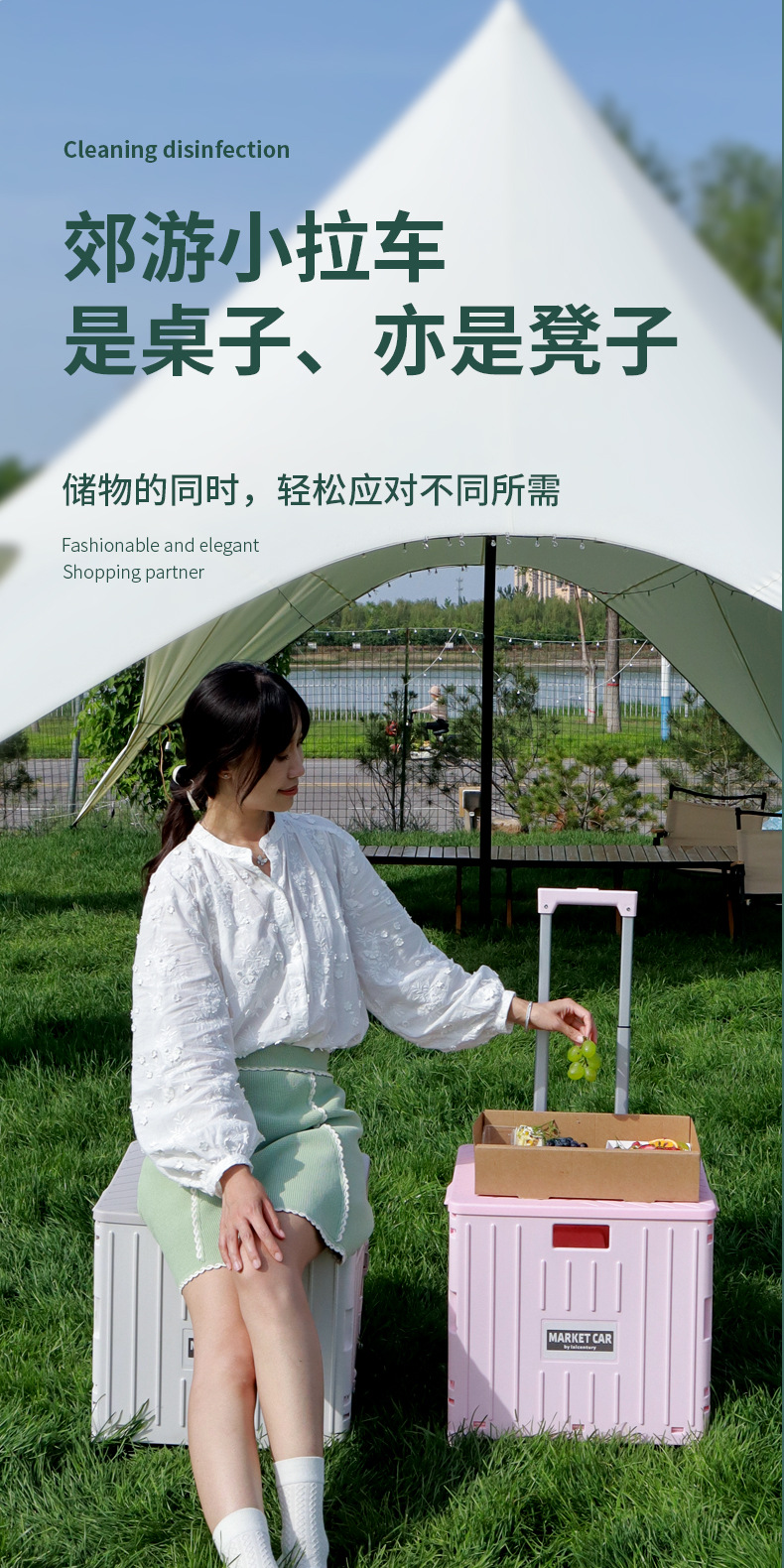 • 민트 그린 클라이밍 휠 스몰 사이즈 접이식 트롤리 (45L)