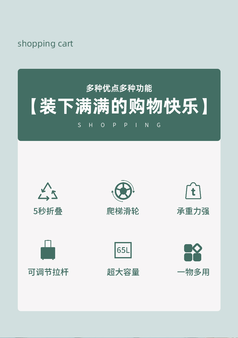 • 민트 그린 클라이밍 휠 대형 접이식 트롤리 (65L)