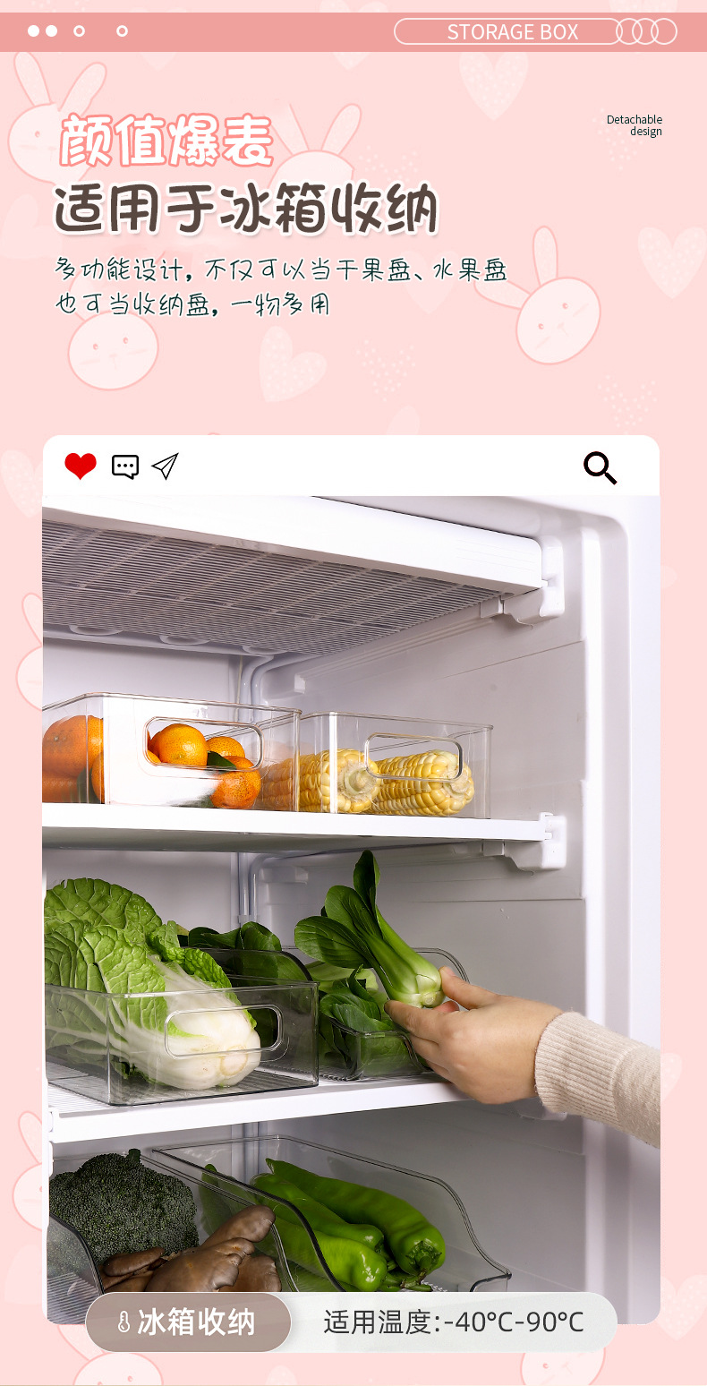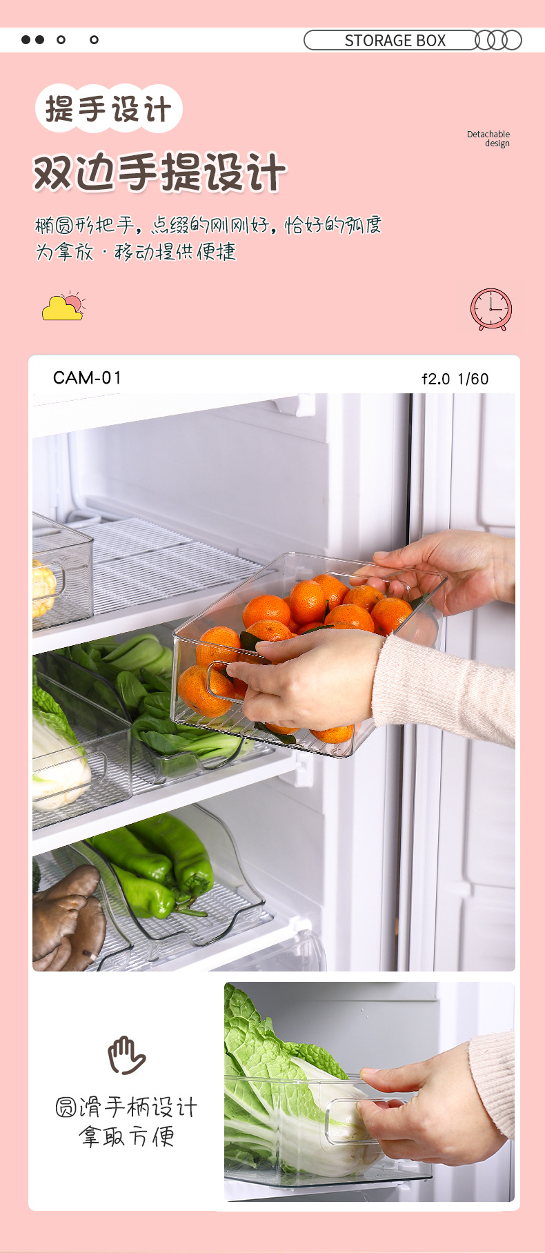 데스크탑 냉장고 수납함 투명 PET 손잡이 수납 바구니 가정용 신선한 수납 선반 문구류 수납함 책상