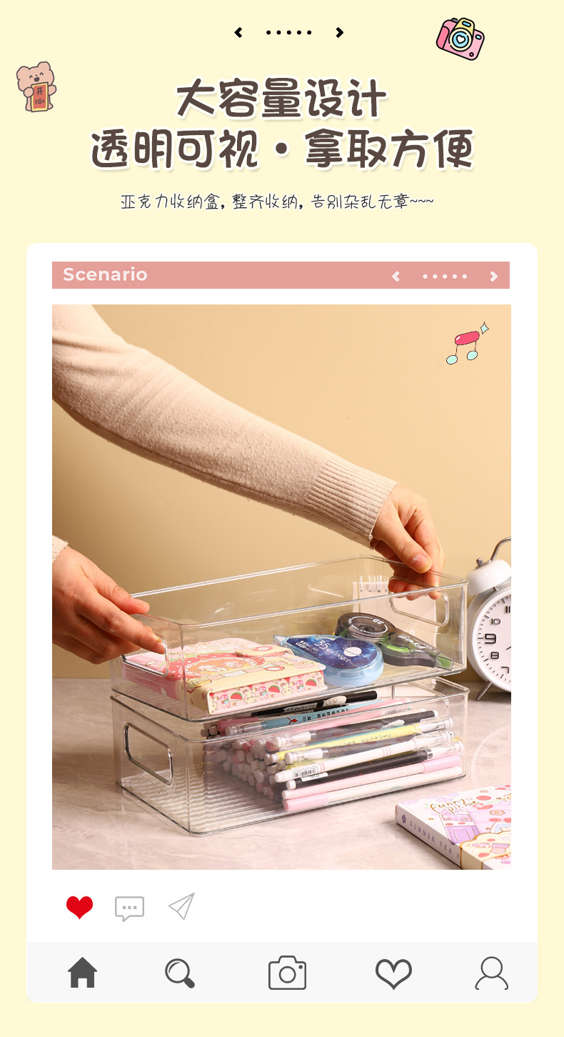 데스크탑 냉장고 수납함 투명 PET 손잡이 수납 바구니 가정용 신선한 수납 선반 문구류 수납함 책상스토어 가기
