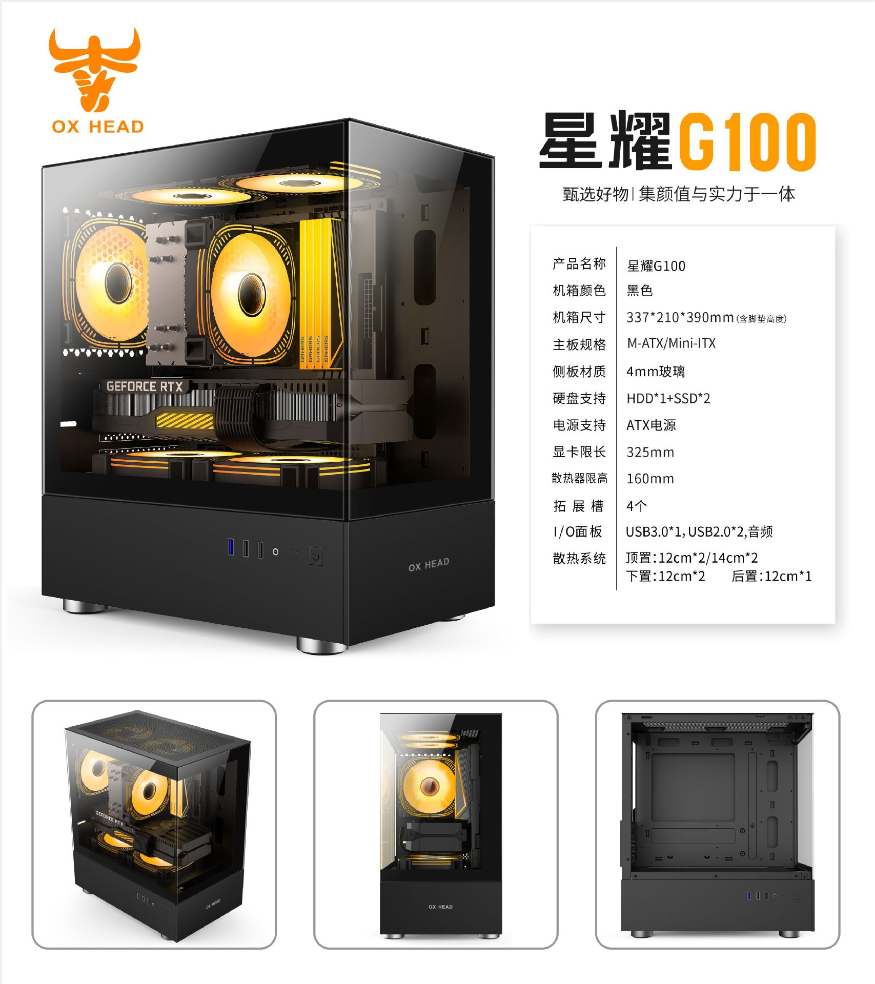 OXHEAD Xingyao G100 수직 Seaview Room 수냉식 국경 횡단 파노라마 섀시 M-ATX240 기둥 없음스토어 가기