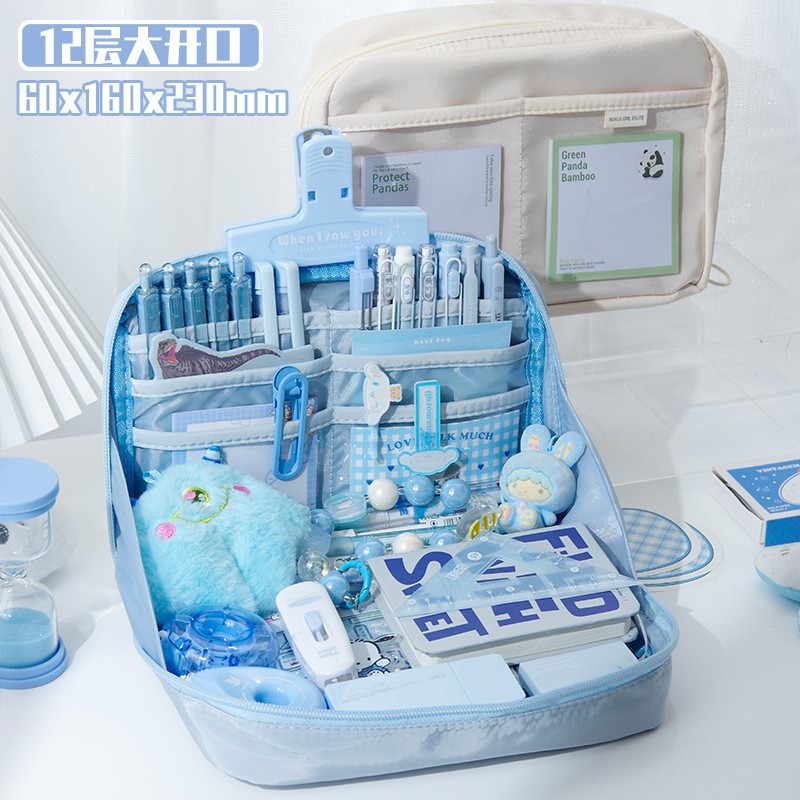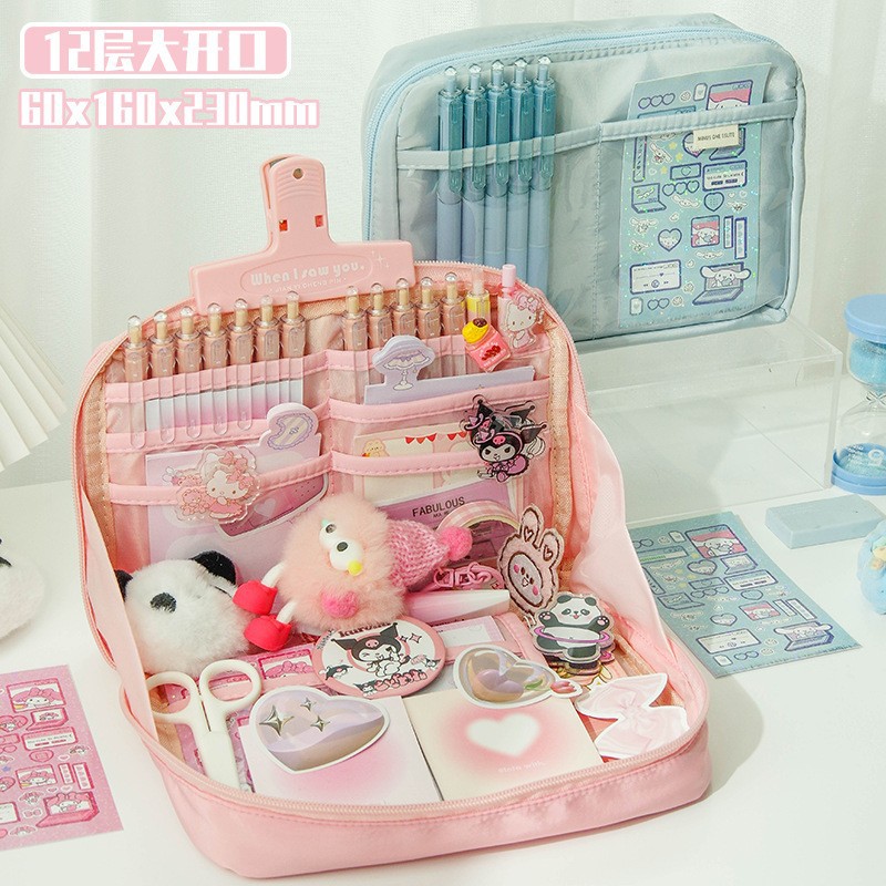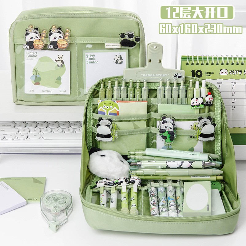 12 층 팬더 고가의 문구 연필 케이스 여학생을위한 대용량 연필 케이스 초등학교 중학교 소년 소녀