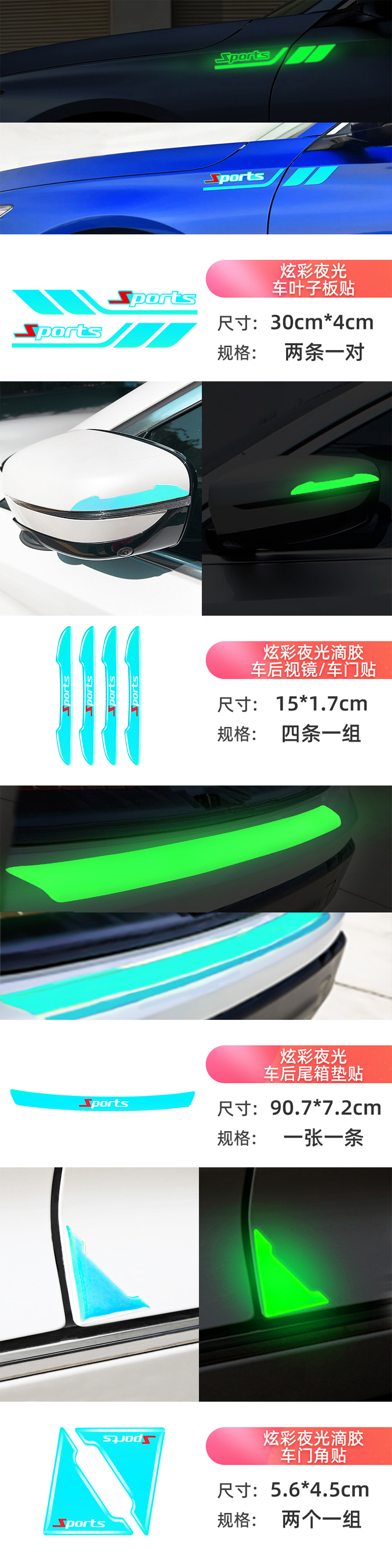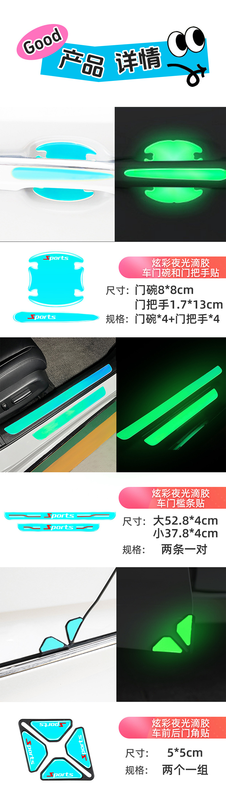 새로운 매직 컬러 빛나는 자동차 바디 스티커 세트 도어 보울 도어 핸들 자동차 스티커 에폭시 두꺼운 도어 충돌 방지 접착 스트립스토어 가기