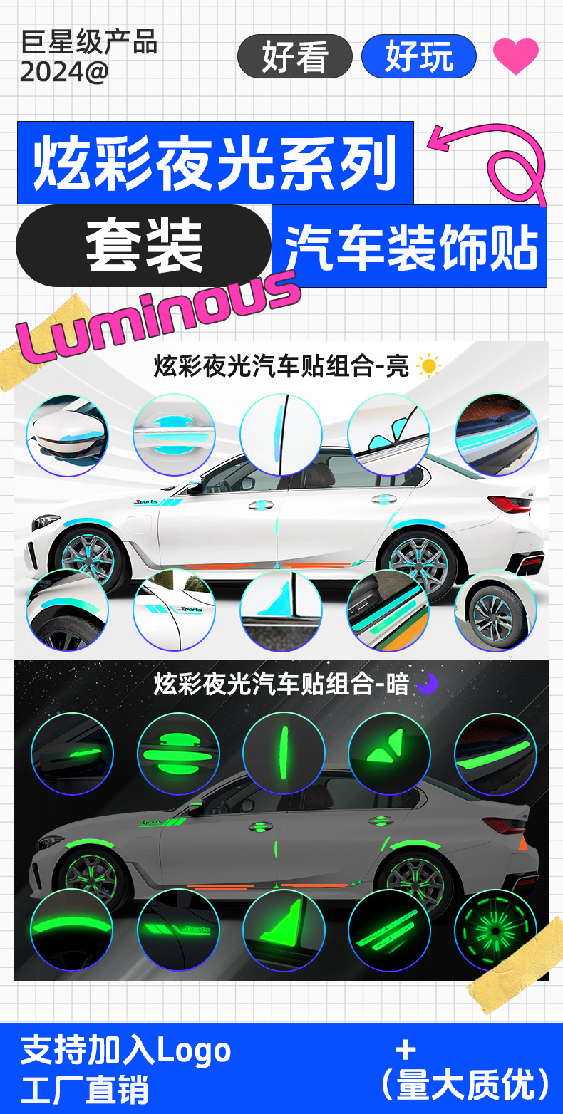 새로운 매직 컬러 빛나는 자동차 바디 스티커 세트 도어 보울 도어 핸들 자동차 스티커 에폭시 두꺼운 도어 충돌 방지 접착 스트립